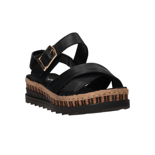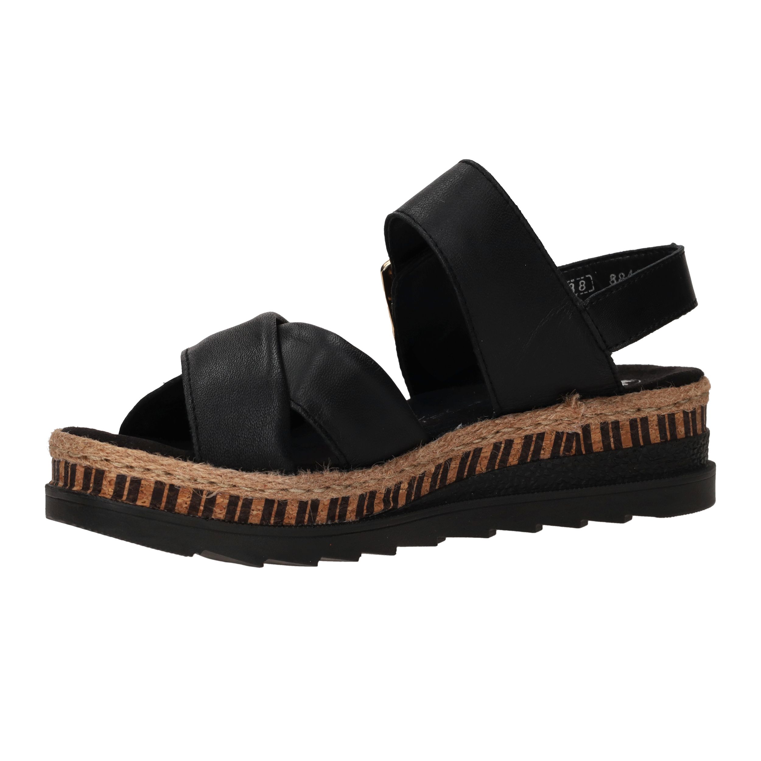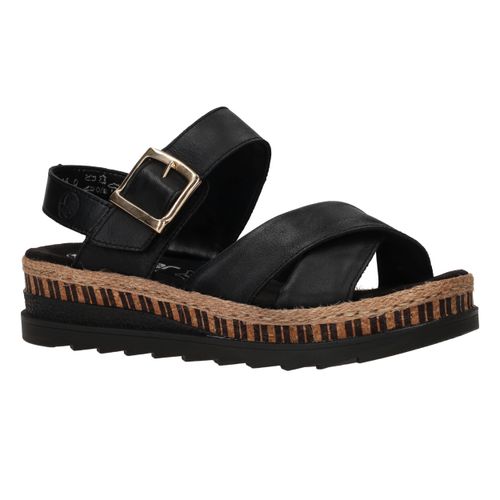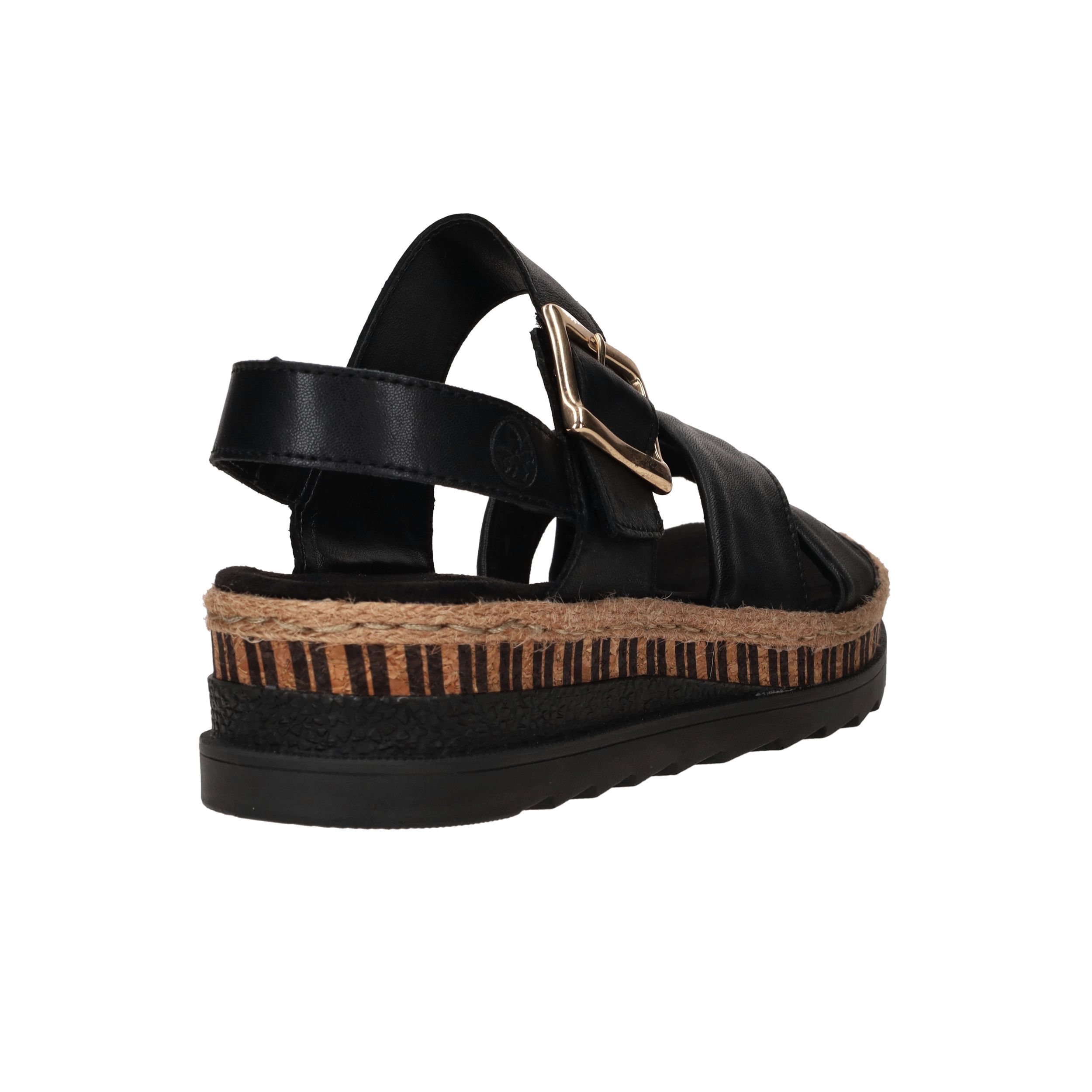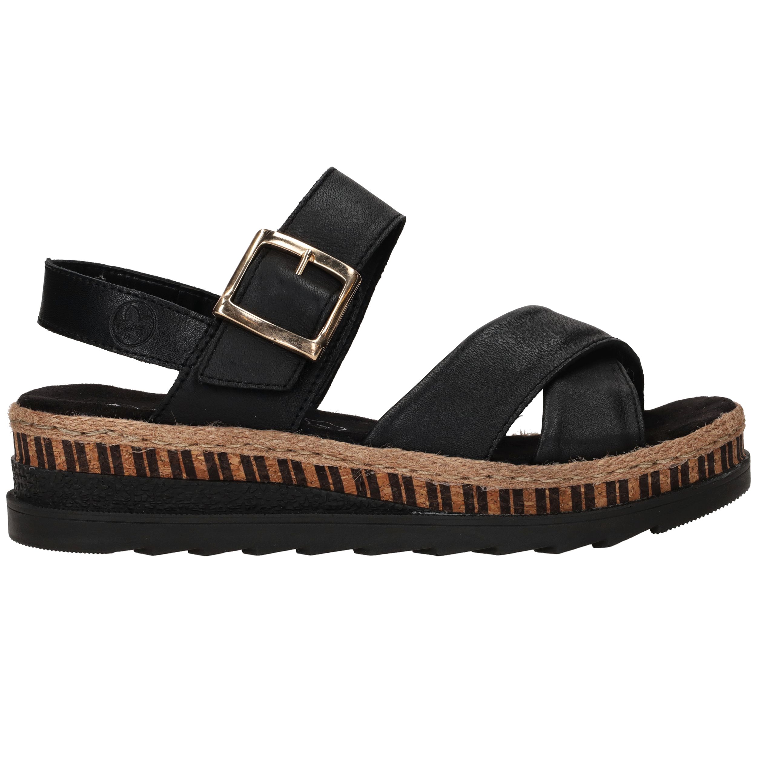 Deze hippe Rieker sandaal mag niet ontbreken in je collectie! De zwarte sandaal is gemaakt van leer en heeft leuke gekruiste bandjes.