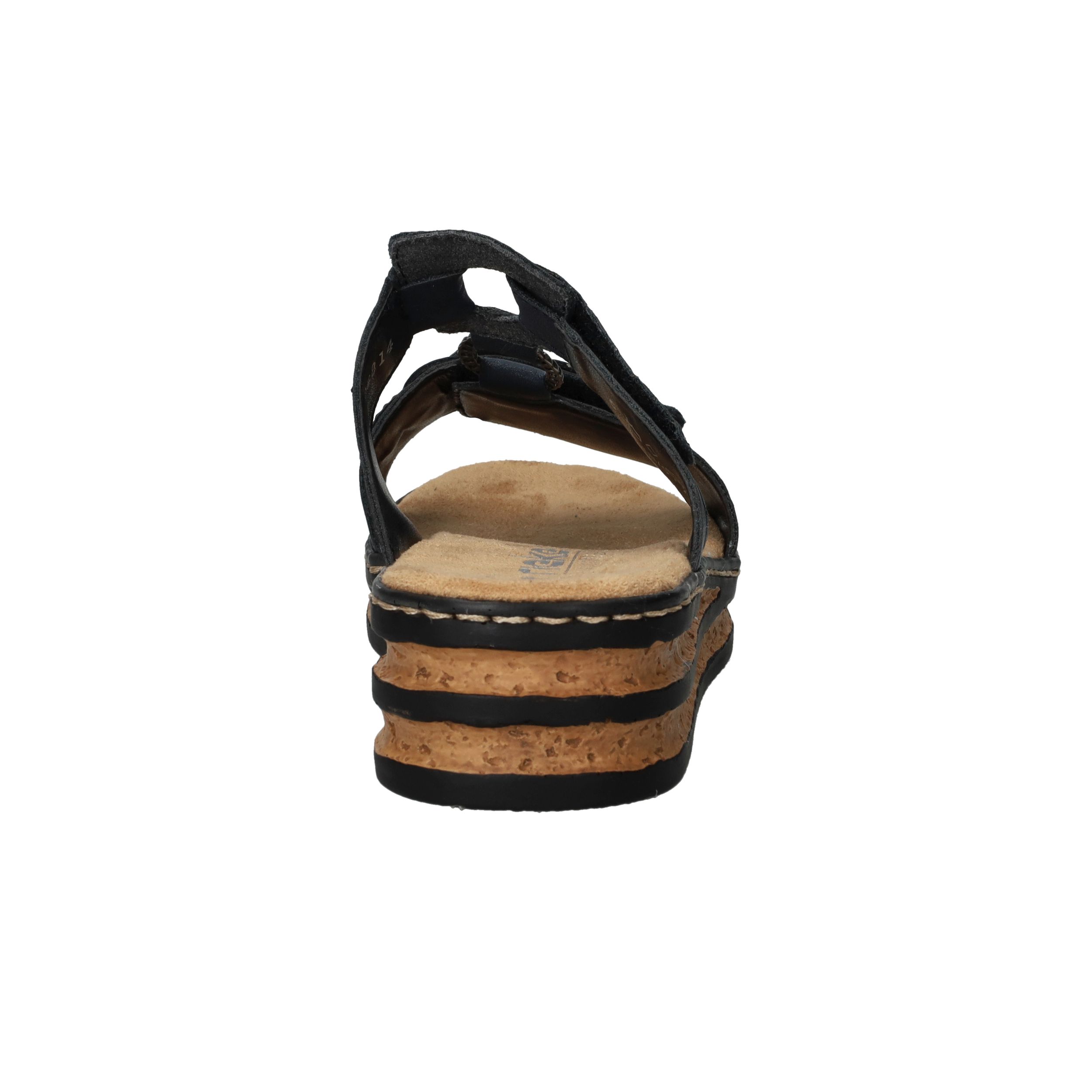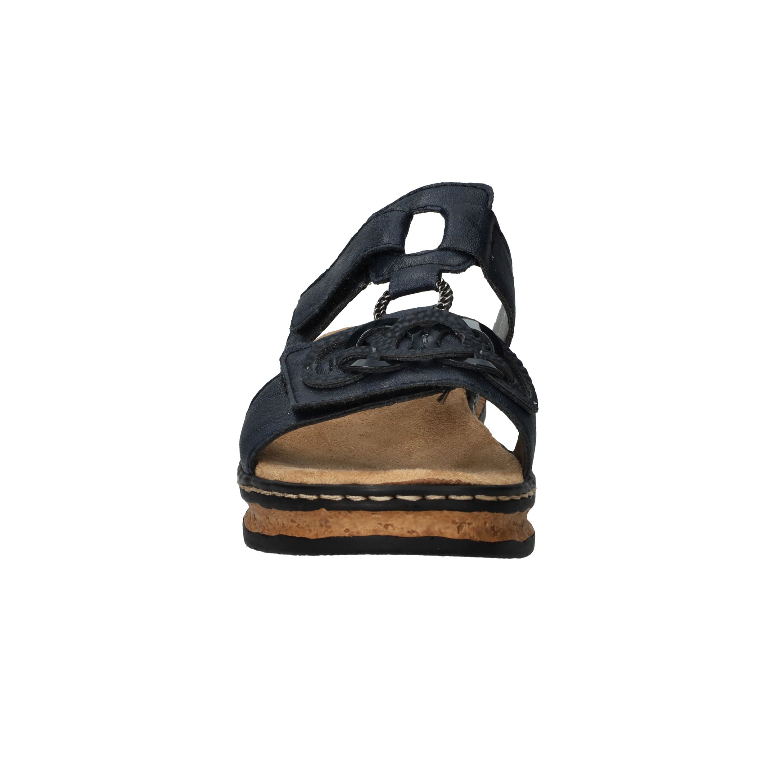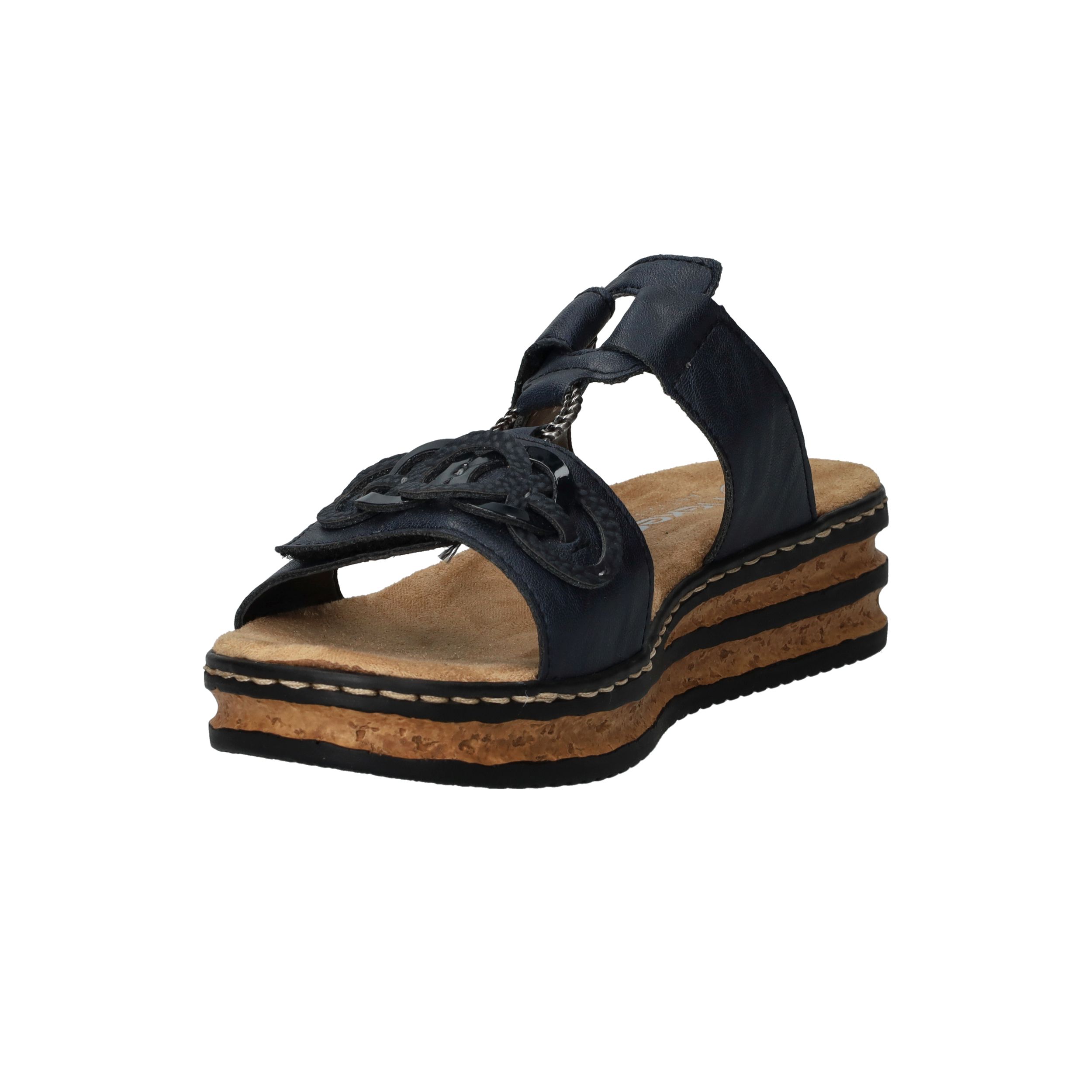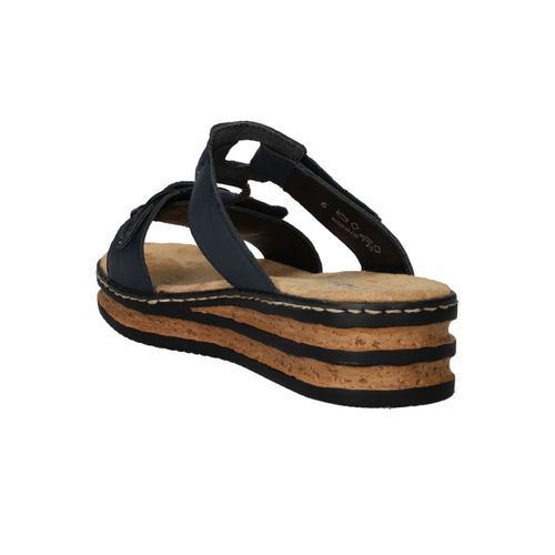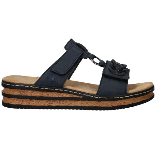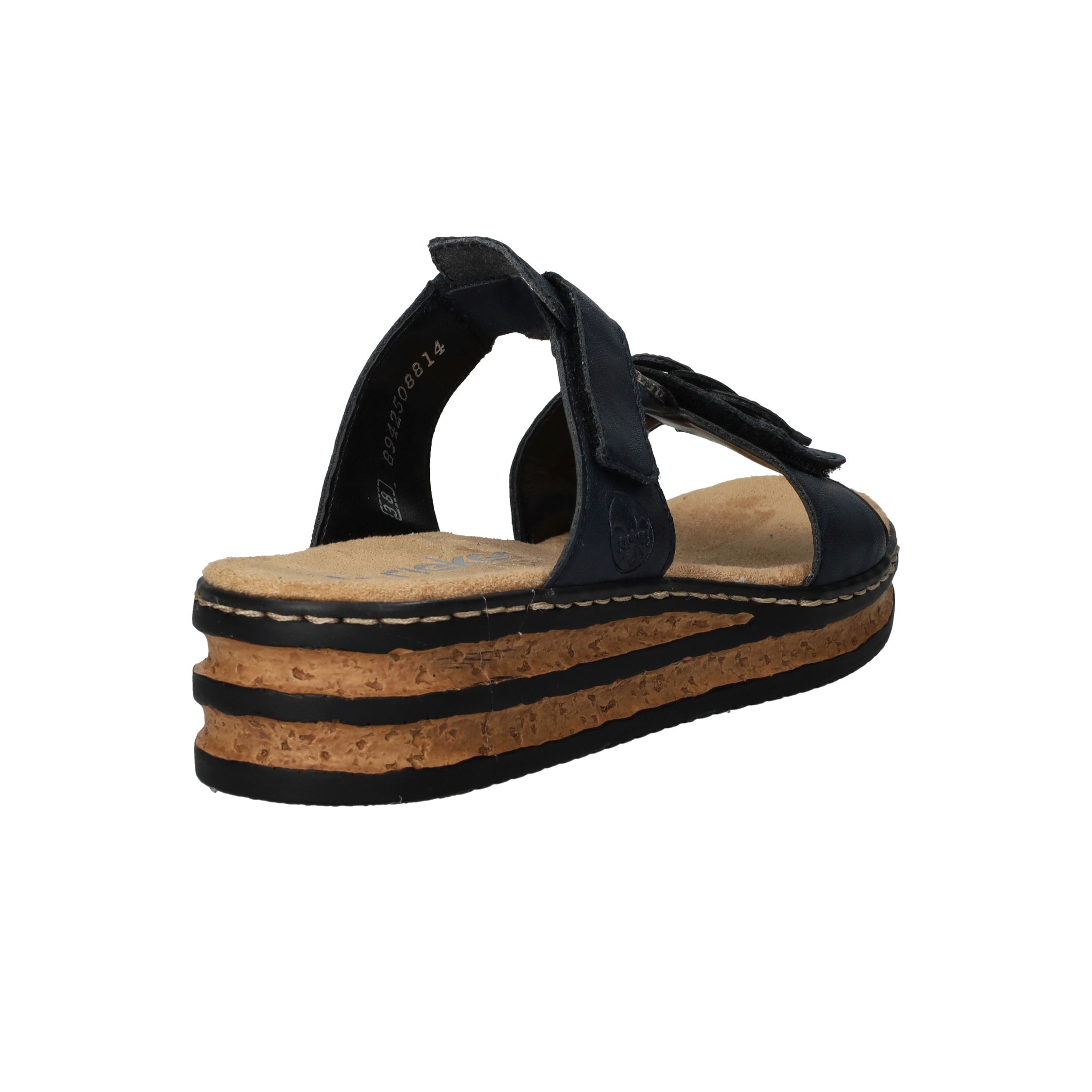 Comfortabele blauwe Rieker slipper voor dames met een speels motief van ringetjes.