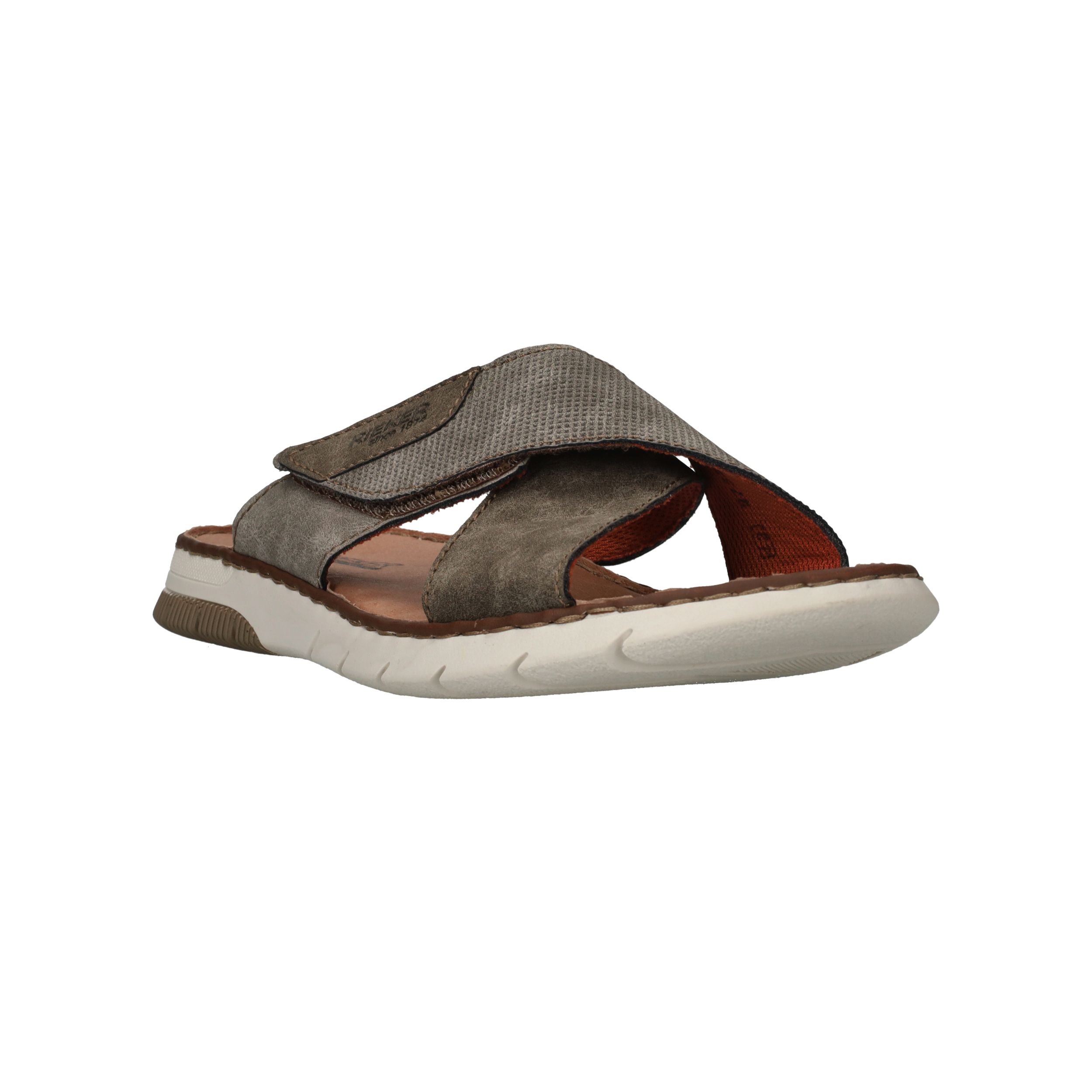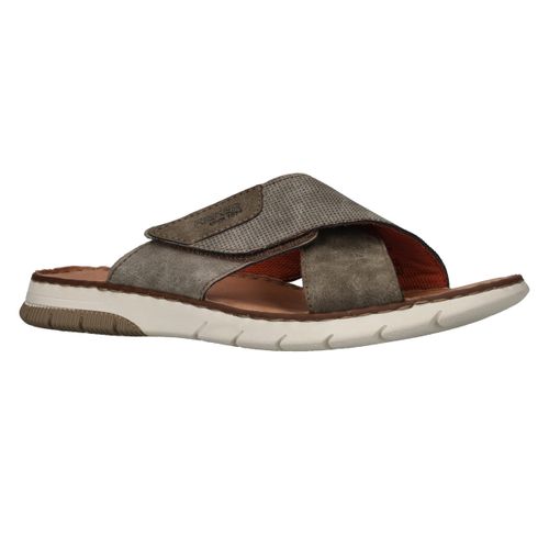 Deze grijze slippers van Rieker zijn ideaal voor heren die graag comfortabel lopen zonder in te leveren op stijl. Het gekruiste bandontwerp in zacht kunstsuède sluit mooi aan over de wreef, terwijl de lichte zool elke stap soepel opvangt. De subtiele stiksels en sportieve zool geven deze slipper een moderne uitstraling. Perfect voor zomerse dagen waarop je luchtig en vrij wilt bewegen.