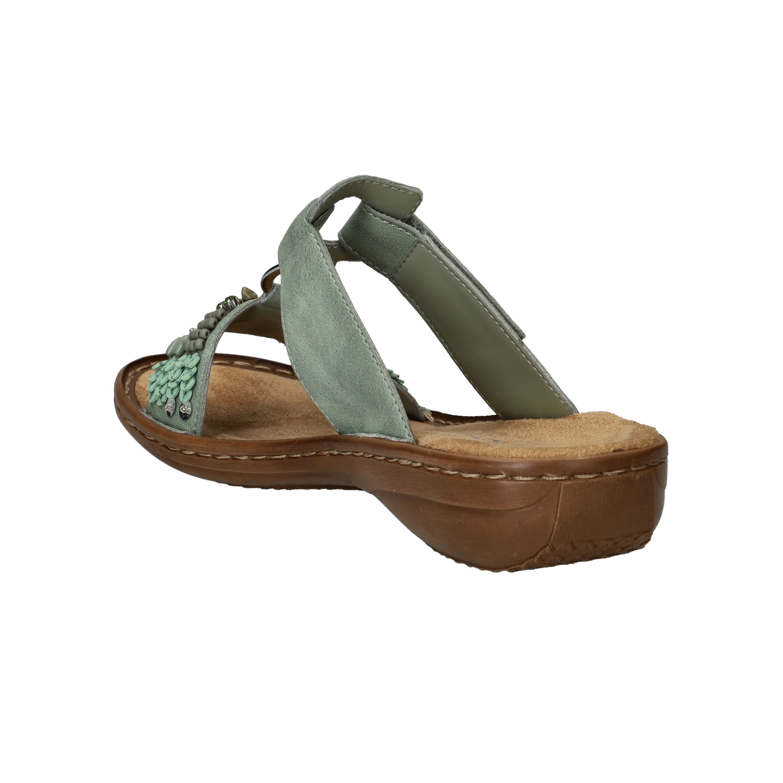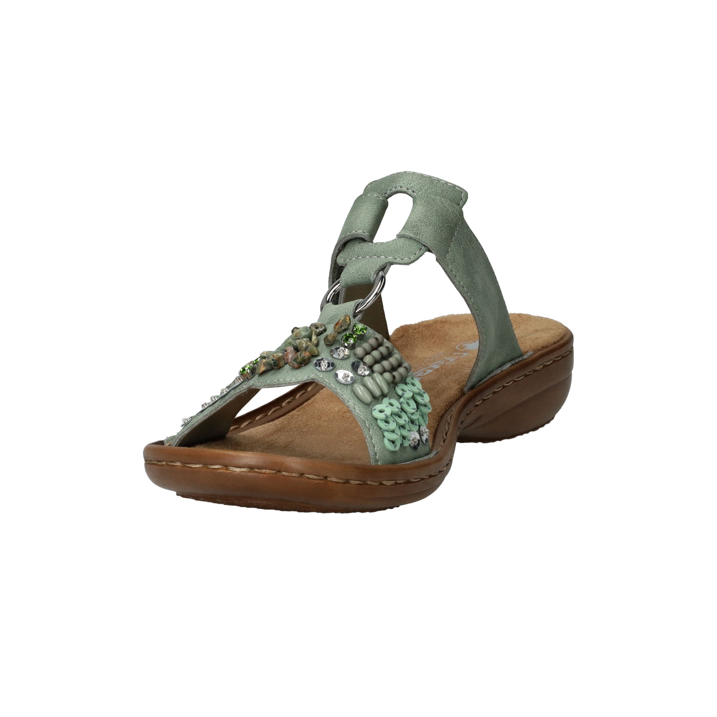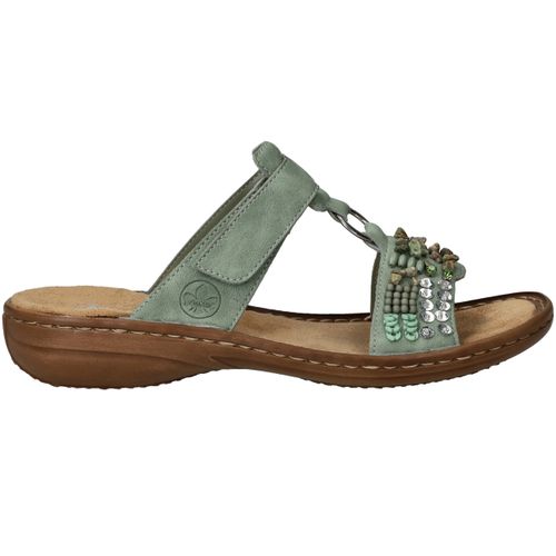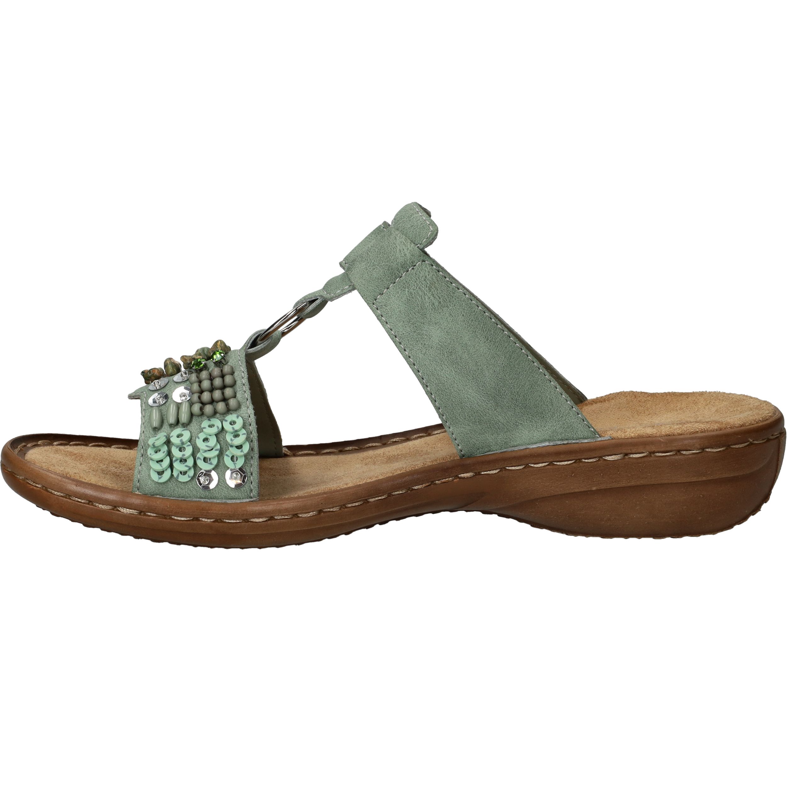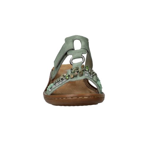 Comfortabele Rieker slipper in een mintgroene kleur. De steentjes geven deze damesslipper een zomerse uitstraling!