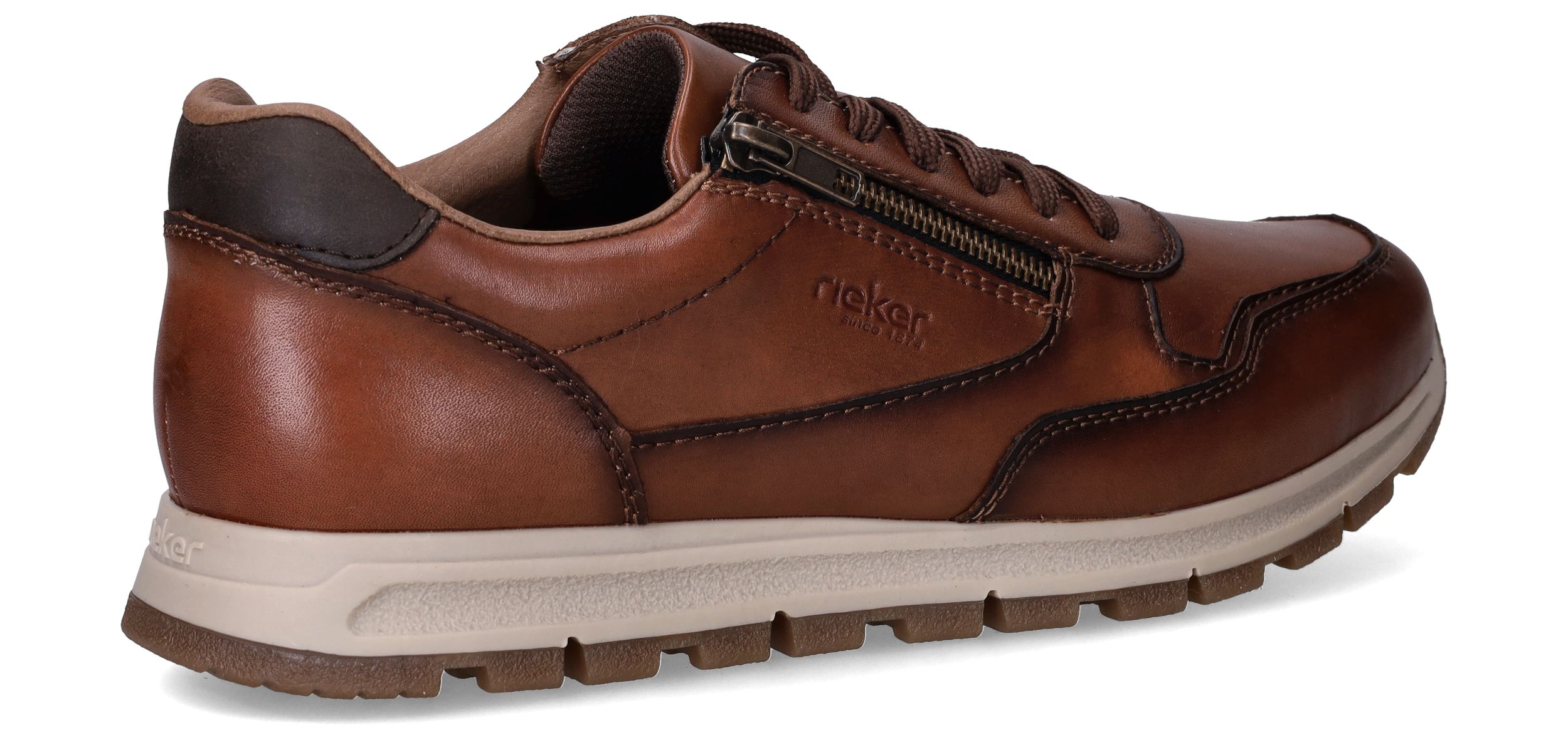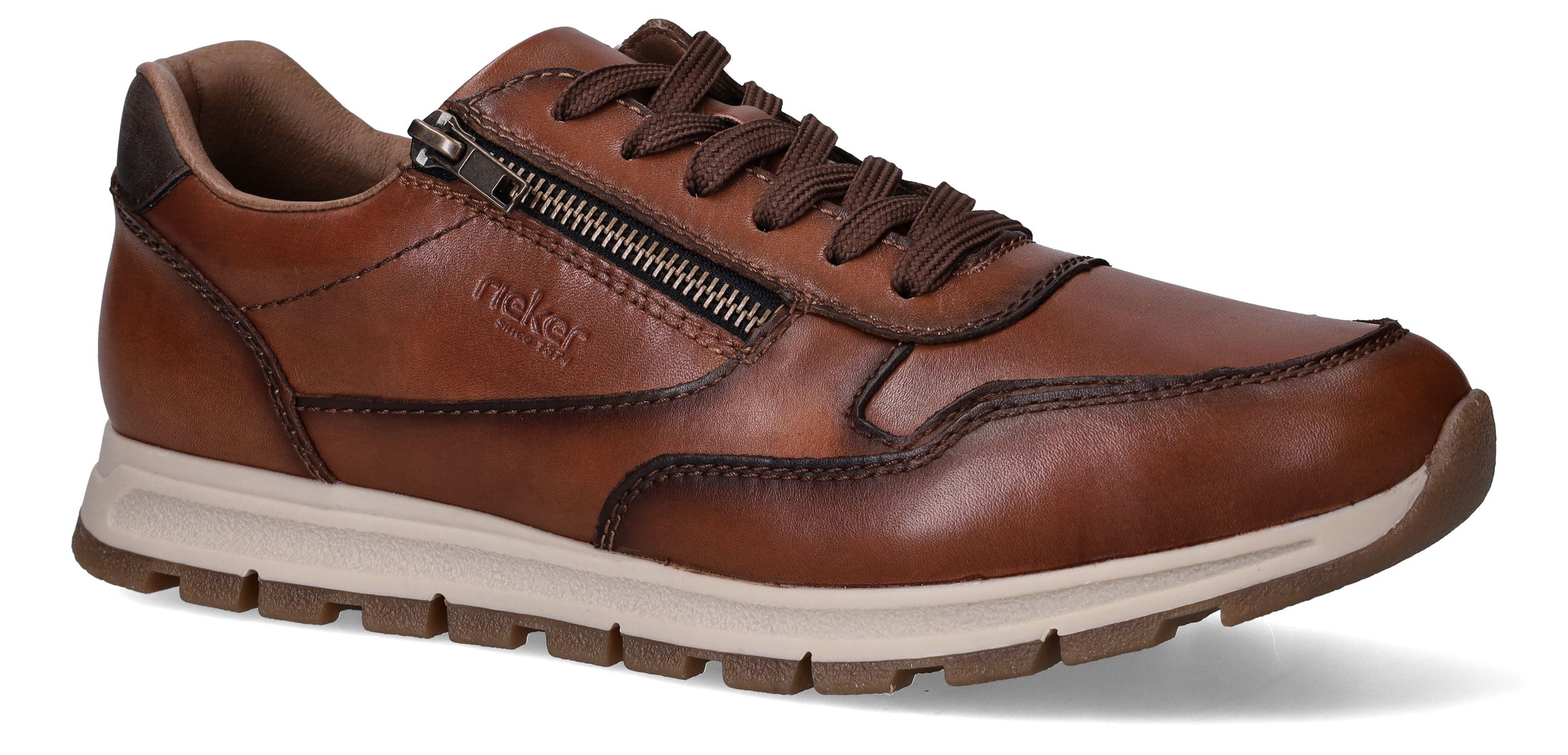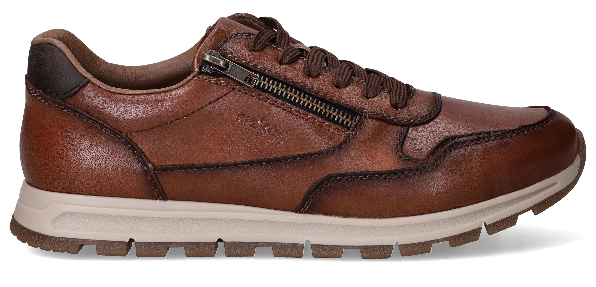Deze bruine sneakers van Rieker zijn perfect voor heren die comfort en stijl willen combineren. Het soepele leer vormt zich naar je voet en biedt een luxe uitstraling. Dankzij de combinatie van veters en rits trek je ze makkelijk aan en zitten ze meteen goed. Ideaal voor dagelijks gebruik en een nette casual look voor heren.