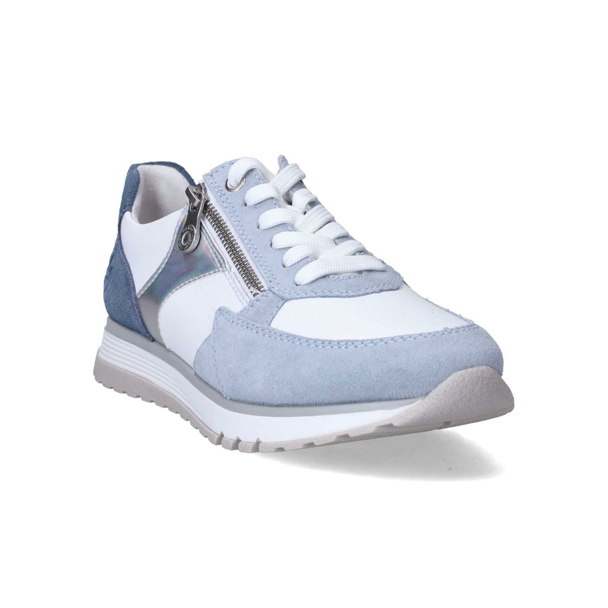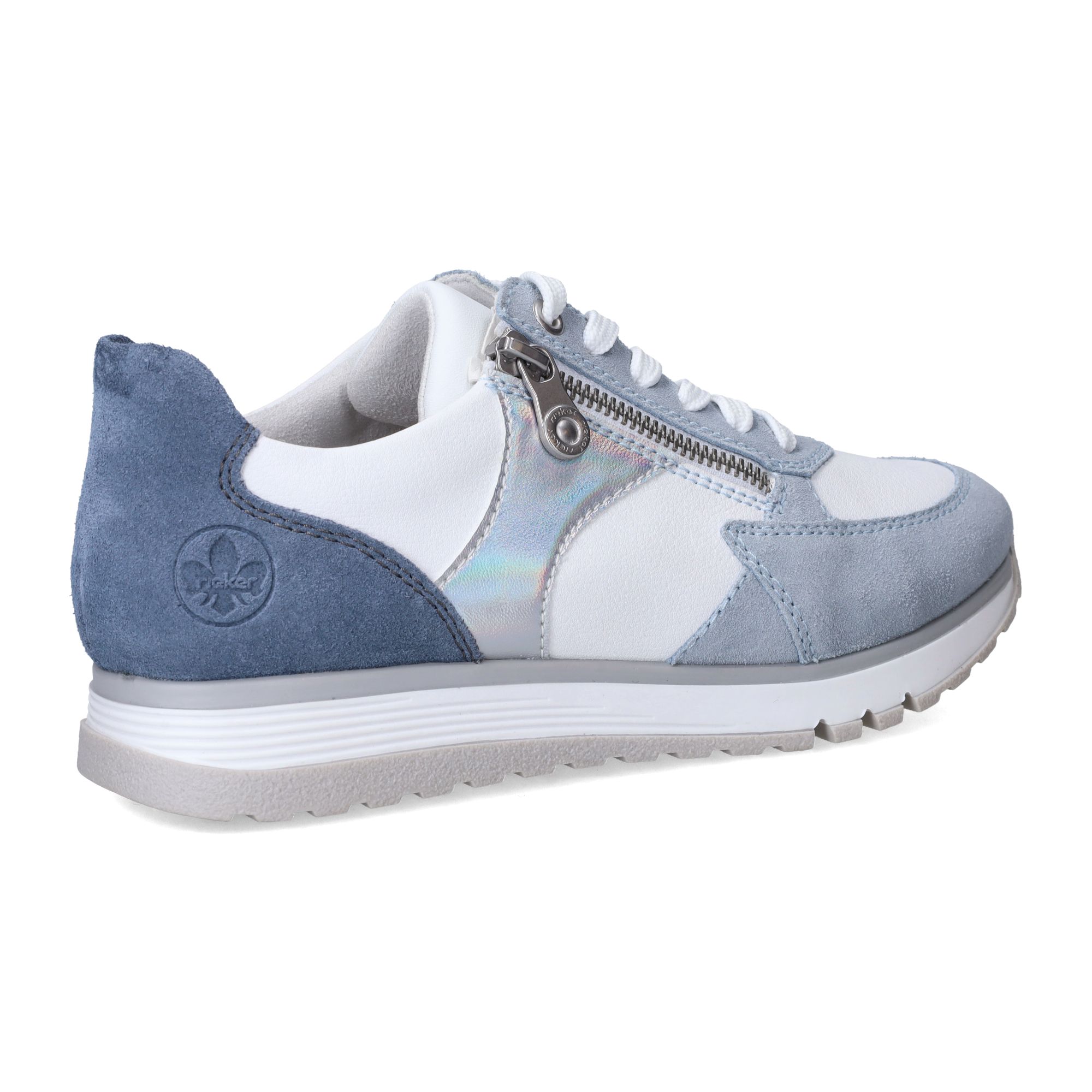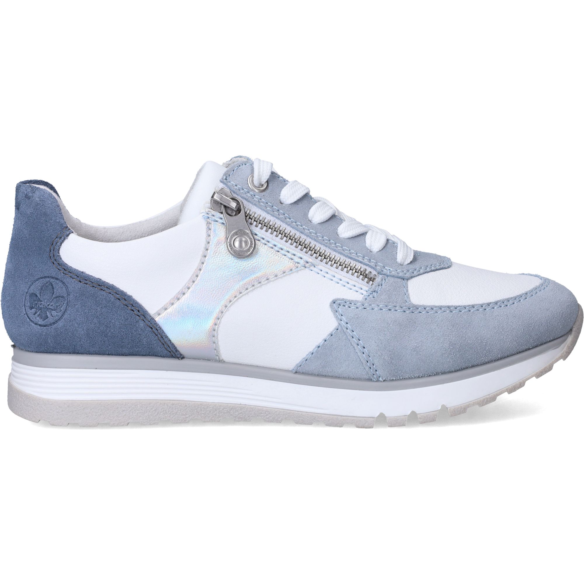 De [dames sneakers](/dames/schoenen/comfort) van Rieker Sport in een mooie blauwe tint combineren moeiteloos stijl en comfort. Deze schoenen, gemaakt van soepel leer, zijn een genot voor je voeten. De frisse blauwe kleur met subtiele details geeft de schoen een sportieve, maar toch geklede uitstraling die gemakkelijk te combineren is met diverse outfits. Tijdens het lopen voel je direct de prettige demping die zorgt voor een zachte landing, elke stap weer.- De veters en rits zorgen ervoor dat je de schoen perfect kunt aanpassen aan je voet, wat bijdraagt aan een stabiel en vertrouwd loopgevoel.