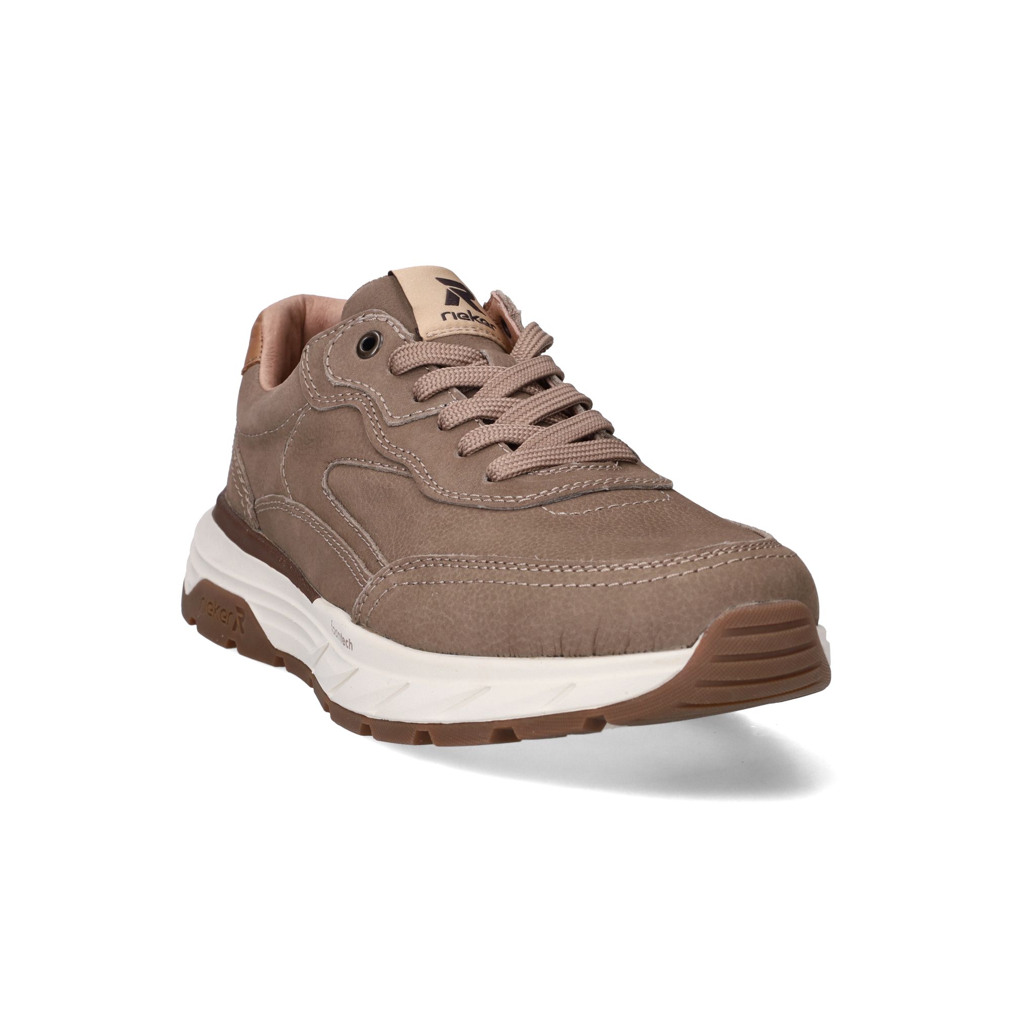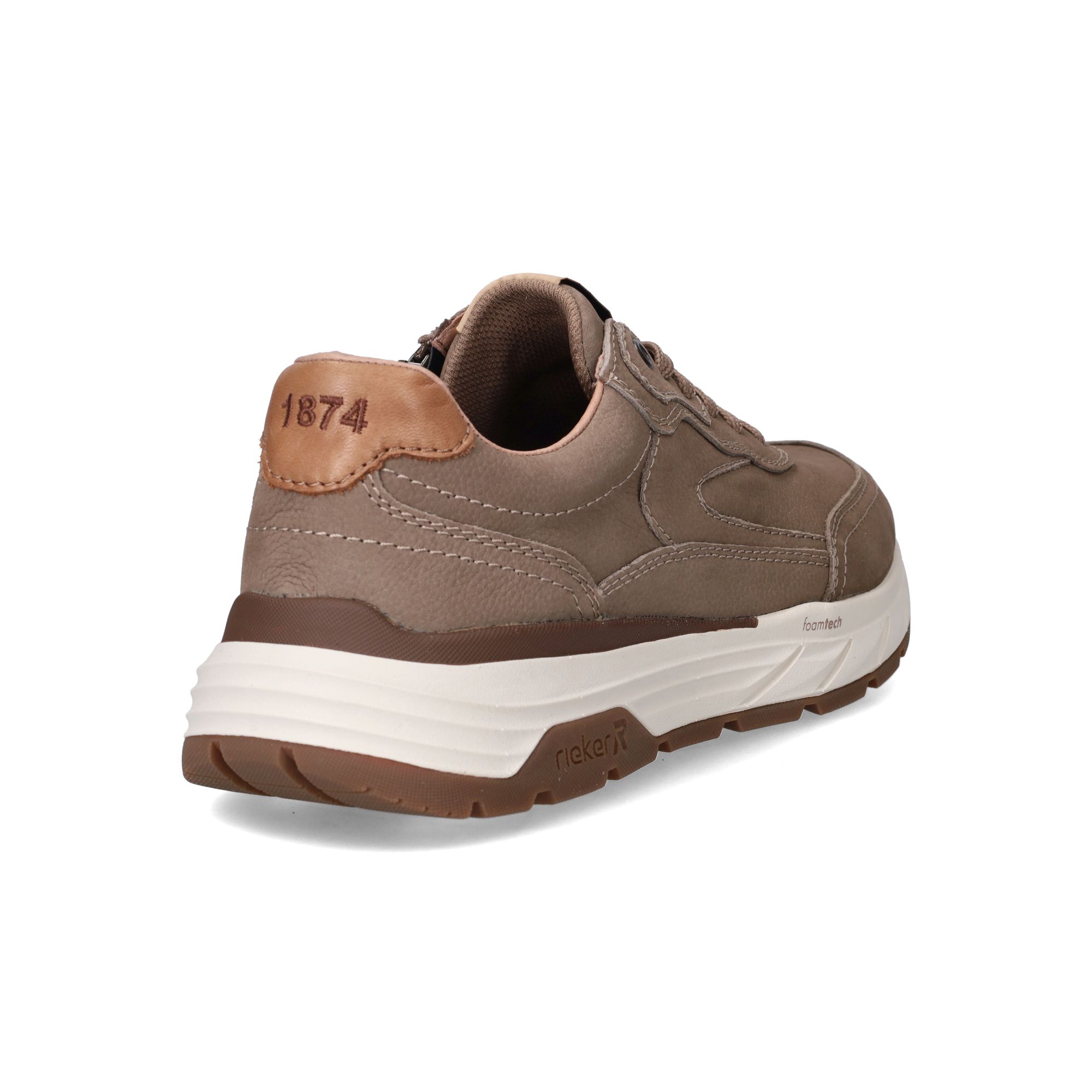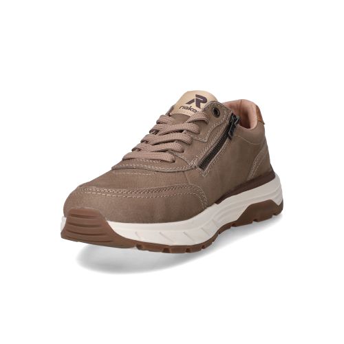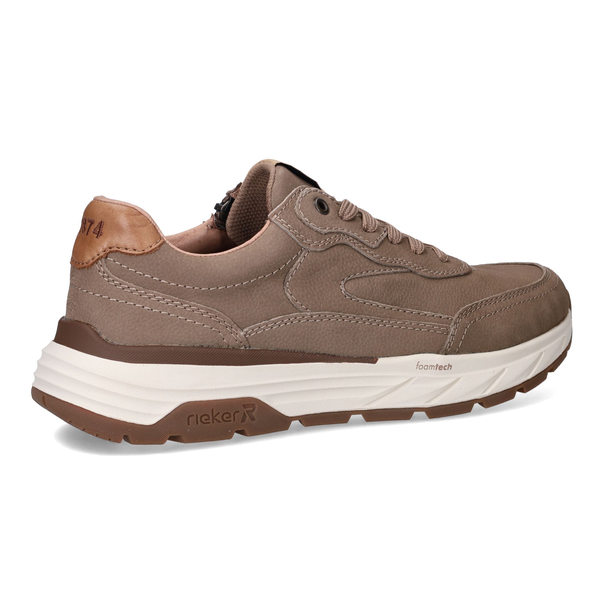 Deze taupe heren sneakers van Rieker Sport zijn een fijne toevoeging aan je garderobe, perfect voor een stijlvolle en comfortabele dag. De rustige taupe kleur maakt ze veelzijdig en makkelijk te combineren met diverse outfits. De schoen heeft een sportieve uitstraling met subtiele details die zorgen voor een moderne look. Tijdens het lopen en staan ervaar je een prettige demping, waardoor elke stap zacht aanvoelt en je voeten minder snel vermoeid raken.