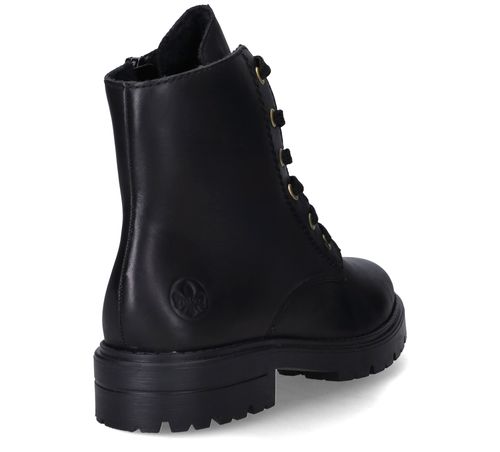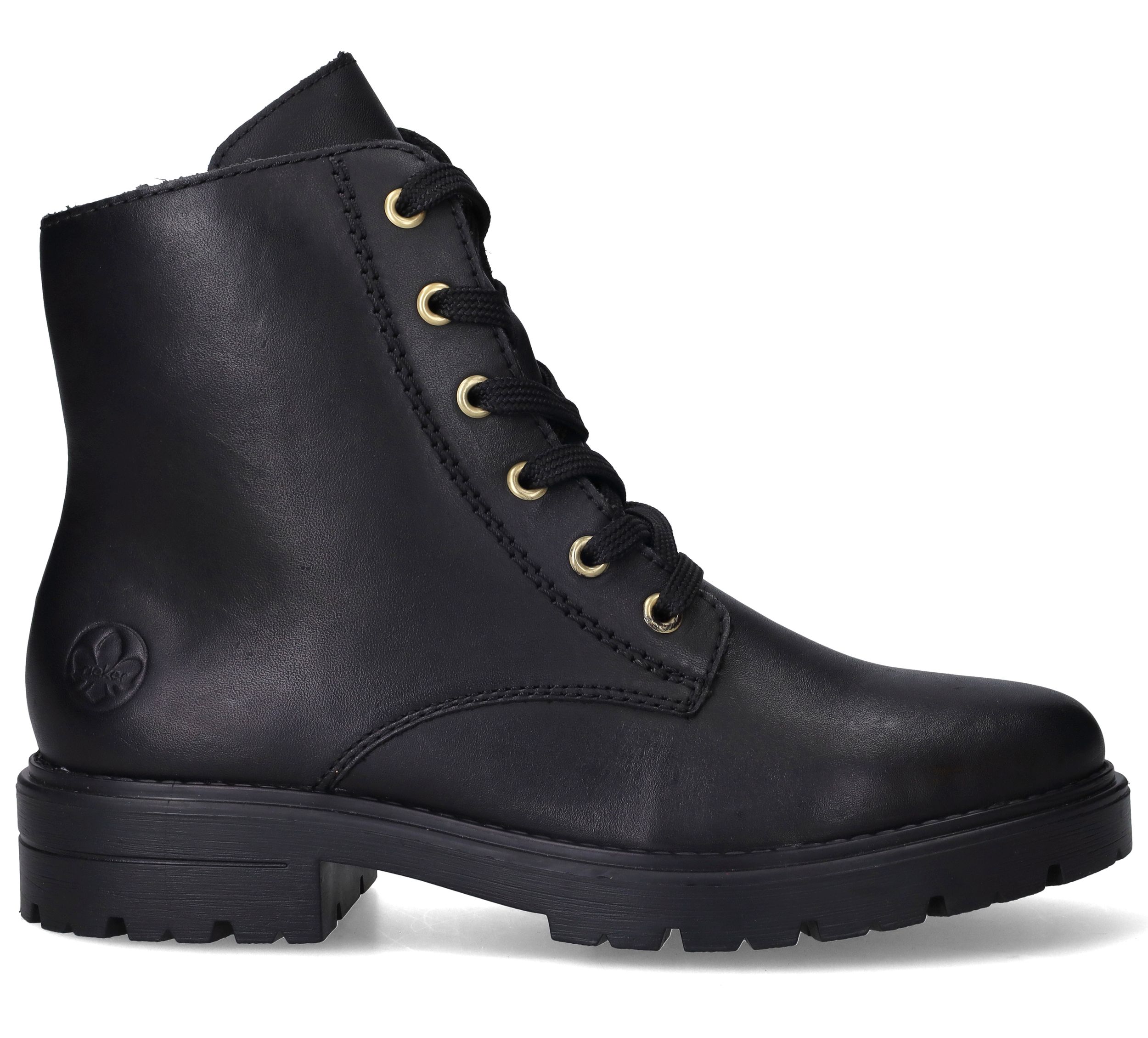 Deze klassieke zwarte Rieker boots van hoogwaardig leer zijn een perfecte combinatie van tijdloos design en draagcomfort. Dankzij voetbreedte F1/2 ervaar je nét wat extra ruimte, ideaal voor dagelijks gebruik. De gladde lederen afwerking zorgt voor een elegante uitstraling die past bij zowel stoere als nette outfits.