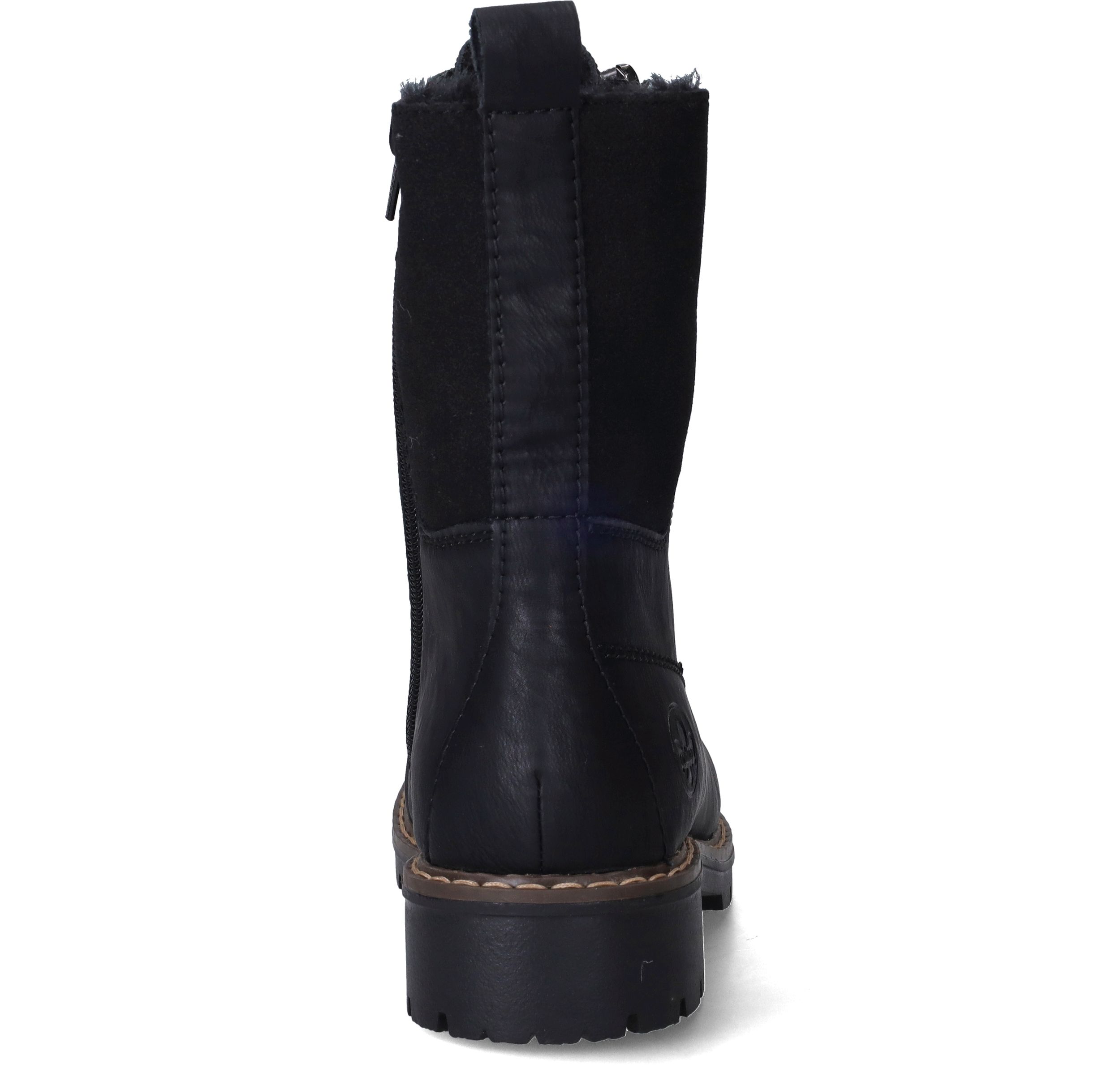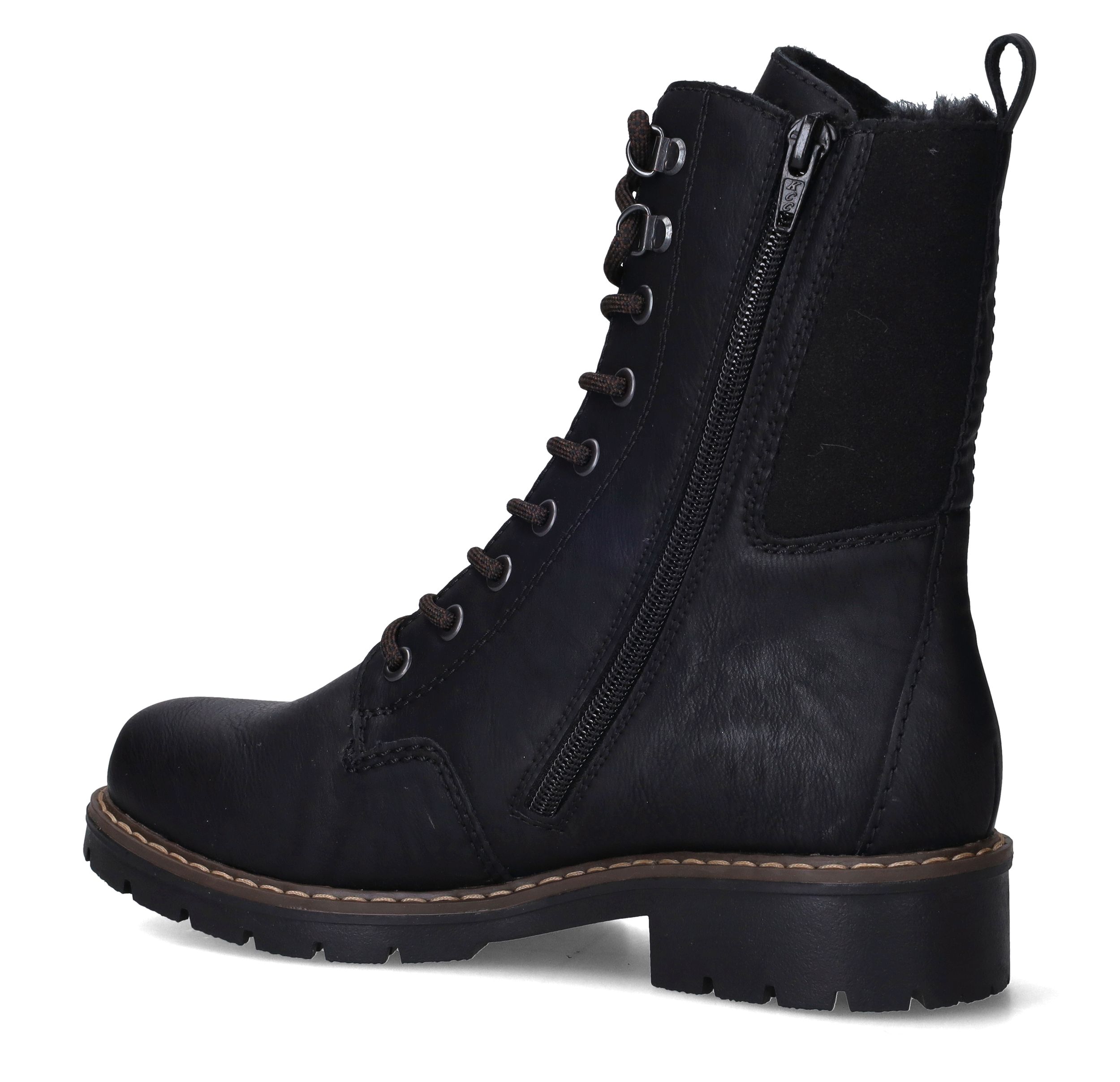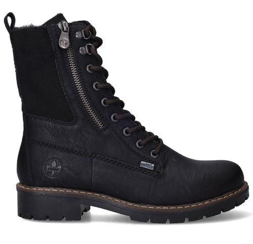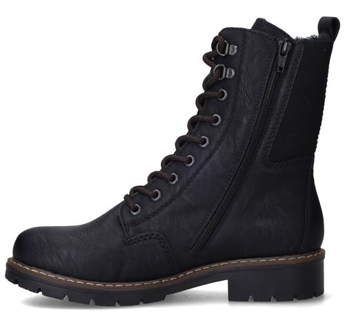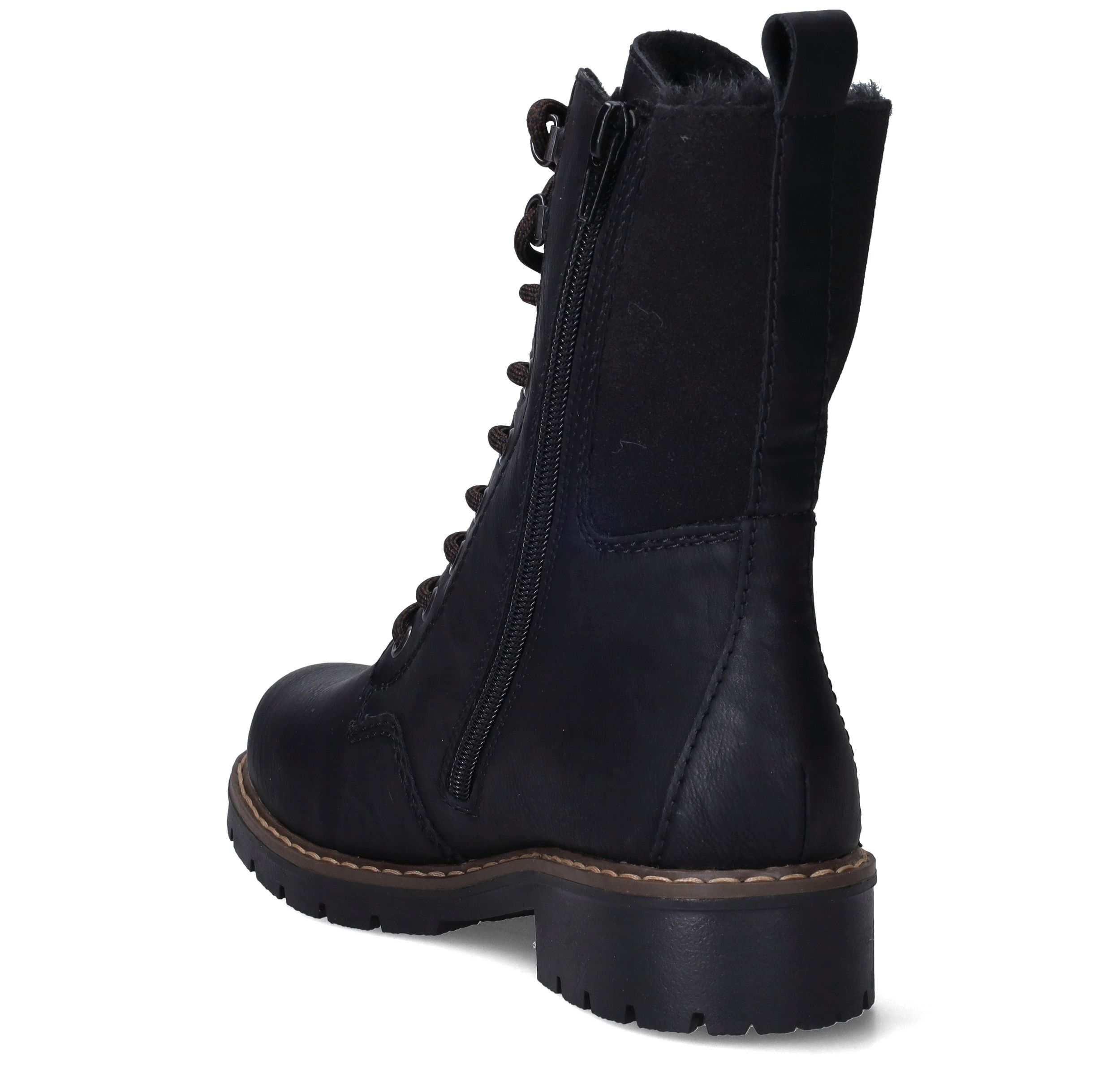 Deze stoere zwarte Rieker boots van hoogwaardig kunstleer zijn warmgevoerd, waardoor ze perfect zijn voor koude dagen. Met voetbreedte F1/2 bieden ze extra ruimte voor optimaal comfort, terwijl de stevige profielzool zorgt voor stabiliteit en grip. De combinatie van veter- en ritssluiting geeft deze boots een stoere uitstraling en maakt ze praktisch in gebruik.
