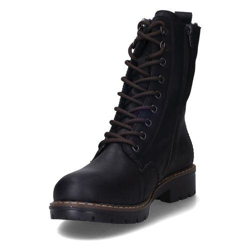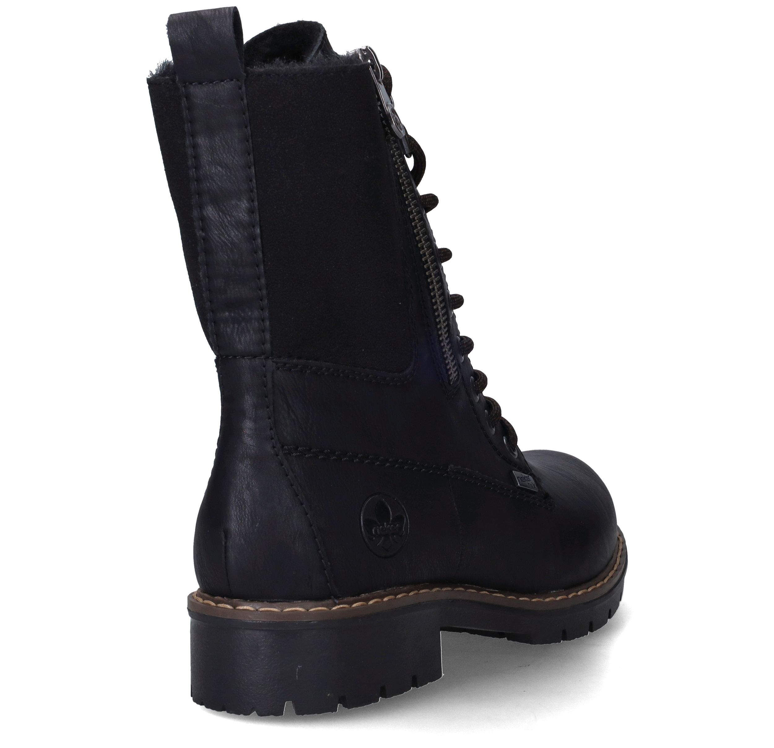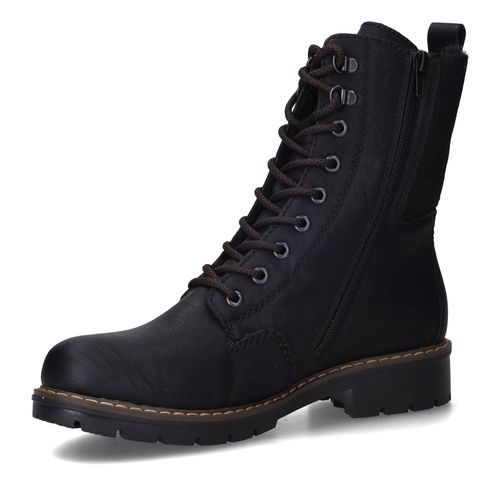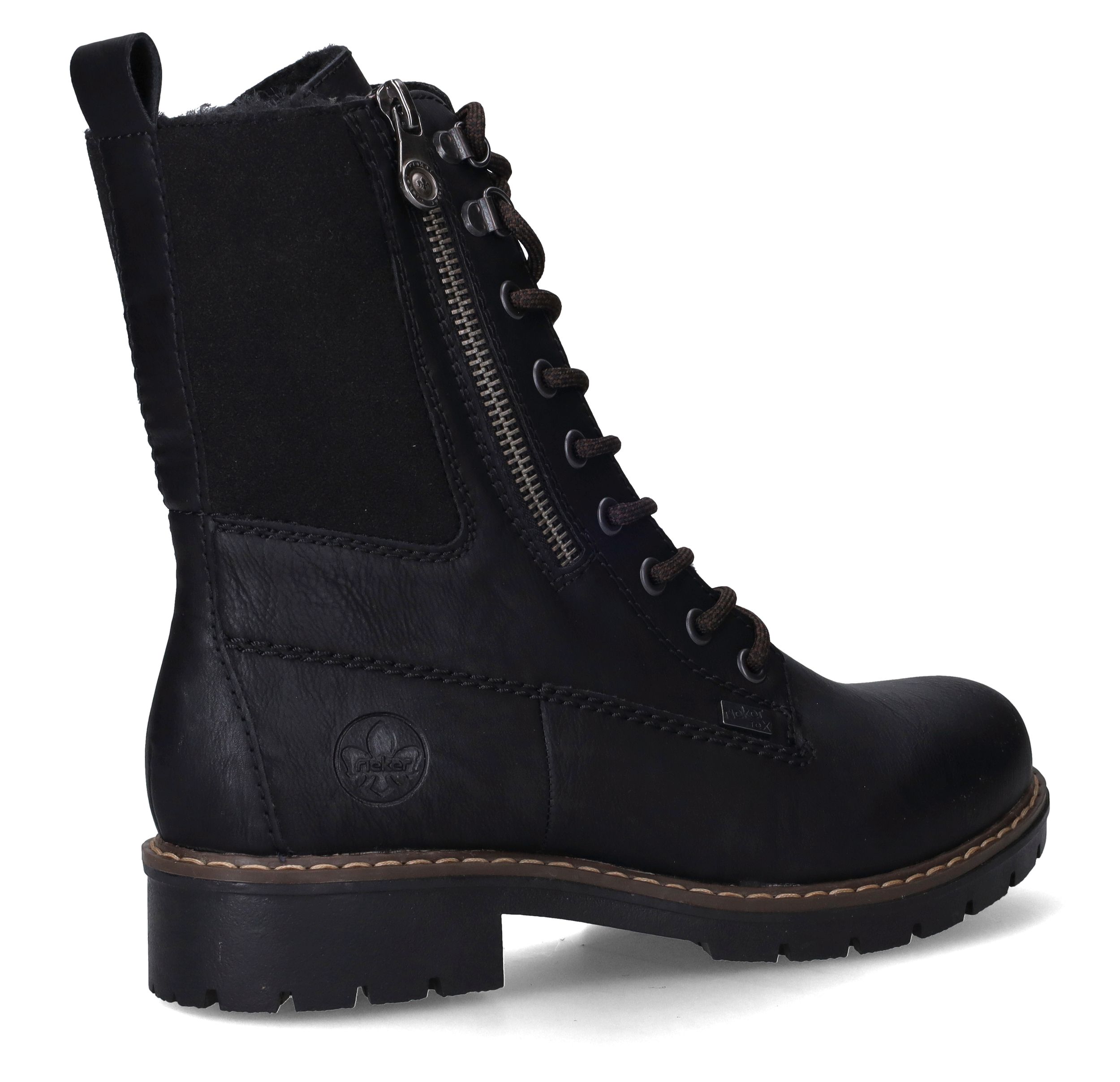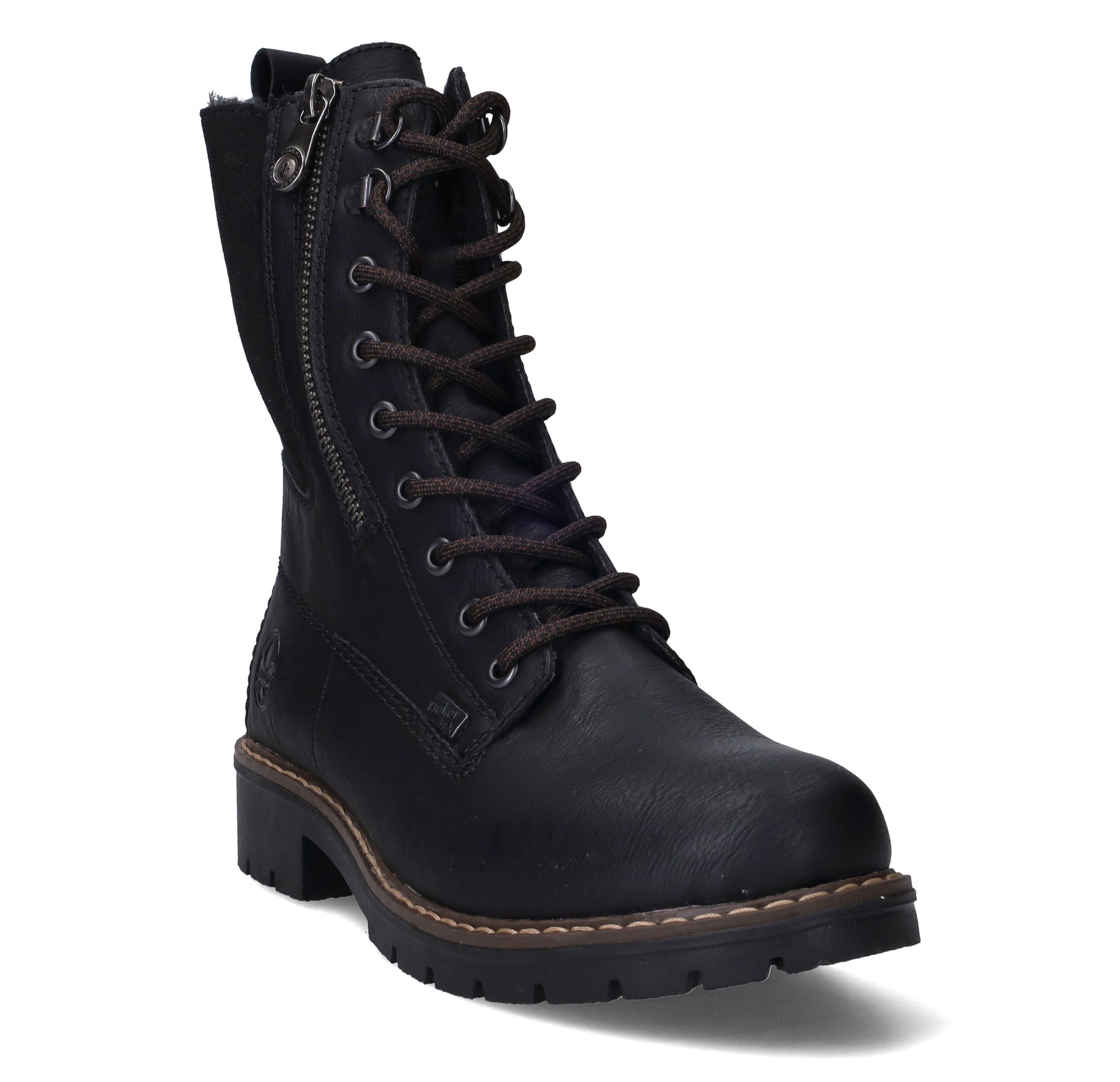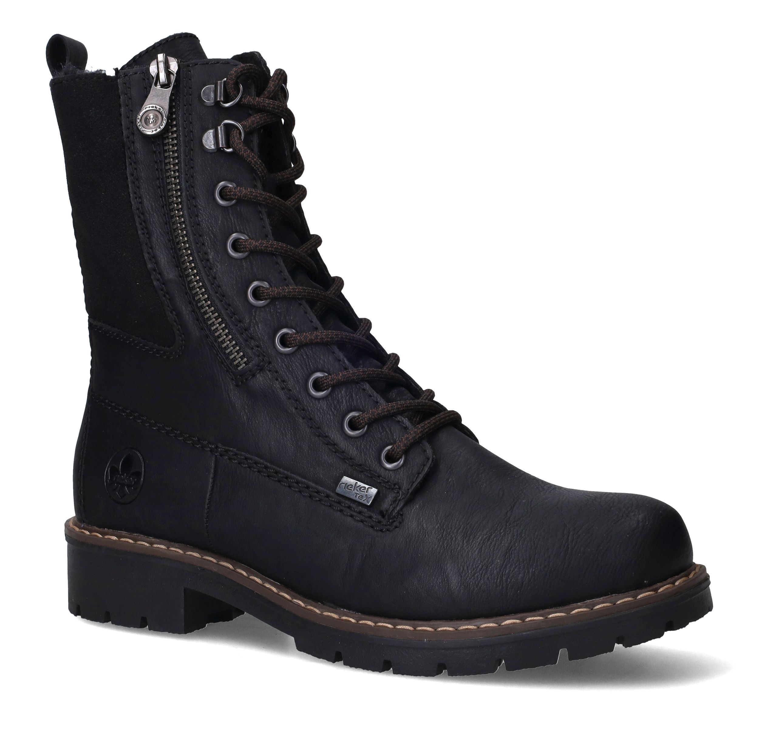 Deze stoere zwarte Rieker boots van hoogwaardig kunstleer zijn warmgevoerd, waardoor ze perfect zijn voor koude dagen. Met voetbreedte F1/2 bieden ze extra ruimte voor optimaal comfort, terwijl de stevige profielzool zorgt voor stabiliteit en grip. De combinatie van veter- en ritssluiting geeft deze boots een stoere uitstraling en maakt ze praktisch in gebruik.