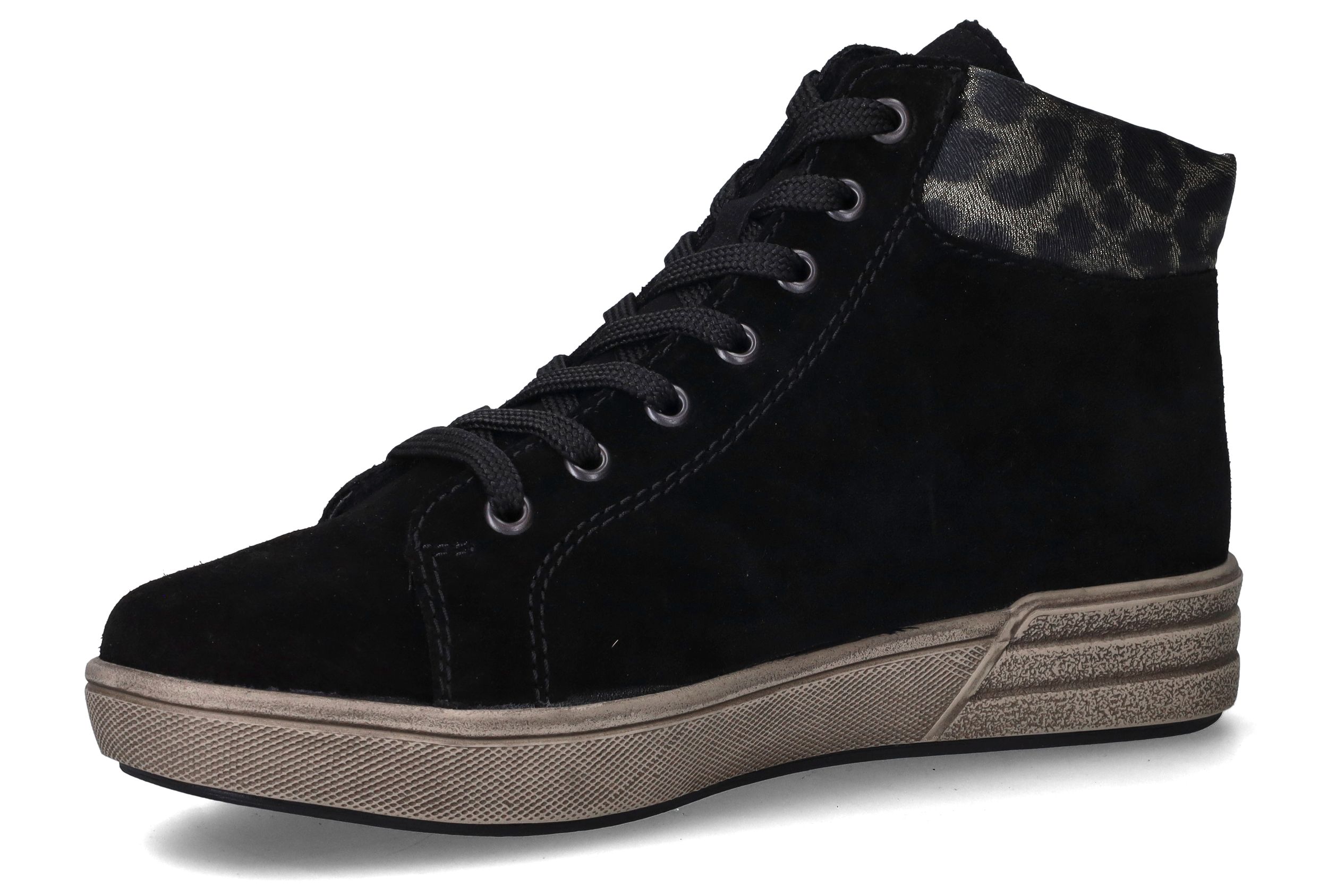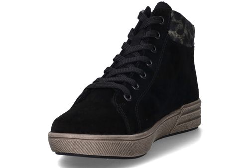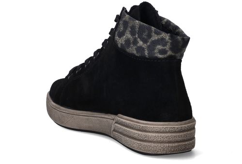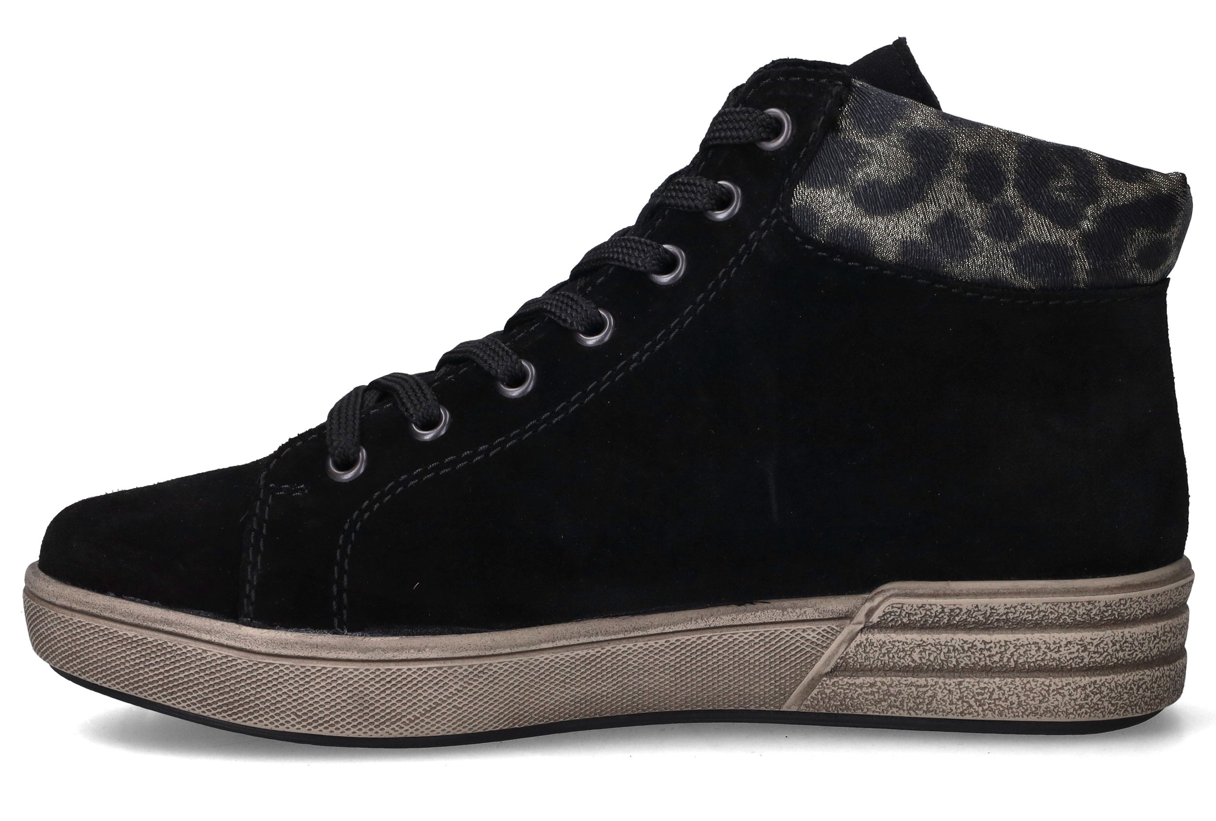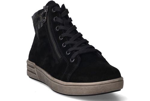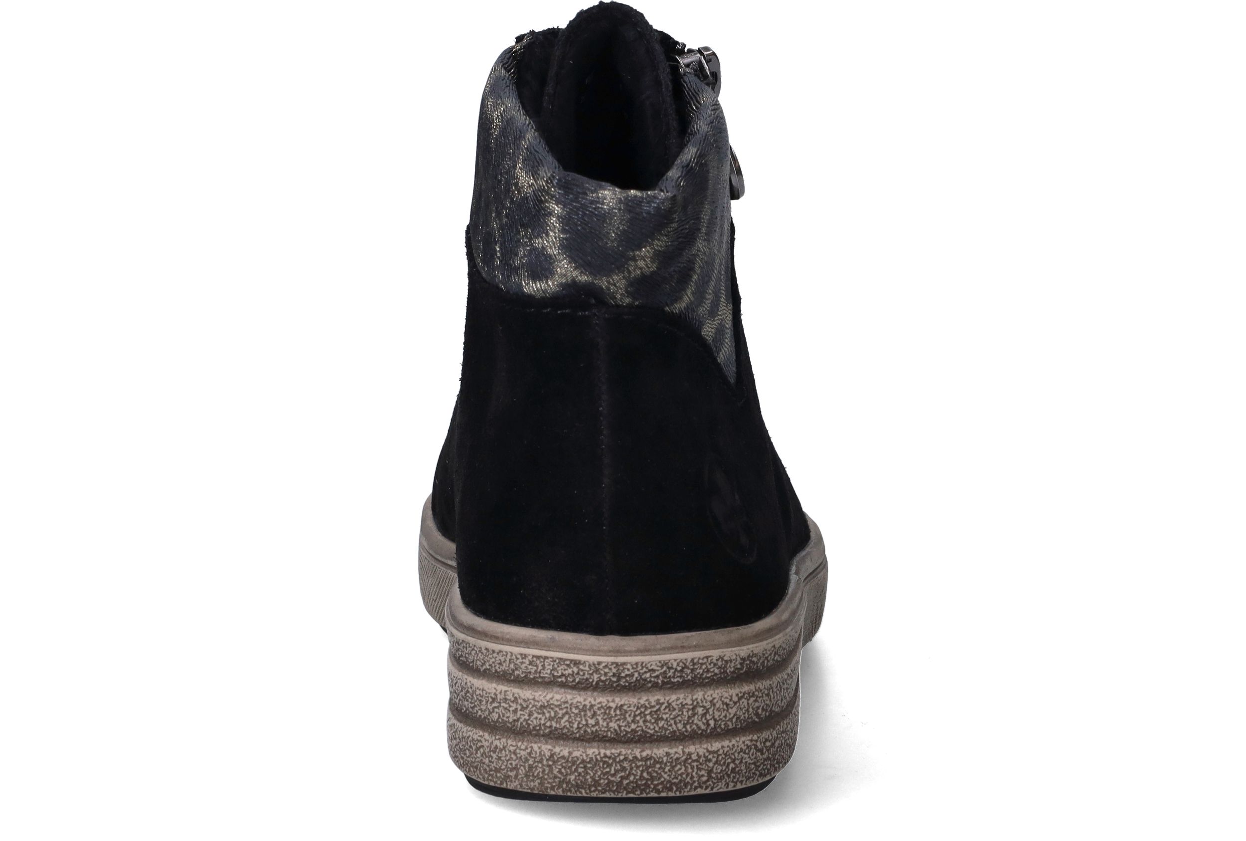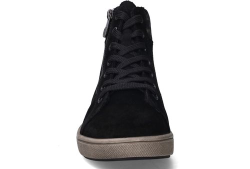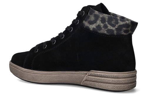 Deze zwarte sneakers van Rieker combineren moeiteloos stijl met comfort. Het suède met subtiele glansdetails en het synthetische materiaal zorgen voor een eigentijdse uitstraling. Dankzij de voetbreedte G sluiten ze mooi aan zonder te knellen. Perfect voor dames die er graag verzorgd uitzien én lekker willen lopen.