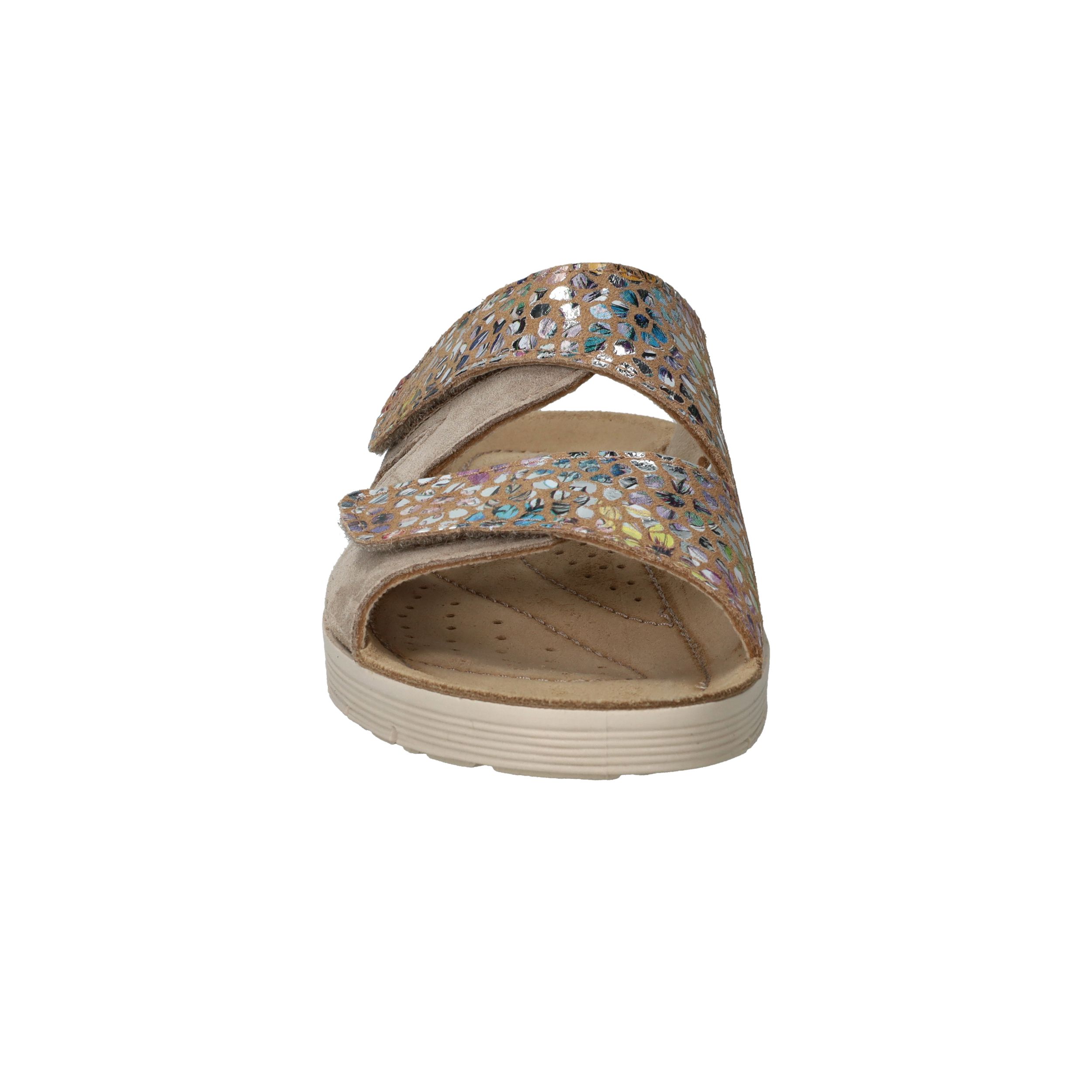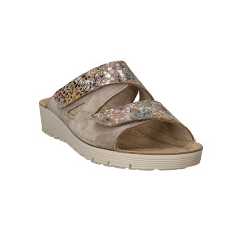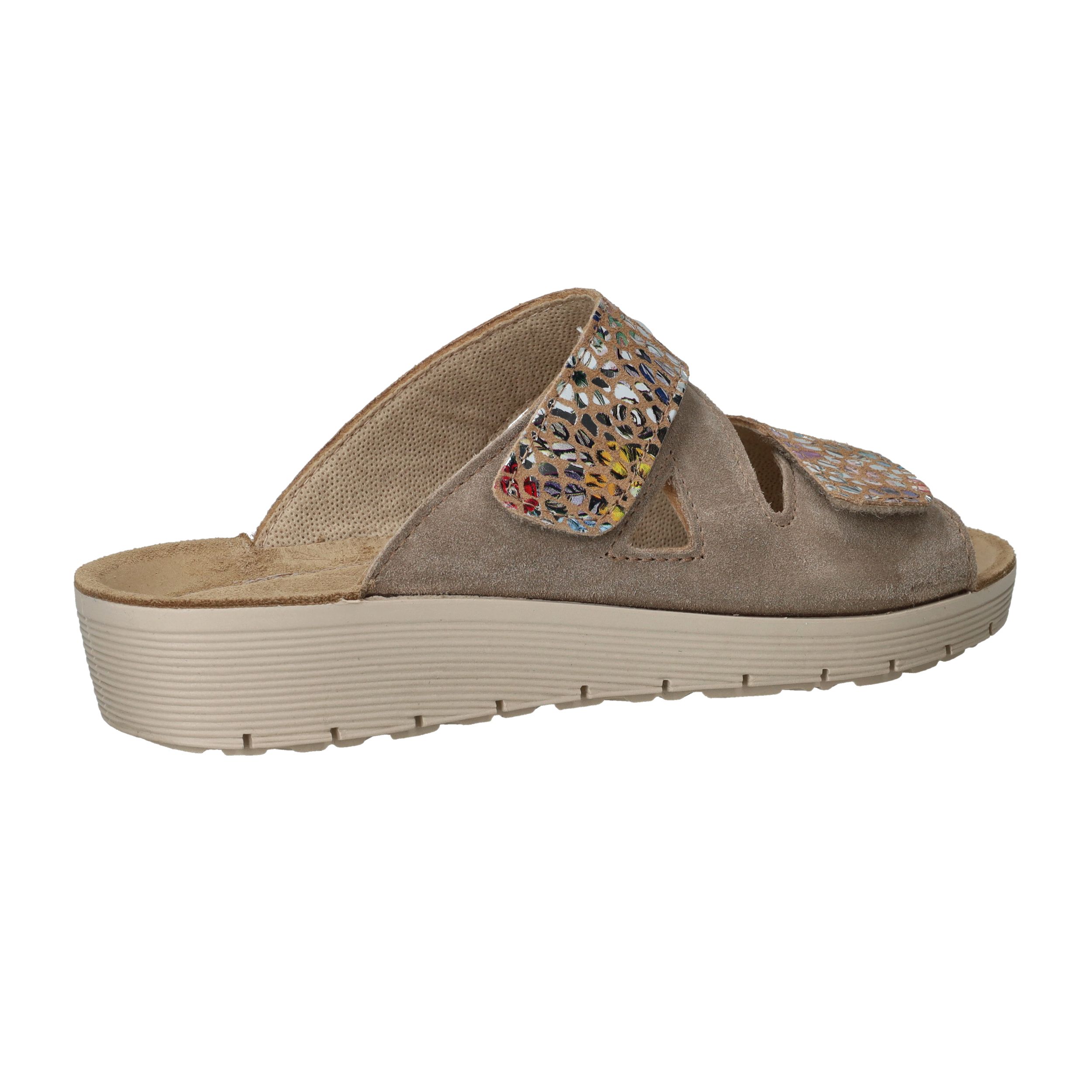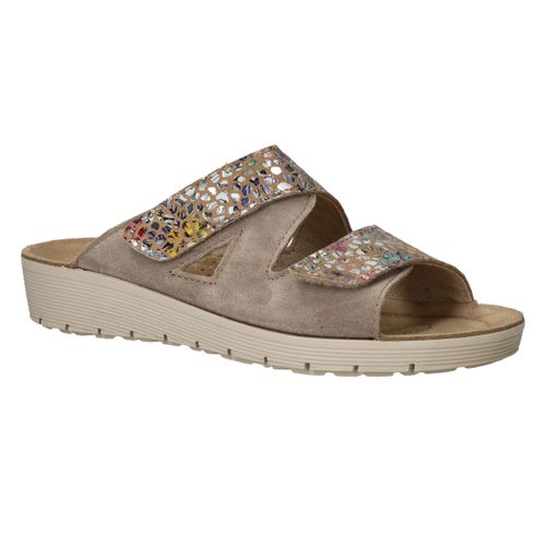 Deze modieuze slipper van het merk Rohde straalt comfort en flair uit. Het model is uitgevoerd in zacht beige suède en versierd met sprankelende strass steentjes, waardoor je elke zomeroutfit laat stralen. Dankzij de lichte zool en het zachte voetbed biedt deze slipper de hele dag door optimaal draagcomfort. Perfect voor wie comfort en een vleugje glamour wil combineren!