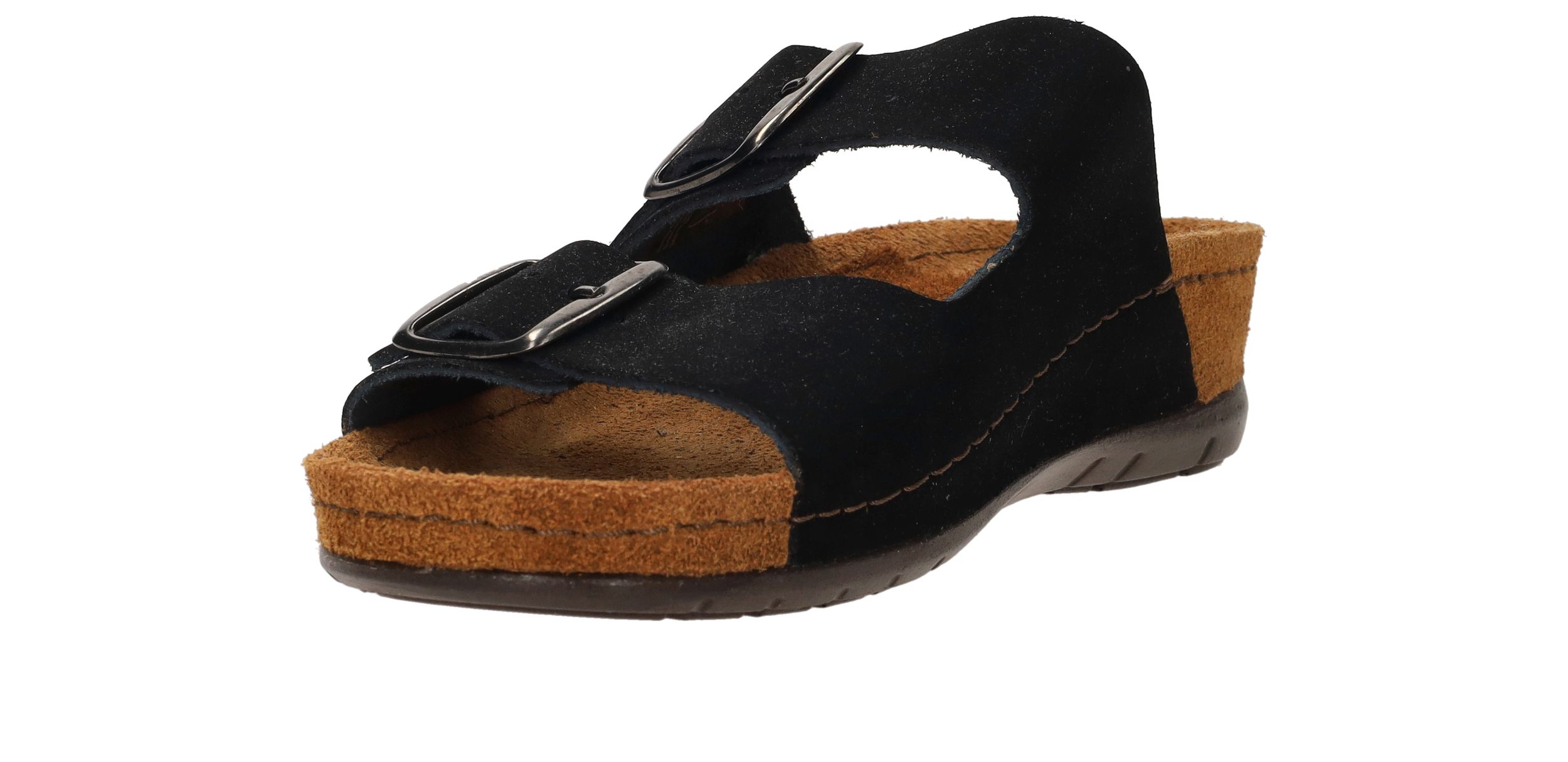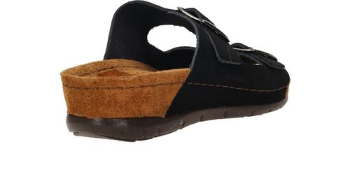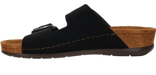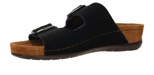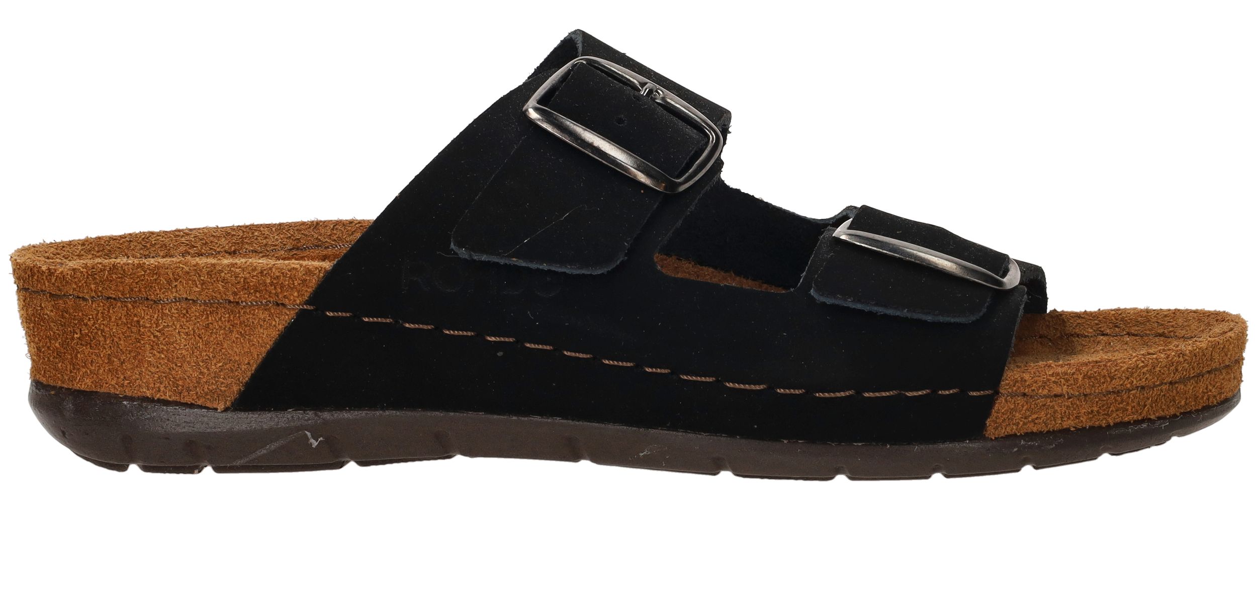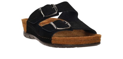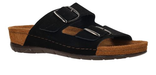 Comfortabele zwarte slipper van Rohde met dubbele gespsluiting.