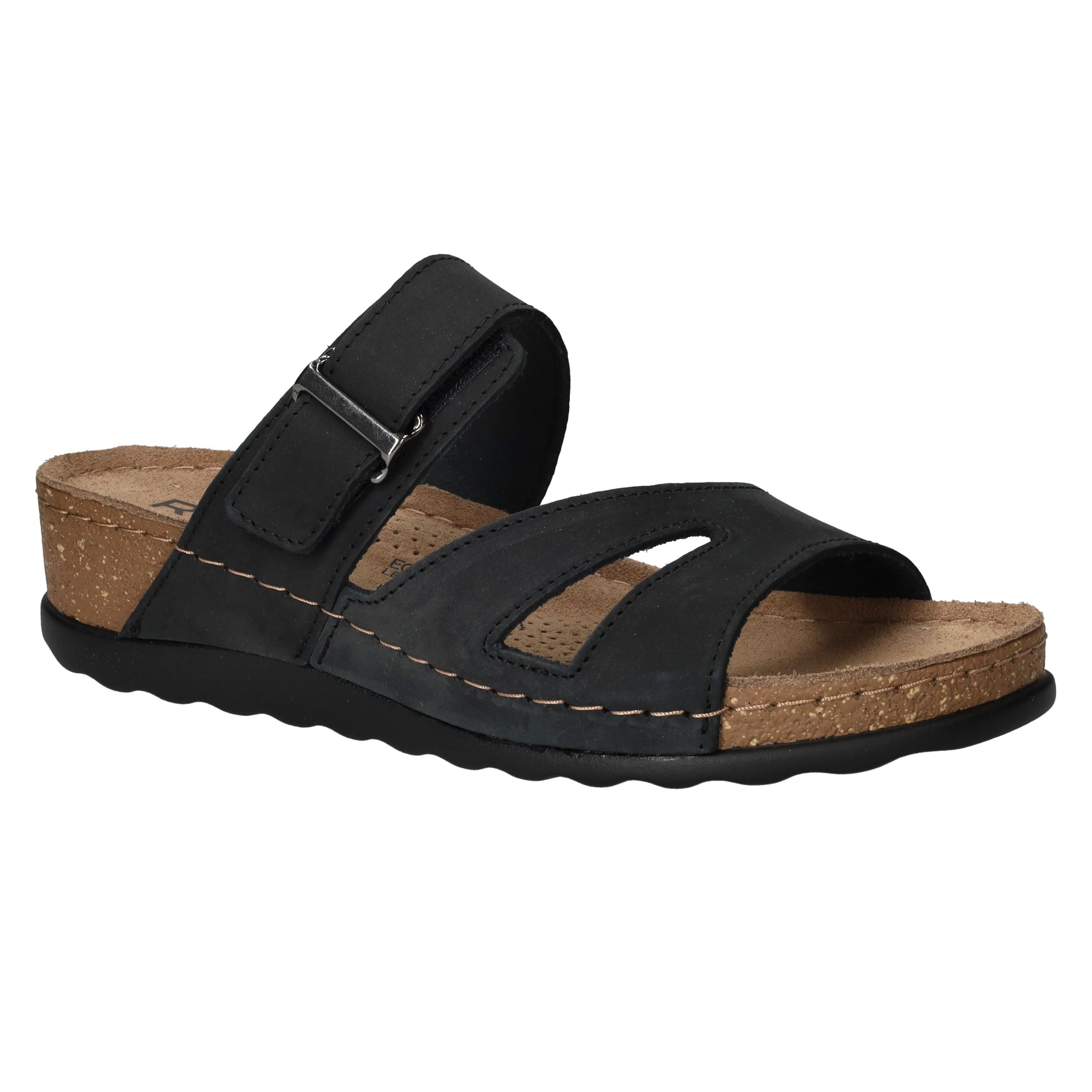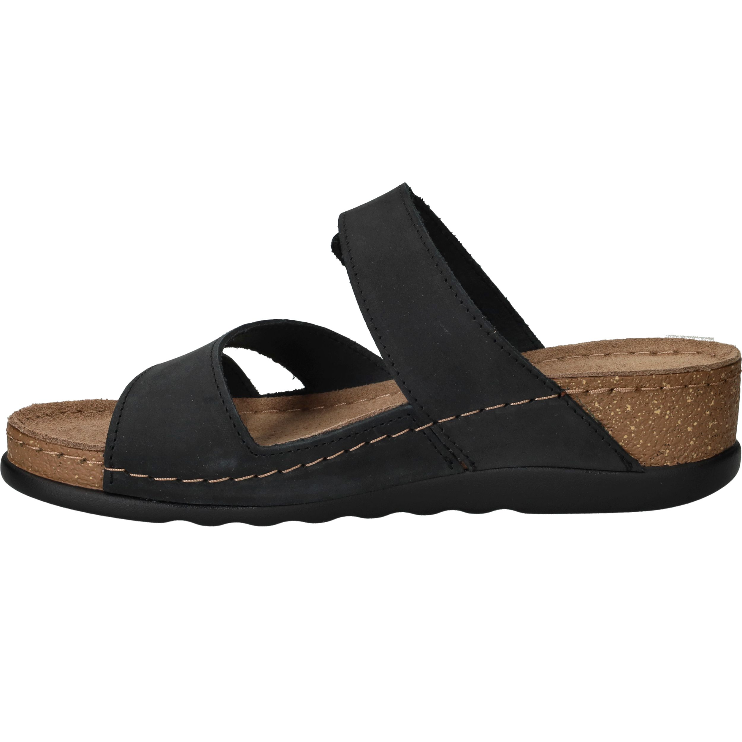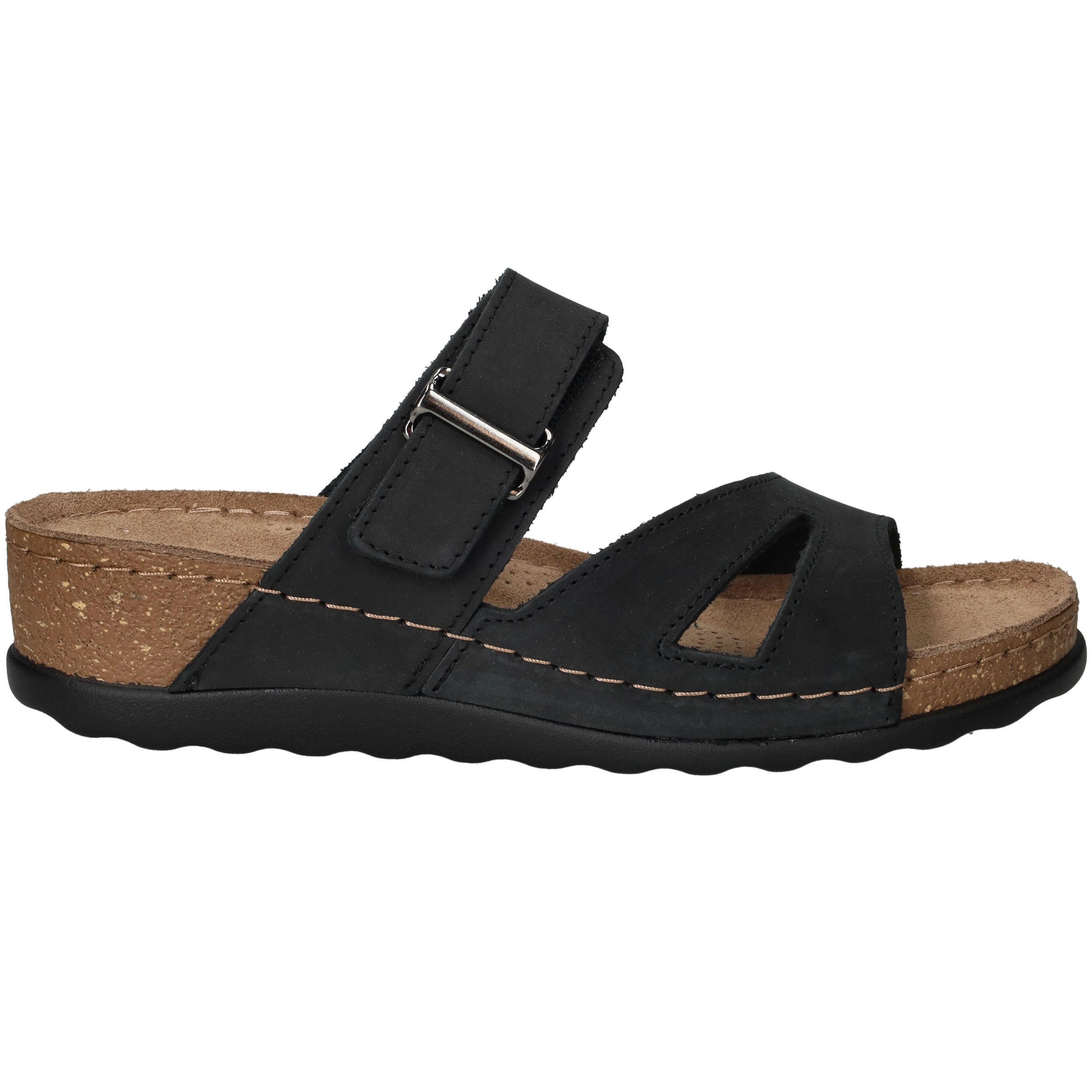 Met deze slippers van Rohde kies je voor comfort en stevigheid in één stijlvol design. De zwarte kleur en het leren bovenwerk maken deze slipper geschikt voor elke zomerse outfit. Dankzij de zachte binnenzool en verstelbare band geniet je van optimale ondersteuning, de hele dag door.
