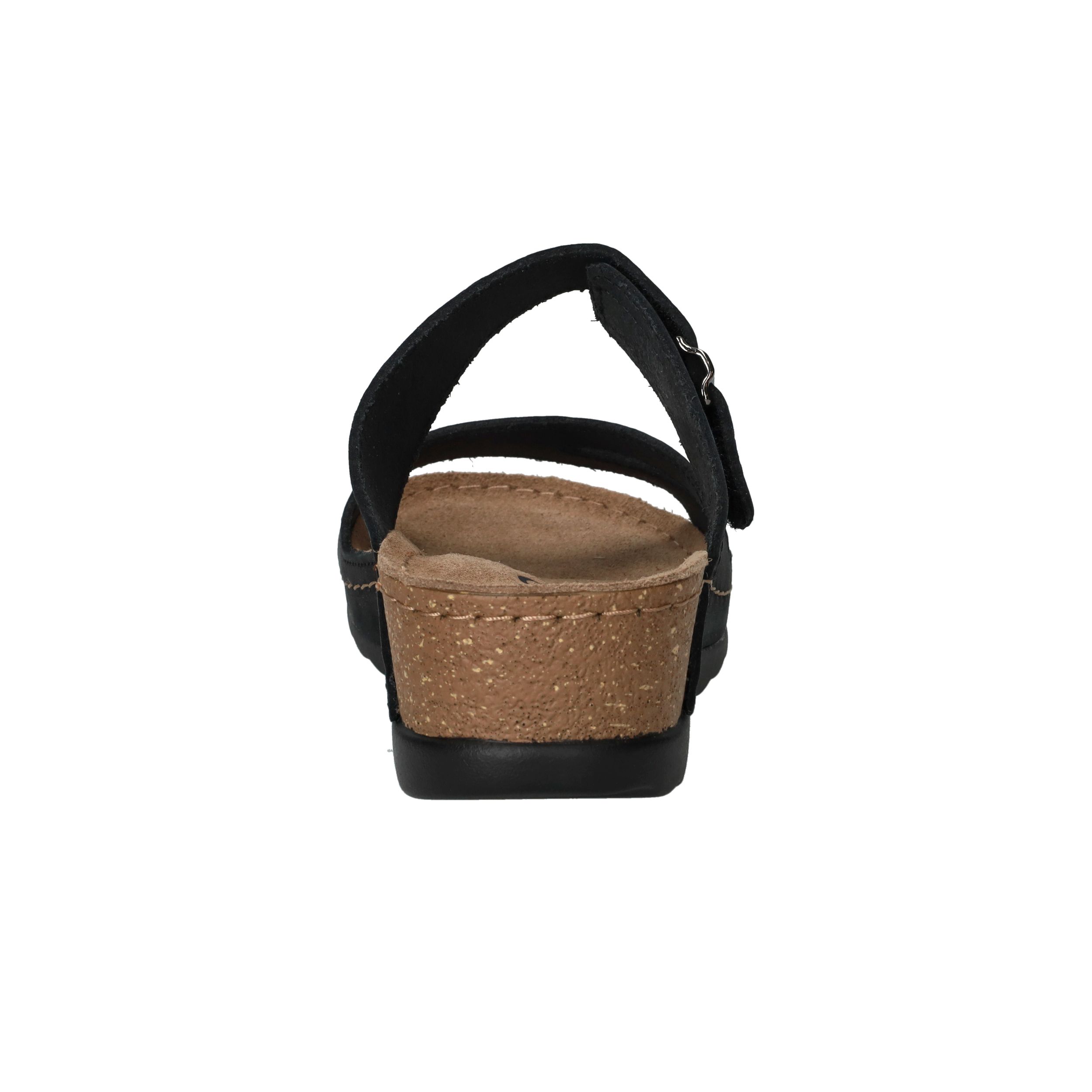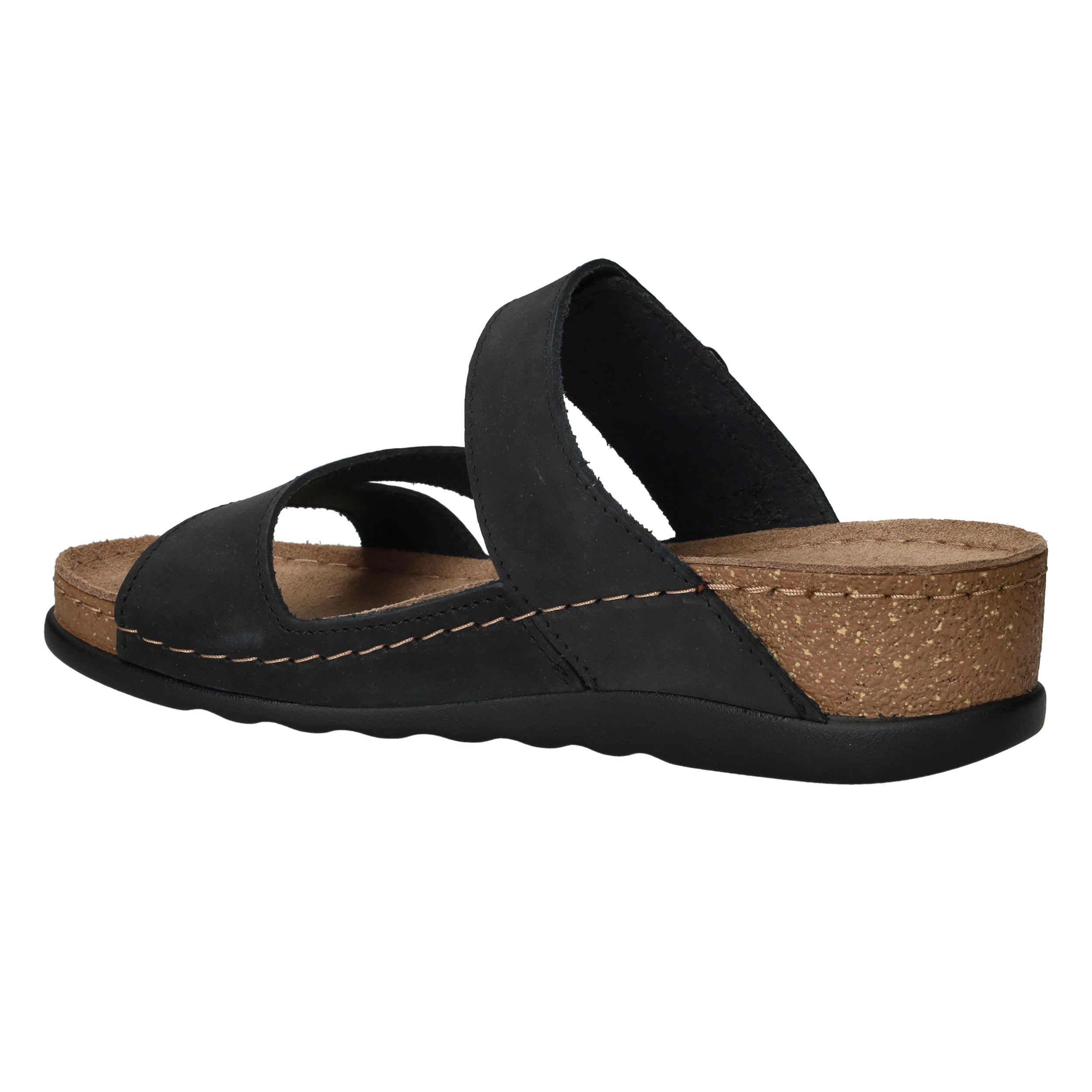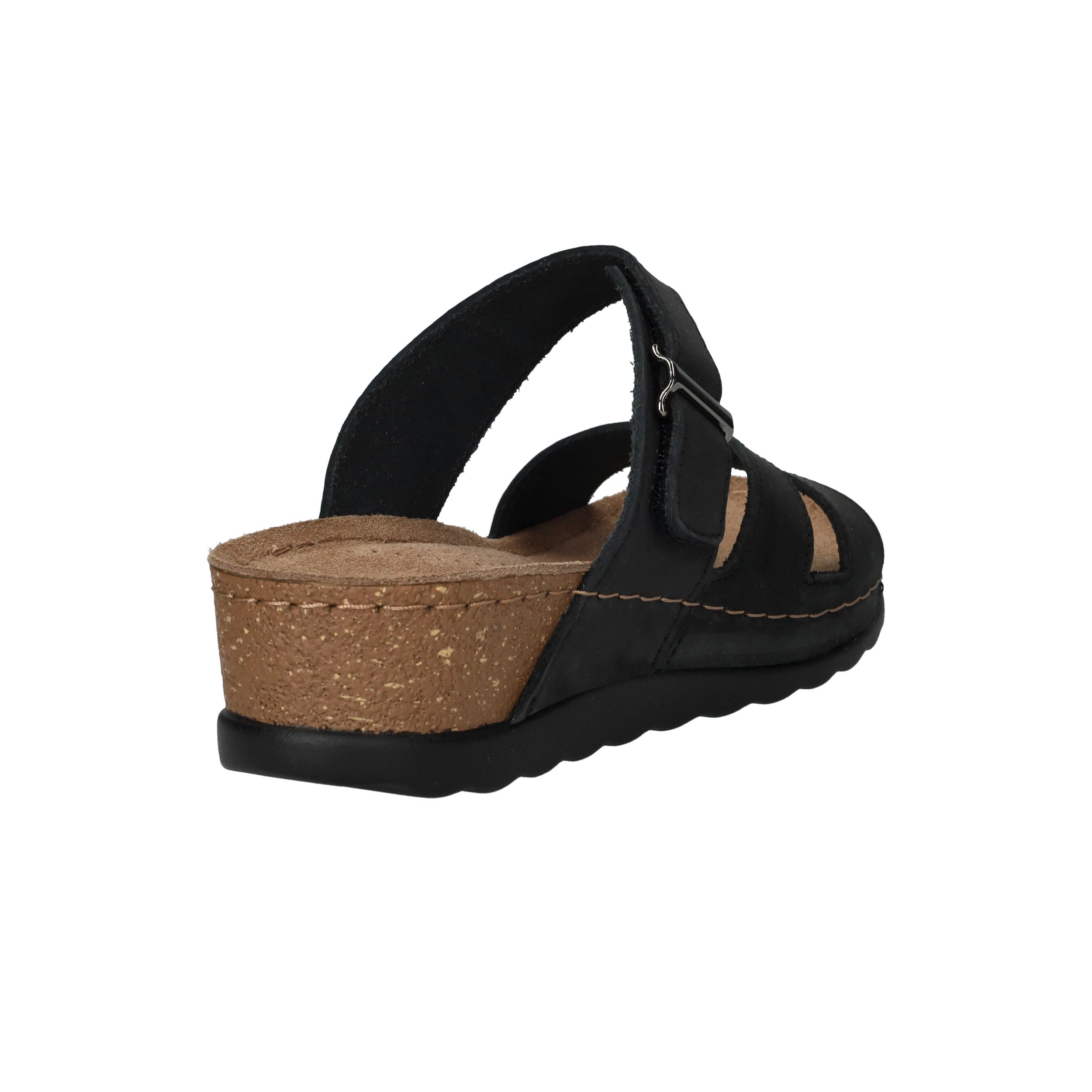 Met deze slippers van Rohde kies je voor comfort en stevigheid in één stijlvol design. De zwarte kleur en het leren bovenwerk maken deze slipper geschikt voor elke zomerse outfit. Dankzij de zachte binnenzool en verstelbare band geniet je van optimale ondersteuning, de hele dag door.