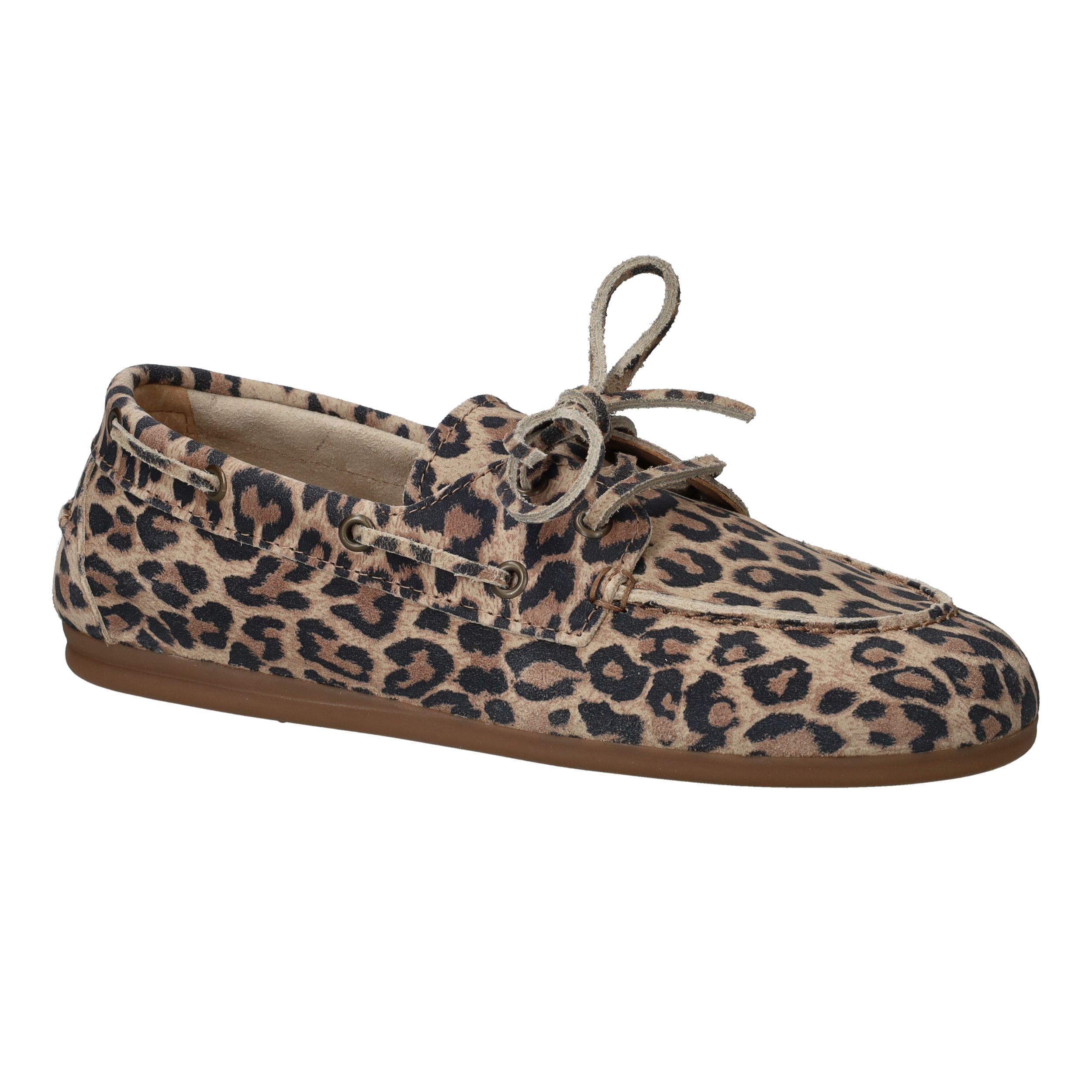 Deze Schoecolate instapper is uitgevoerd in een prachtige beige-bruine dierenprint. Gemaakt van zacht suède en ontworpen voor optimaal draagcomfort. Een elegante keuze die je makkelijk combineert met zowel casual als nette outfits.