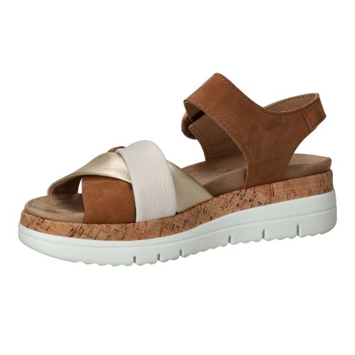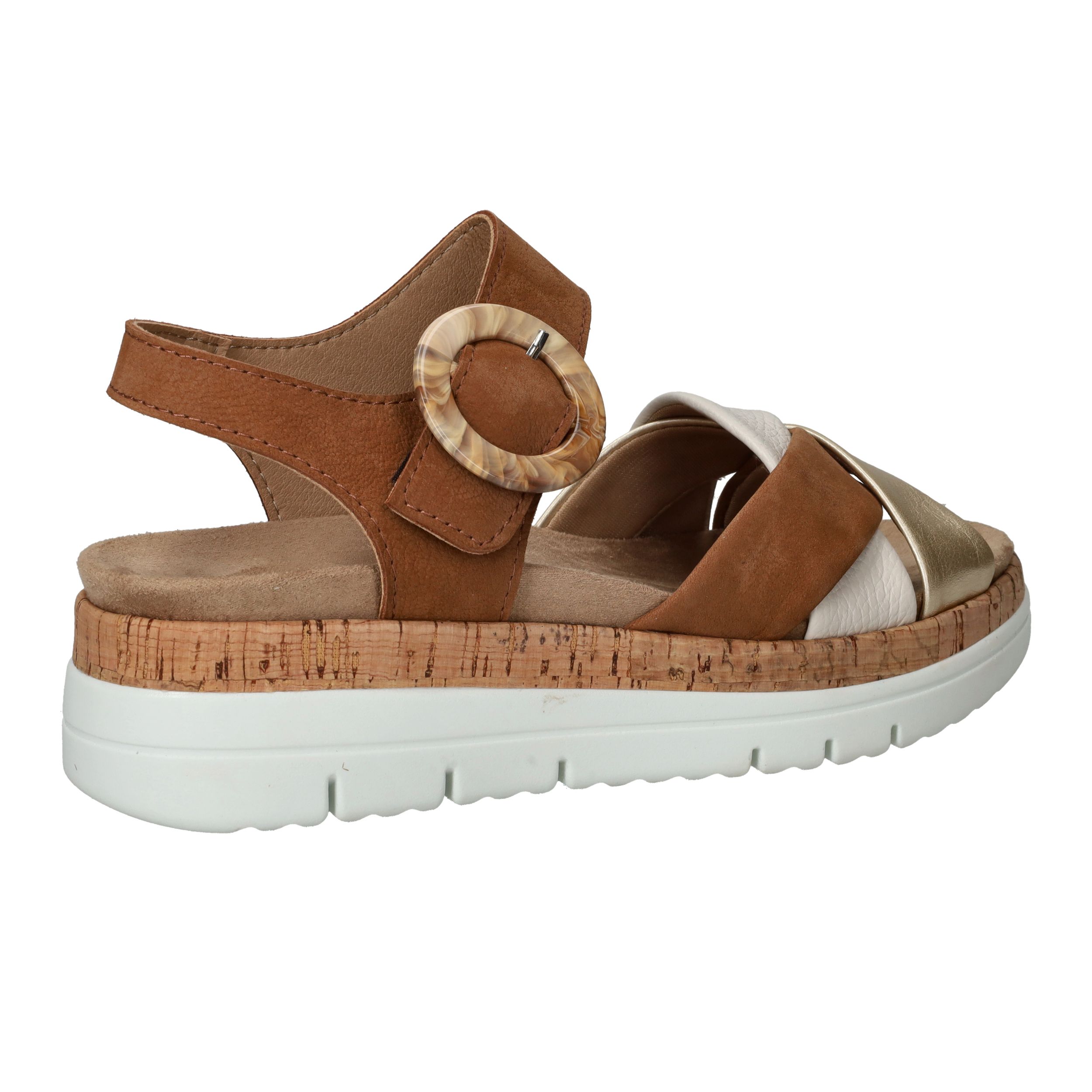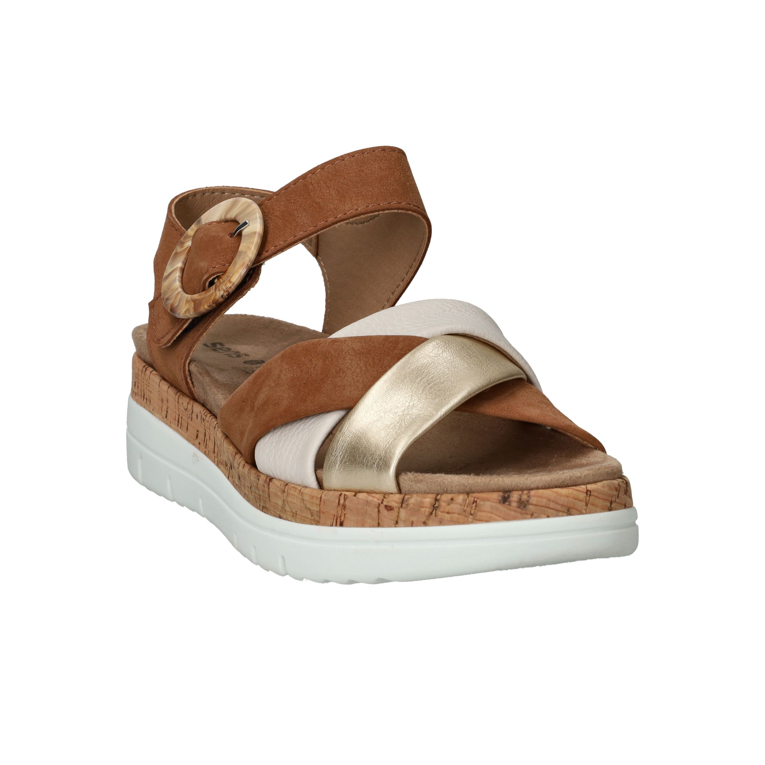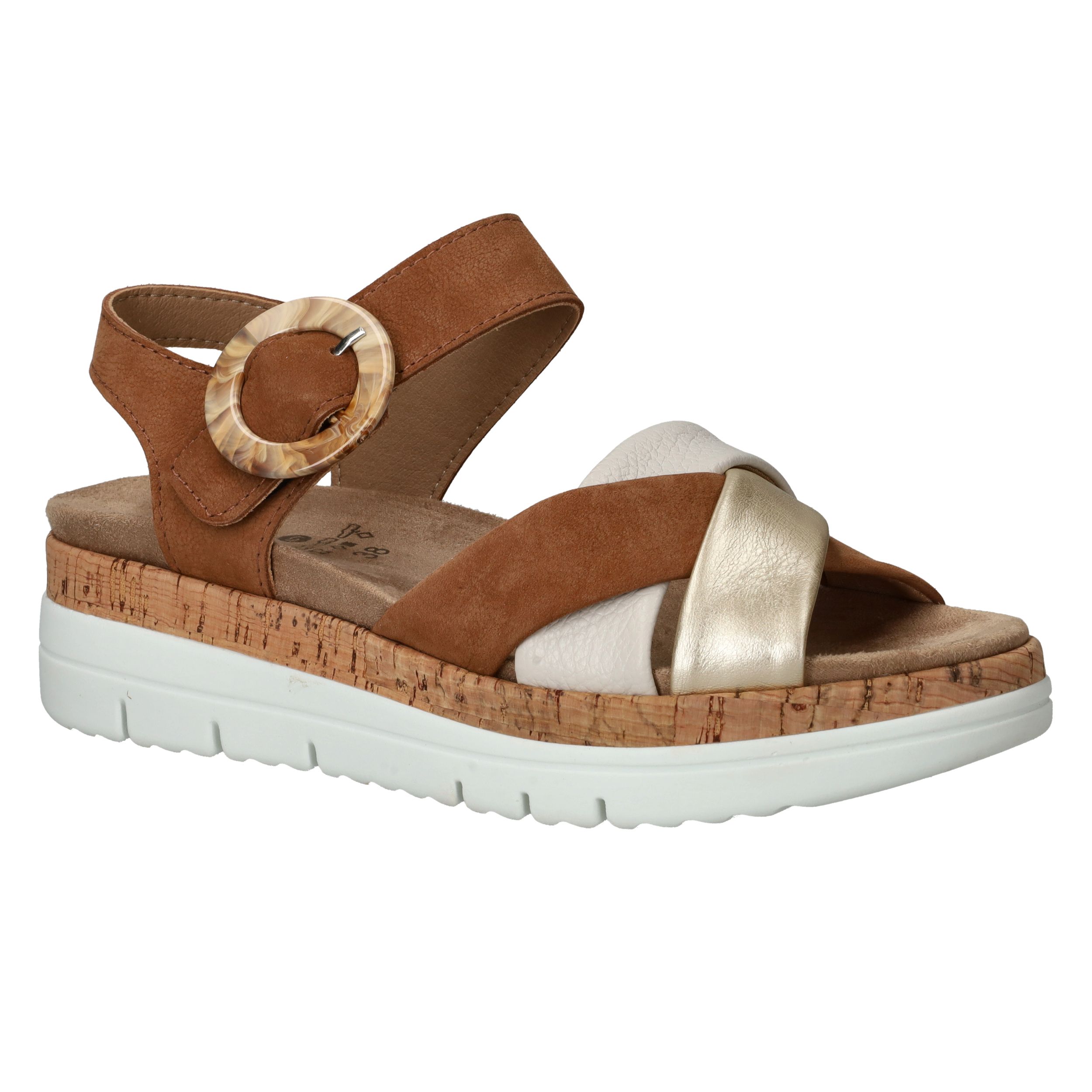 Een speelse combinatie van stijl en comfort: deze sandalen van Sens zijn een frisse toevoeging aan je zomergarderobe. De banden van zacht suède en glanzend metallic zorgen voor een trendy en luxe uitstraling. Deze sandalen zijn ontworpen voor dames met voetbreedte G en bieden comfort dankzij het zachte voetbed en de lichtgewicht zool. De combinatie van bruin en goud maakt elke stap stijlvol en feestelijk.