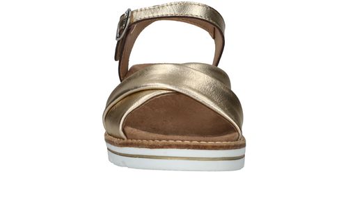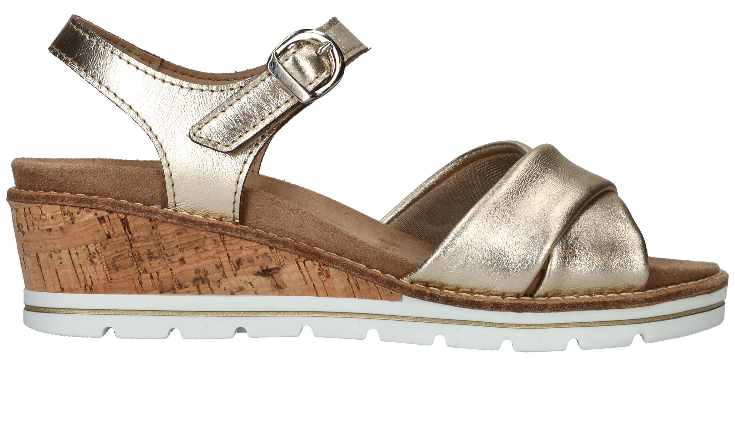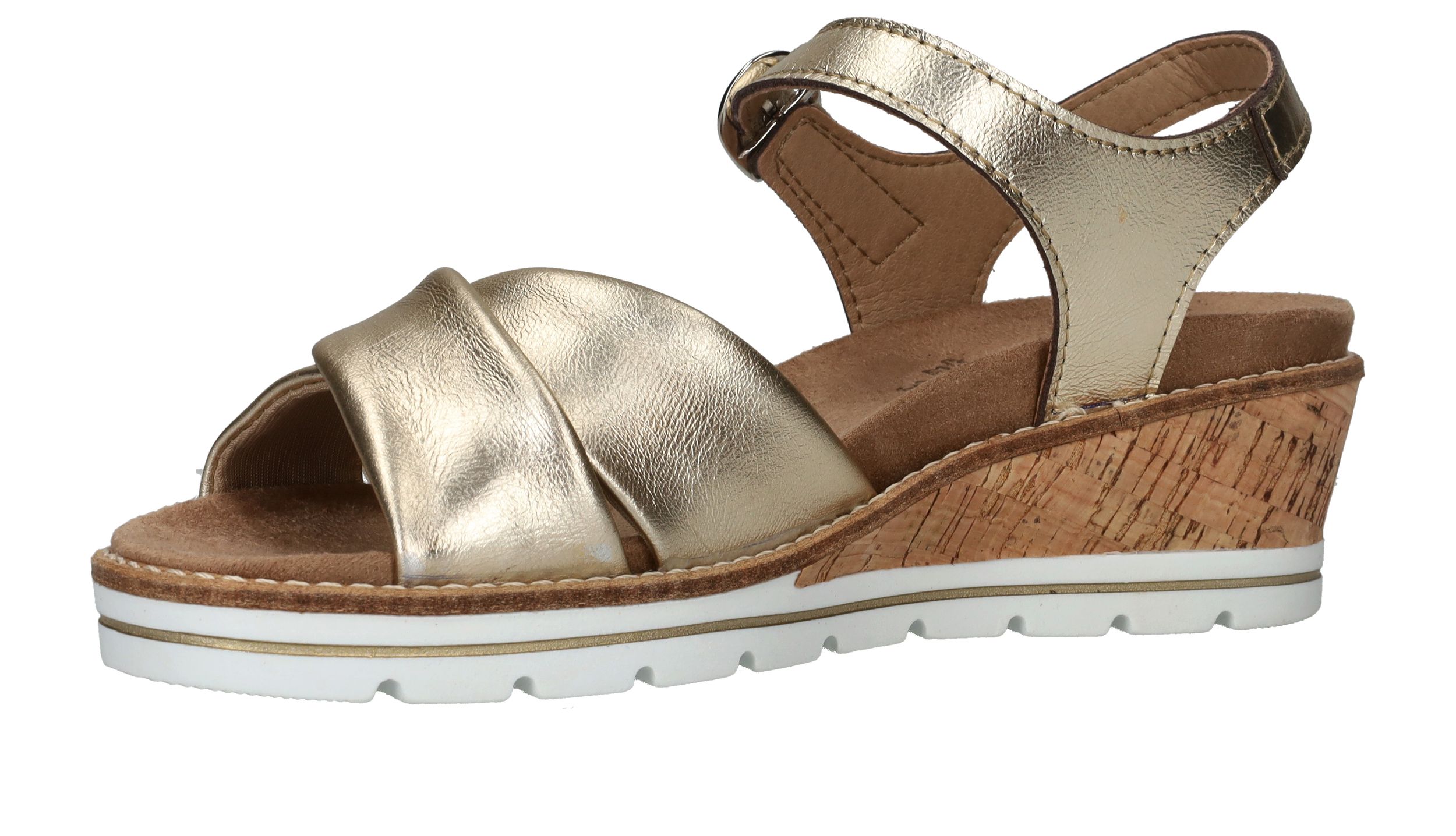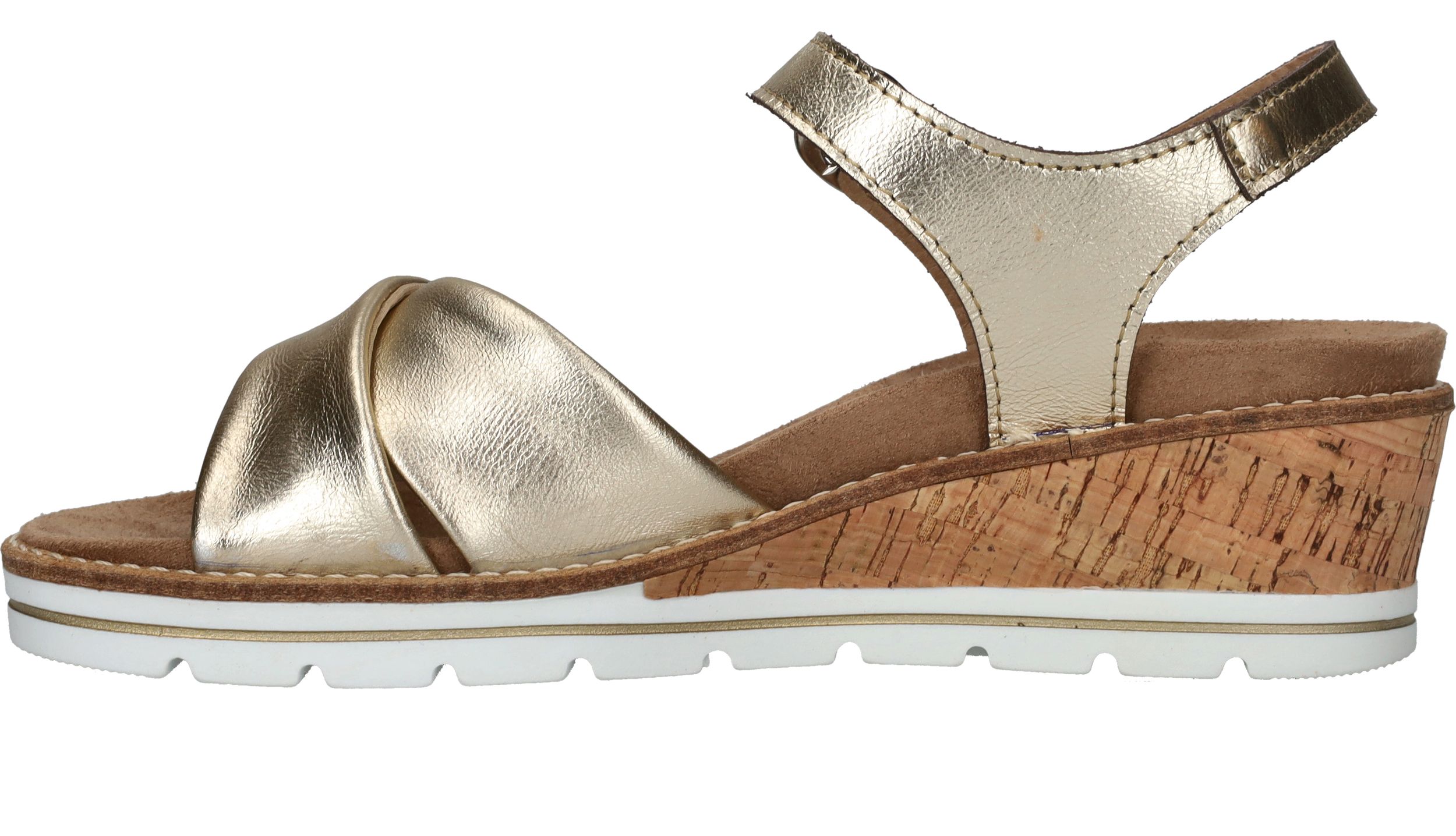 Hele fijne en comfortabele Sens sandaal! De metallic gouden sandaal heeft een uitneembaar voetbed en is daarom geschikt voor steunzolen.
