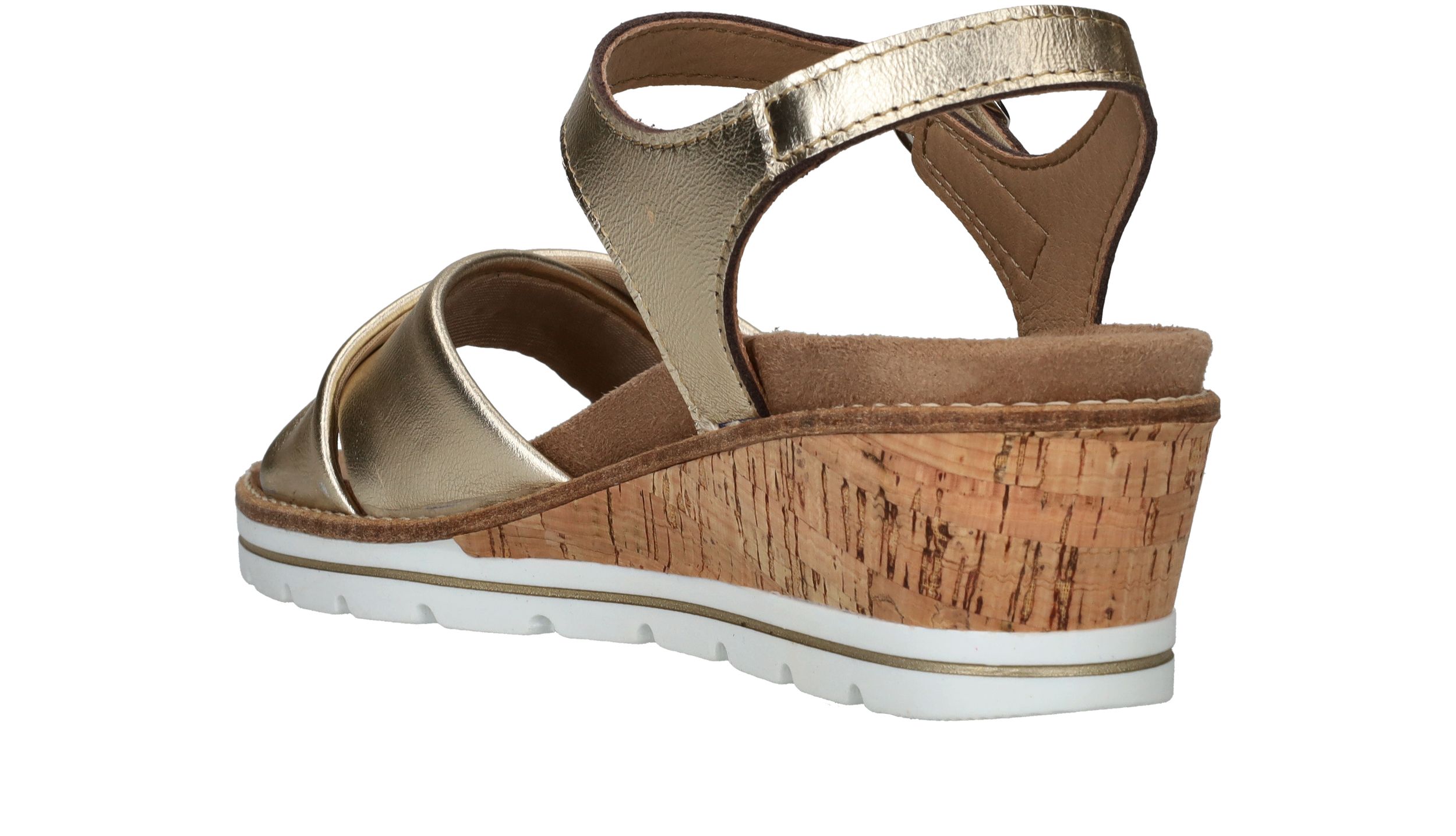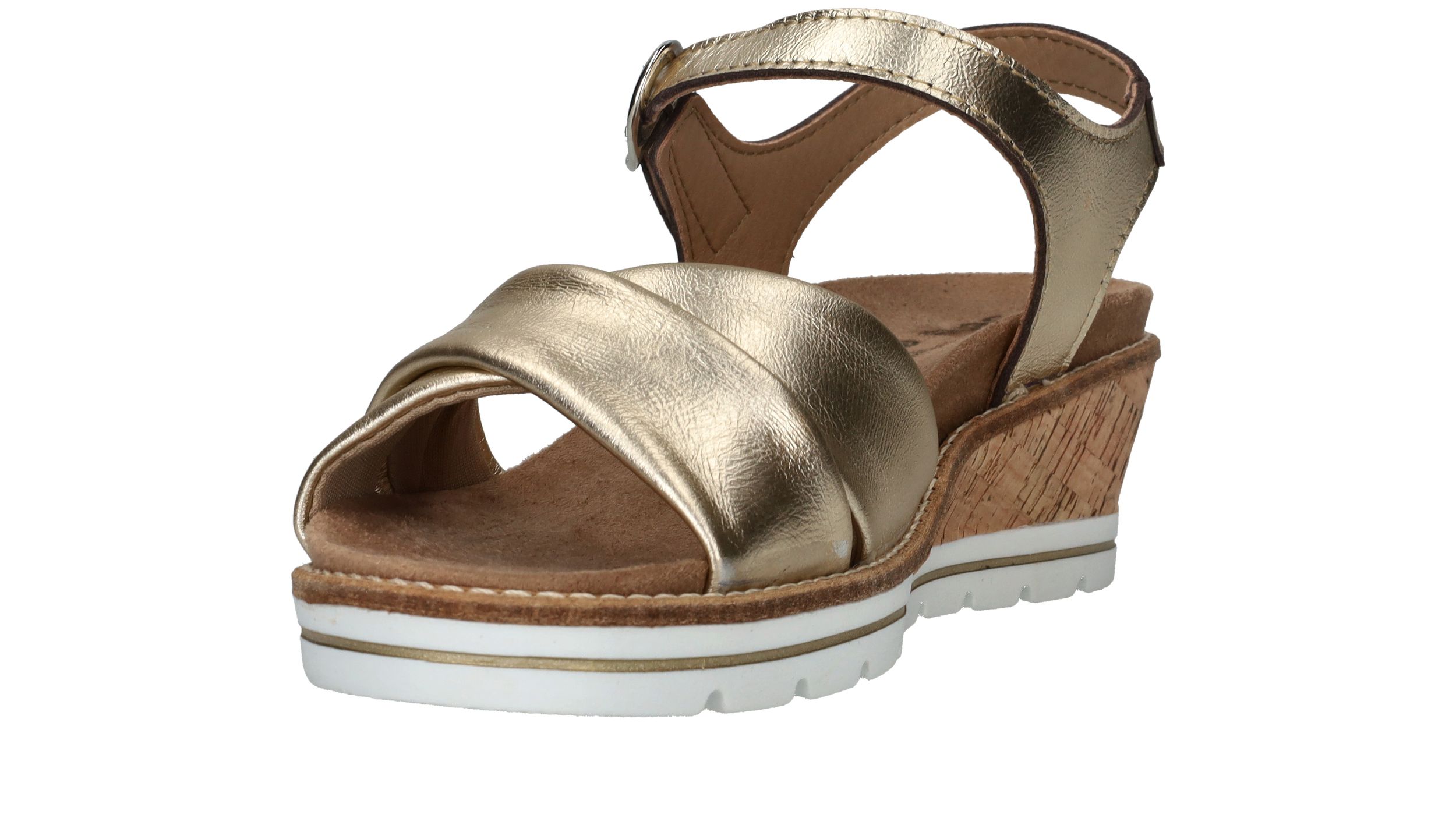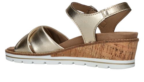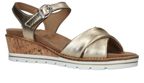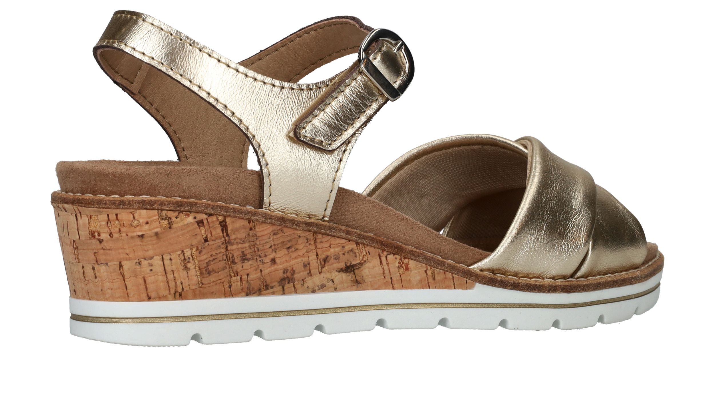 Hele fijne en comfortabele Sens sandaal! De metallic gouden sandaal heeft een uitneembaar voetbed en is daarom geschikt voor steunzolen.