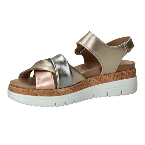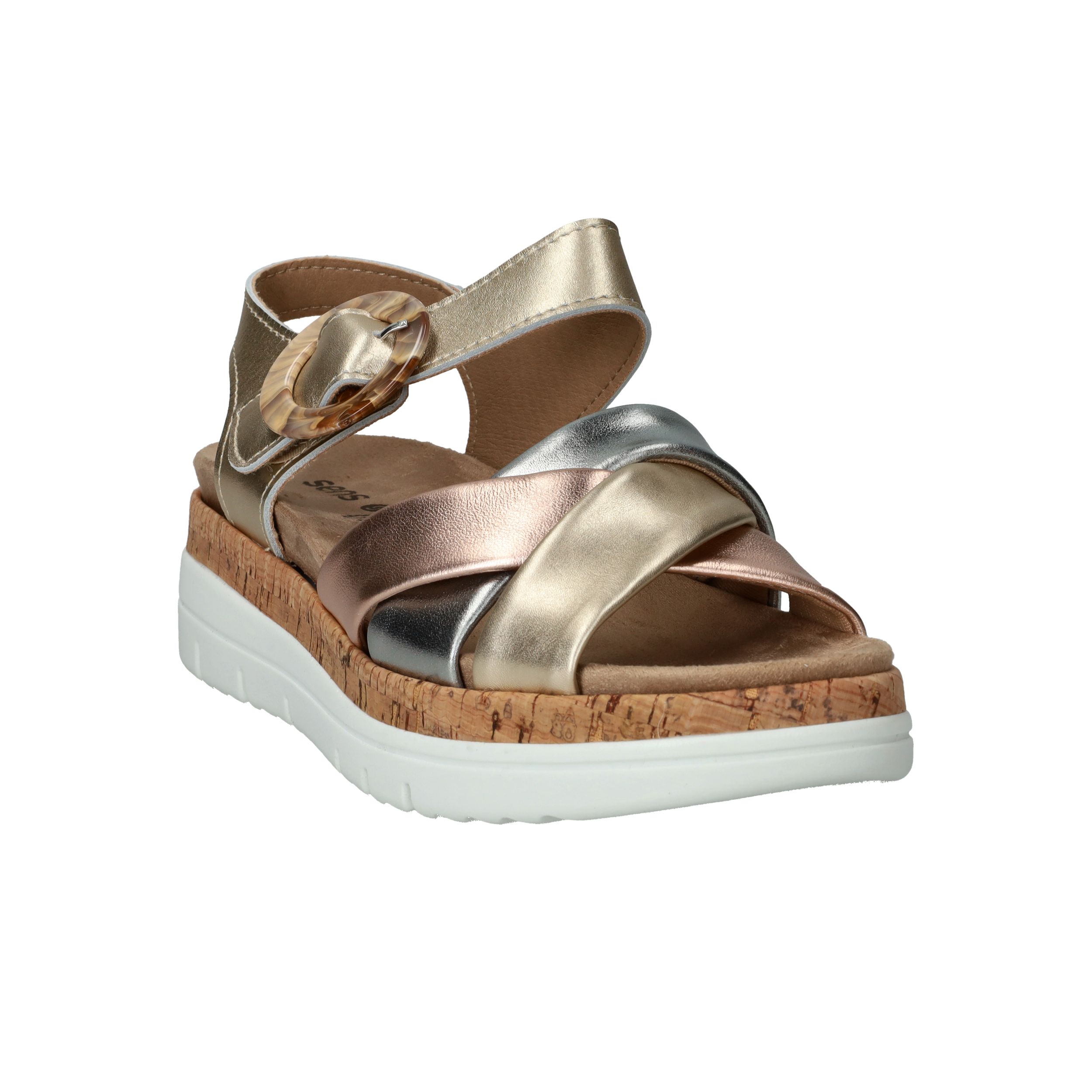 Een speelse combinatie van stijl en comfort: deze sandalen van Sens zijn een frisse toevoeging aan je zomergarderobe. De banden van zacht suède en glanzend metallic zorgen voor een trendy en luxe uitstraling. Deze sandalen zijn ontworpen voor dames met voetbreedte G en bieden comfort dankzij het zachte voetbed en de lichtgewicht zool. De combinatie van zilver en goud maakt elke stap stijlvol en feestelijk.