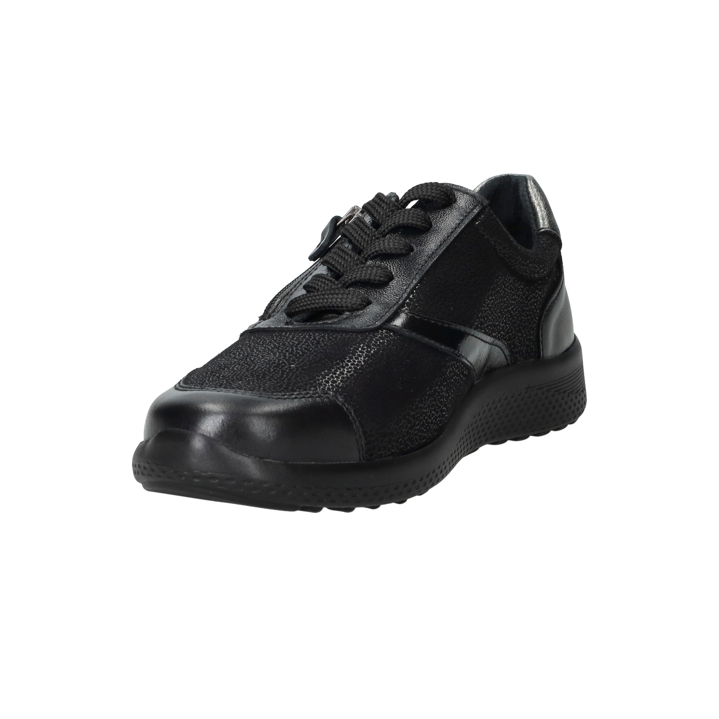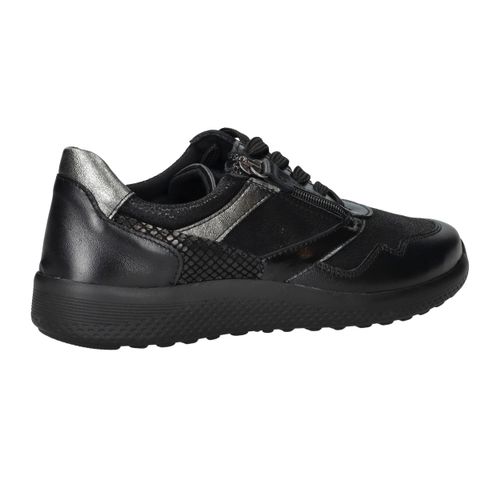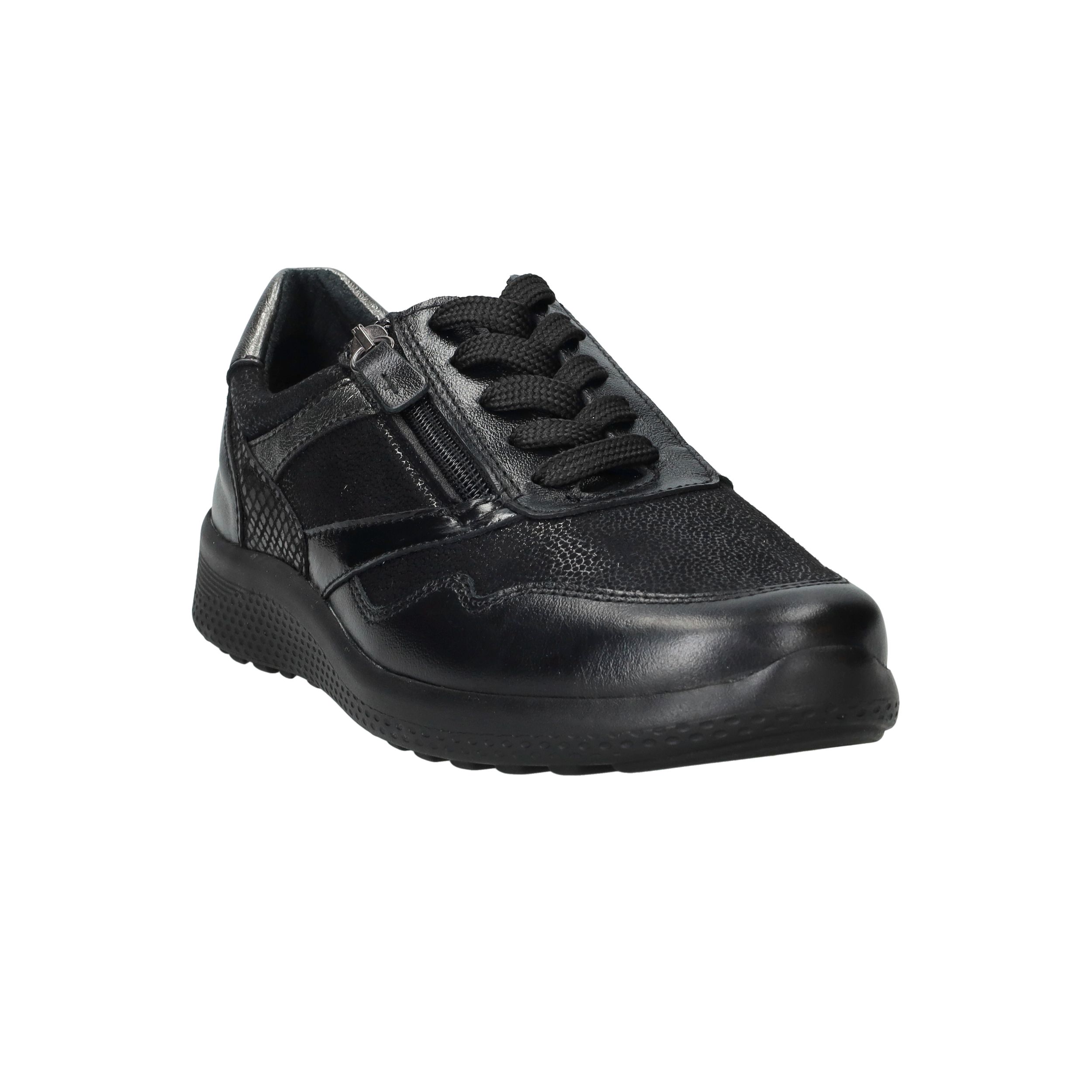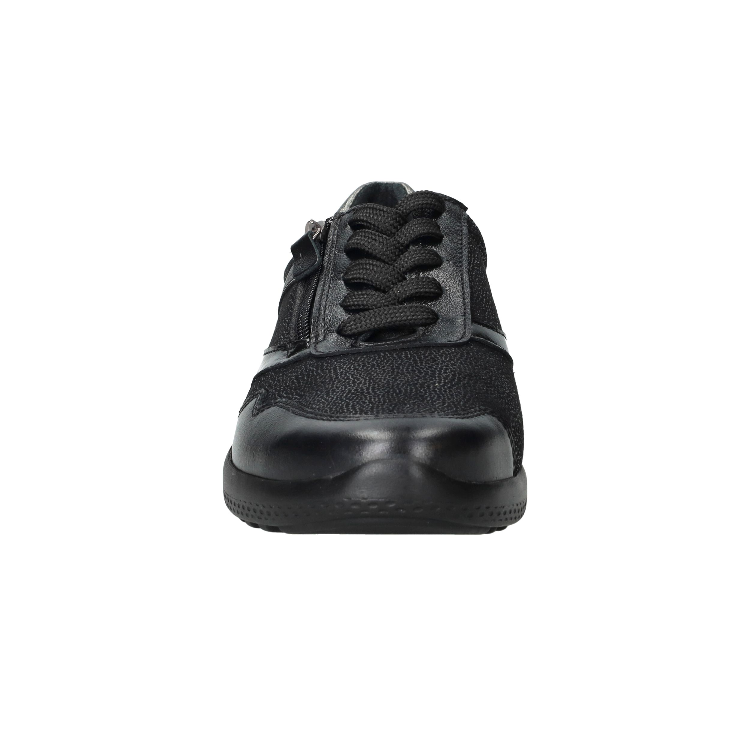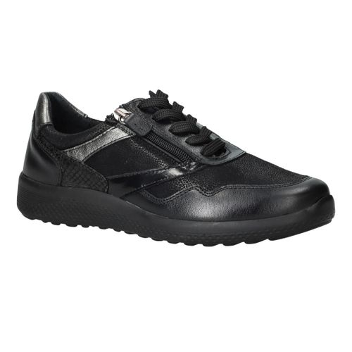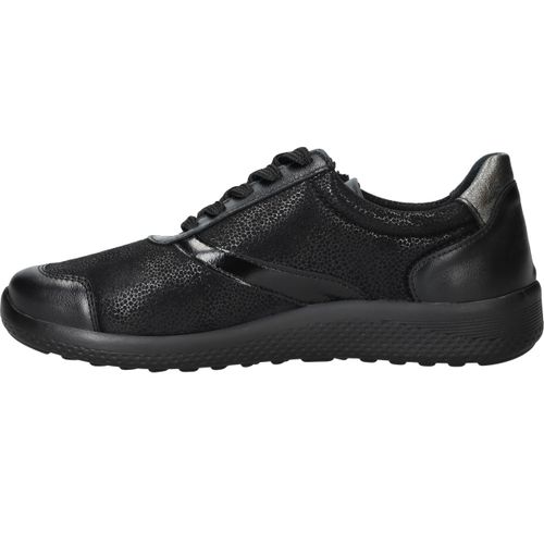 Deze zwarte sneaker van Sens is een ideale keuze voor dames die comfort en stijl willen combineren. Dankzij de extra brede K-wijdte ervaar je meer bewegingsvrijheid voor de voeten, zonder drukpunten. Het bovenwerk van leer en stretchtextiel vormt zich soepel naar je voet en het uitneembare voetbed maakt deze sneaker geschikt voor steunzolen.