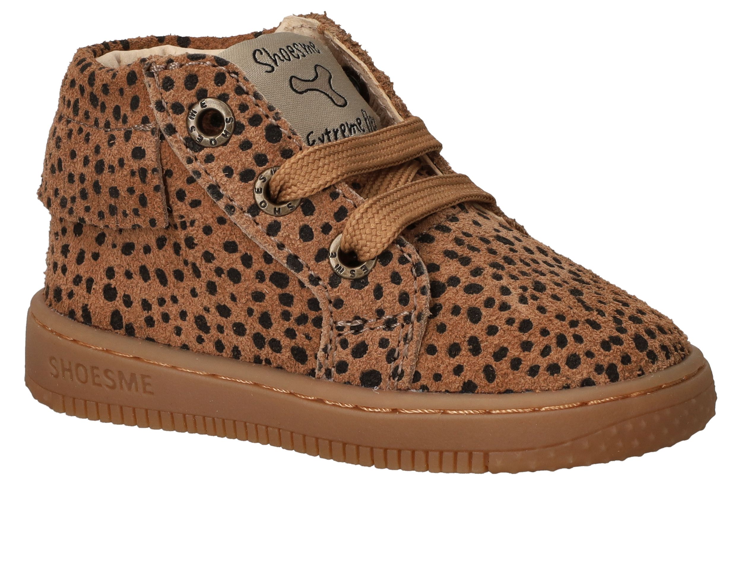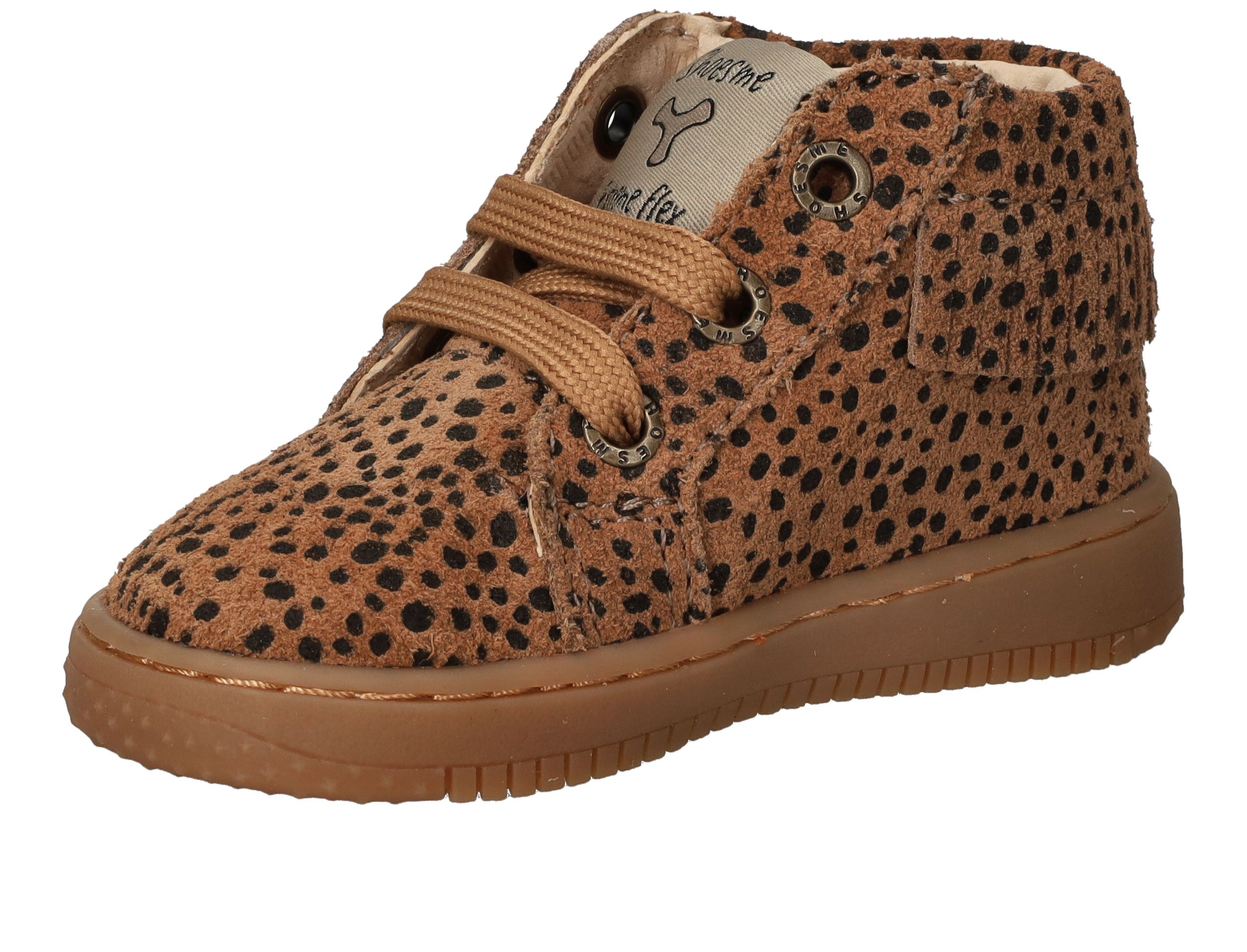 Deze cognac kleur Shoesme Baby-Proof veterschoen met stipjes is het perfecte schoentje voor als je kindje leert lopen! Het schoentje heeft een flexzool. Een flexzool is buigzaam er zorgt ervoor dat het voetje goed afgewikkeld kan worden.