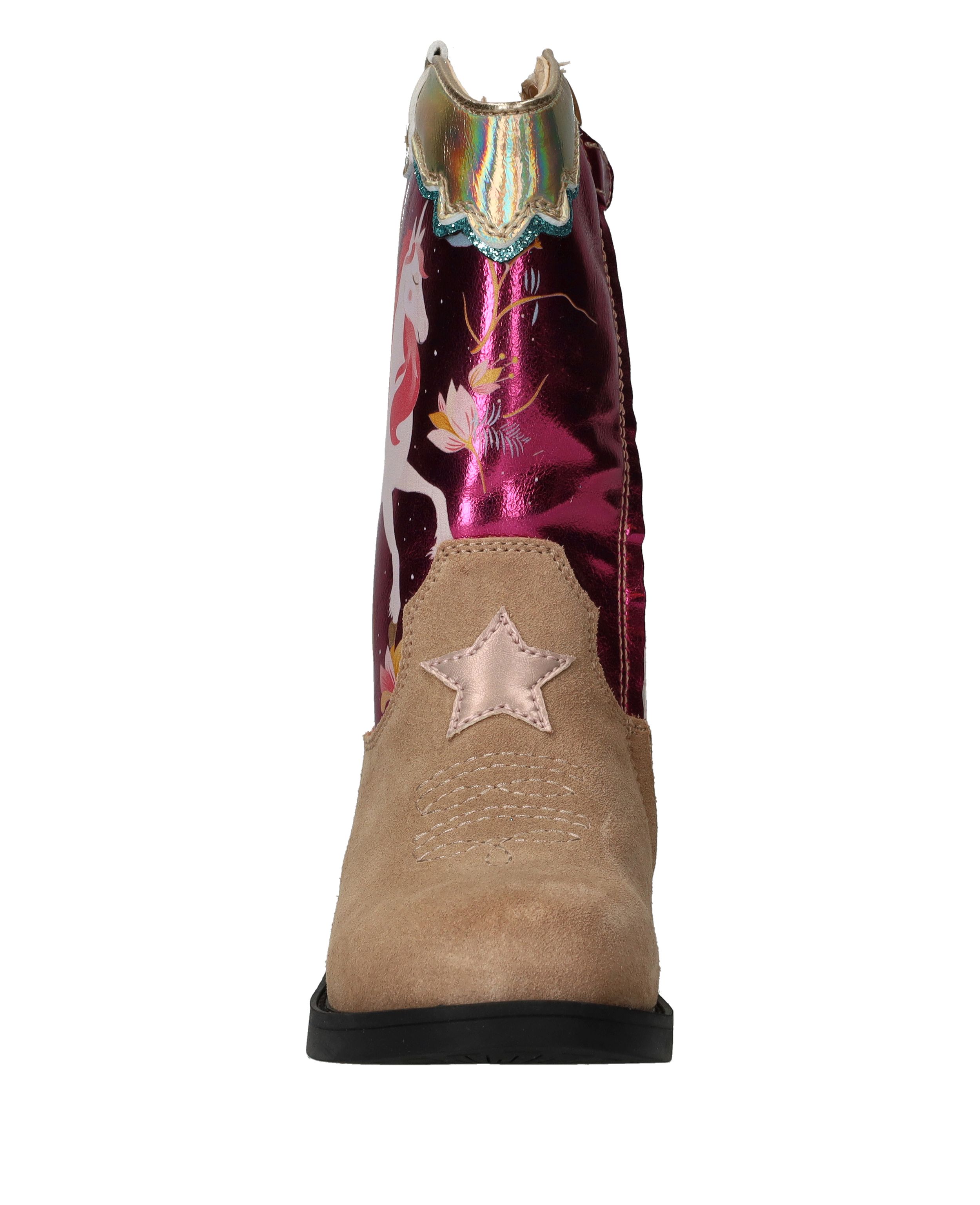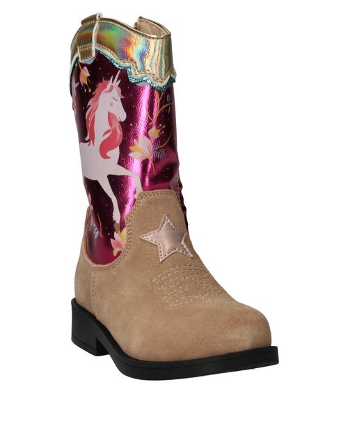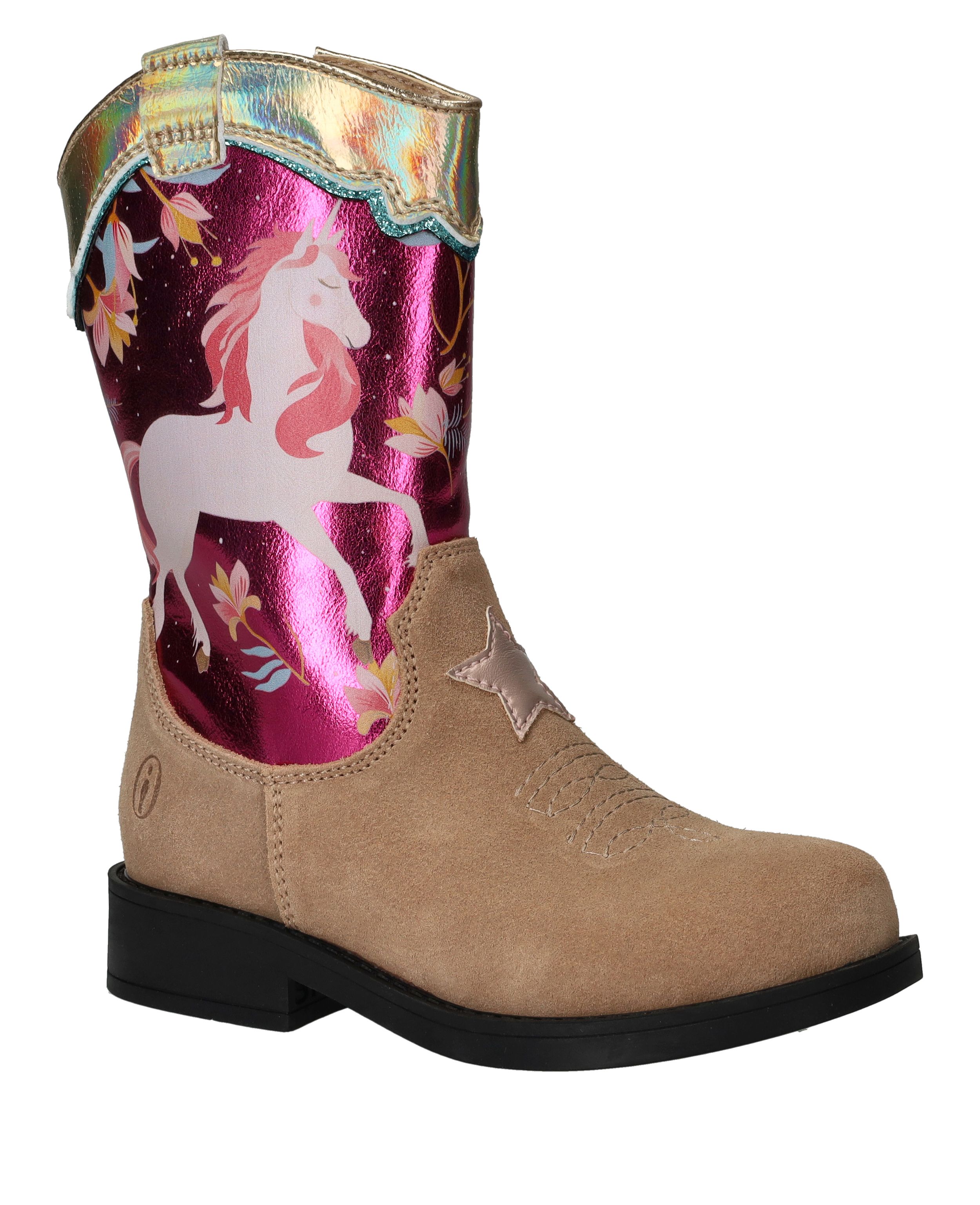 Zo'n gave unicorn laars is de droom van ieder meisje! Deze beige Shoesme laars is gemaakt van leer en je stapt er heel makkelijk in door de ritssluiting.