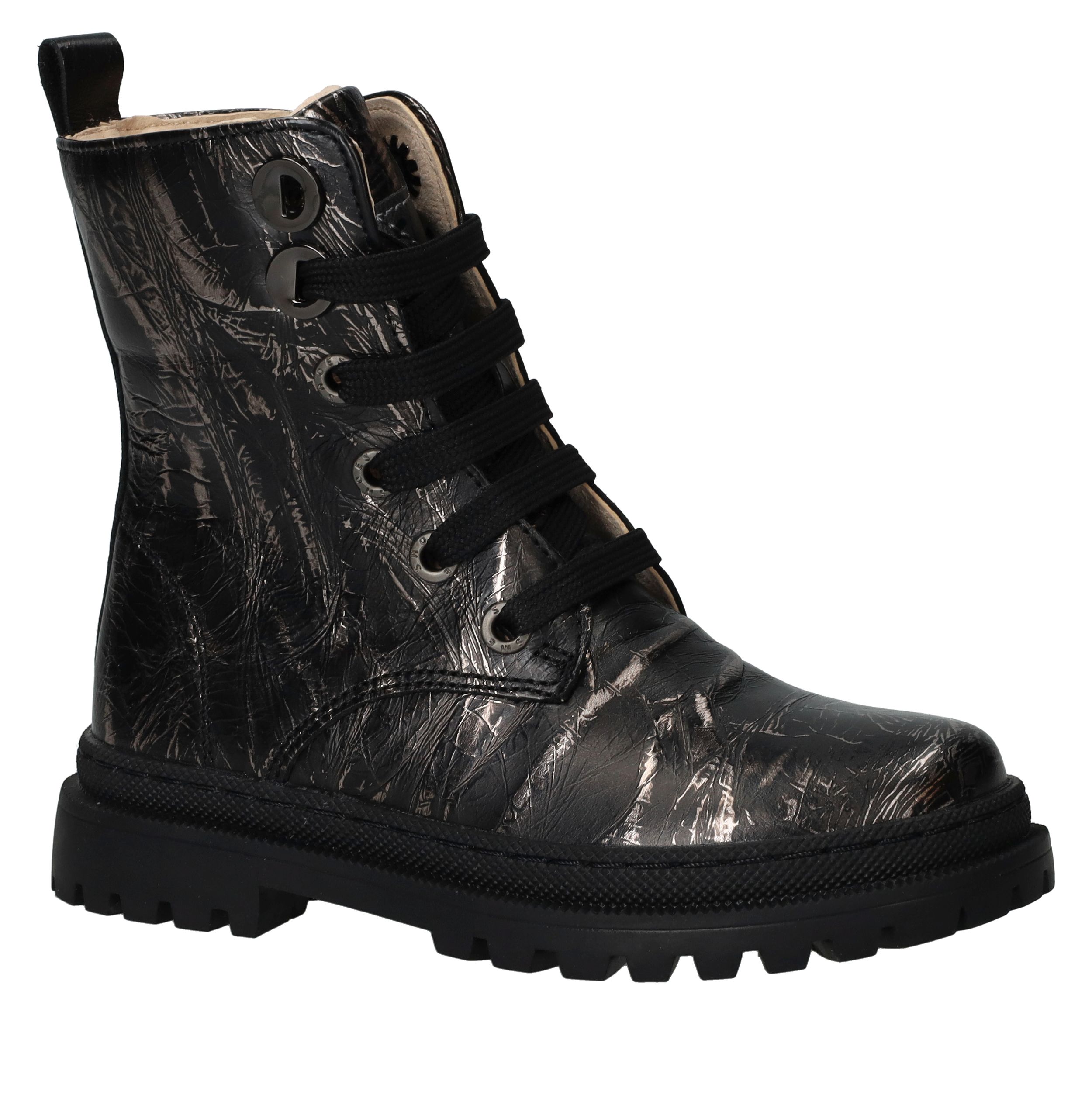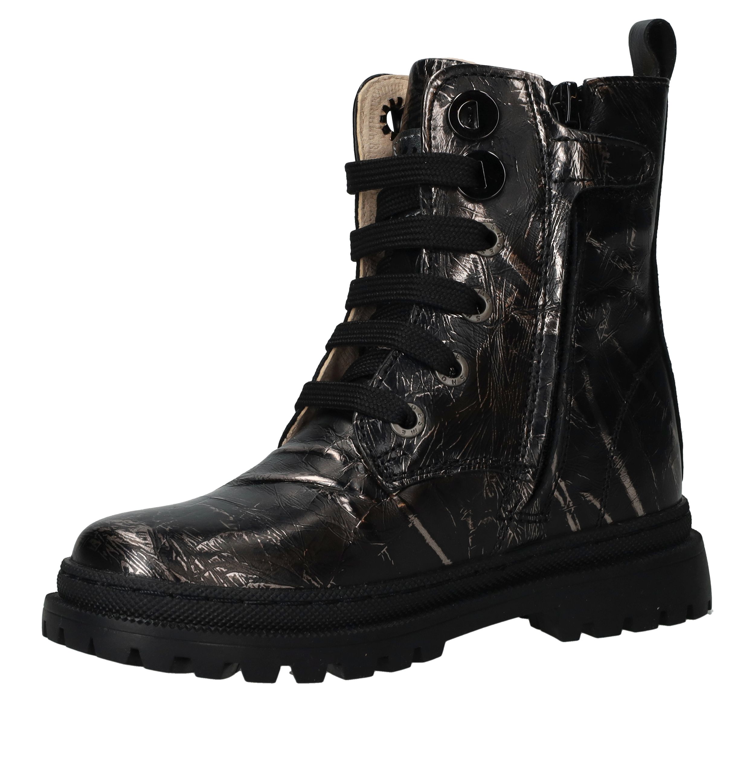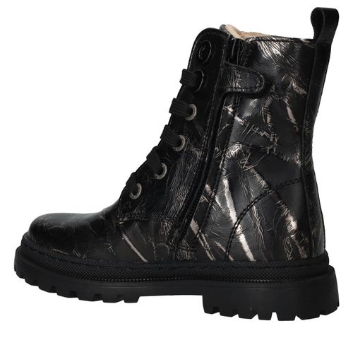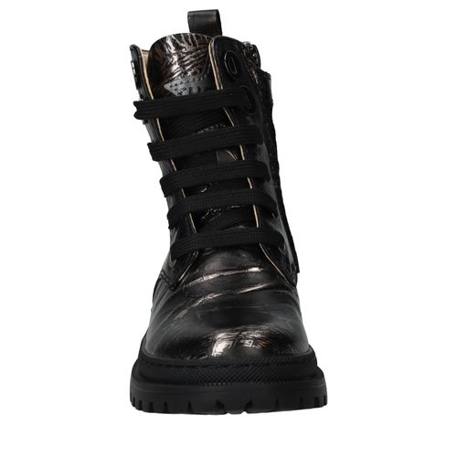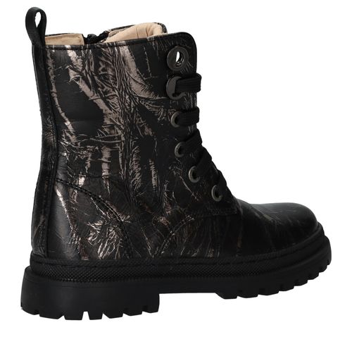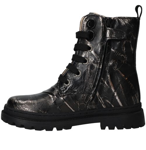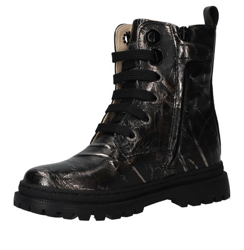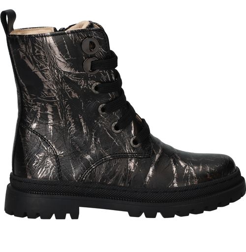 Ben je een stoere meid? Dan is deze Shoesme New Tank veterboot echt iets voor jou! De zwarte leren veterboot heeft een gave metallic print.