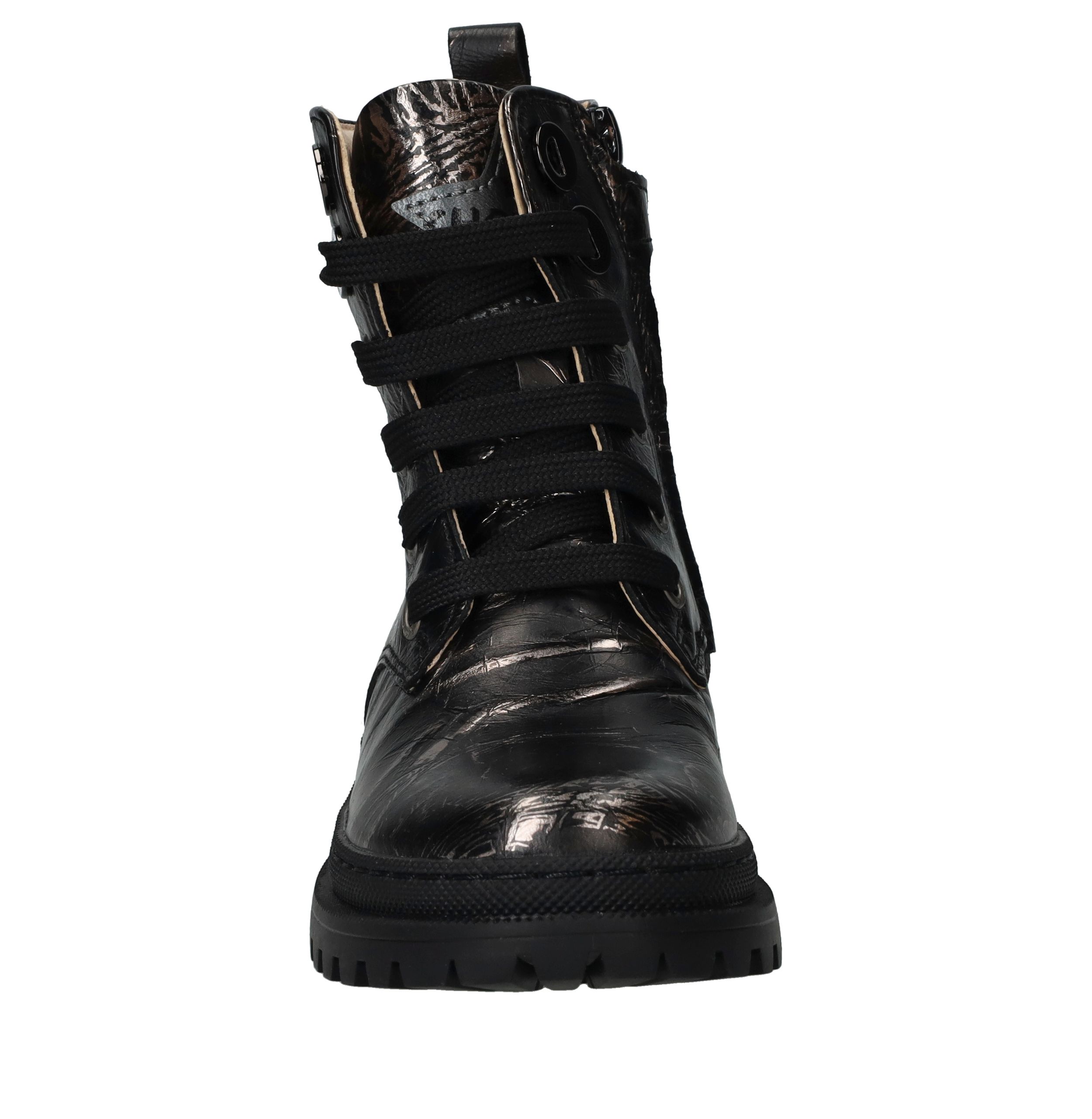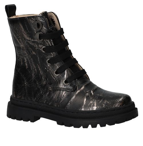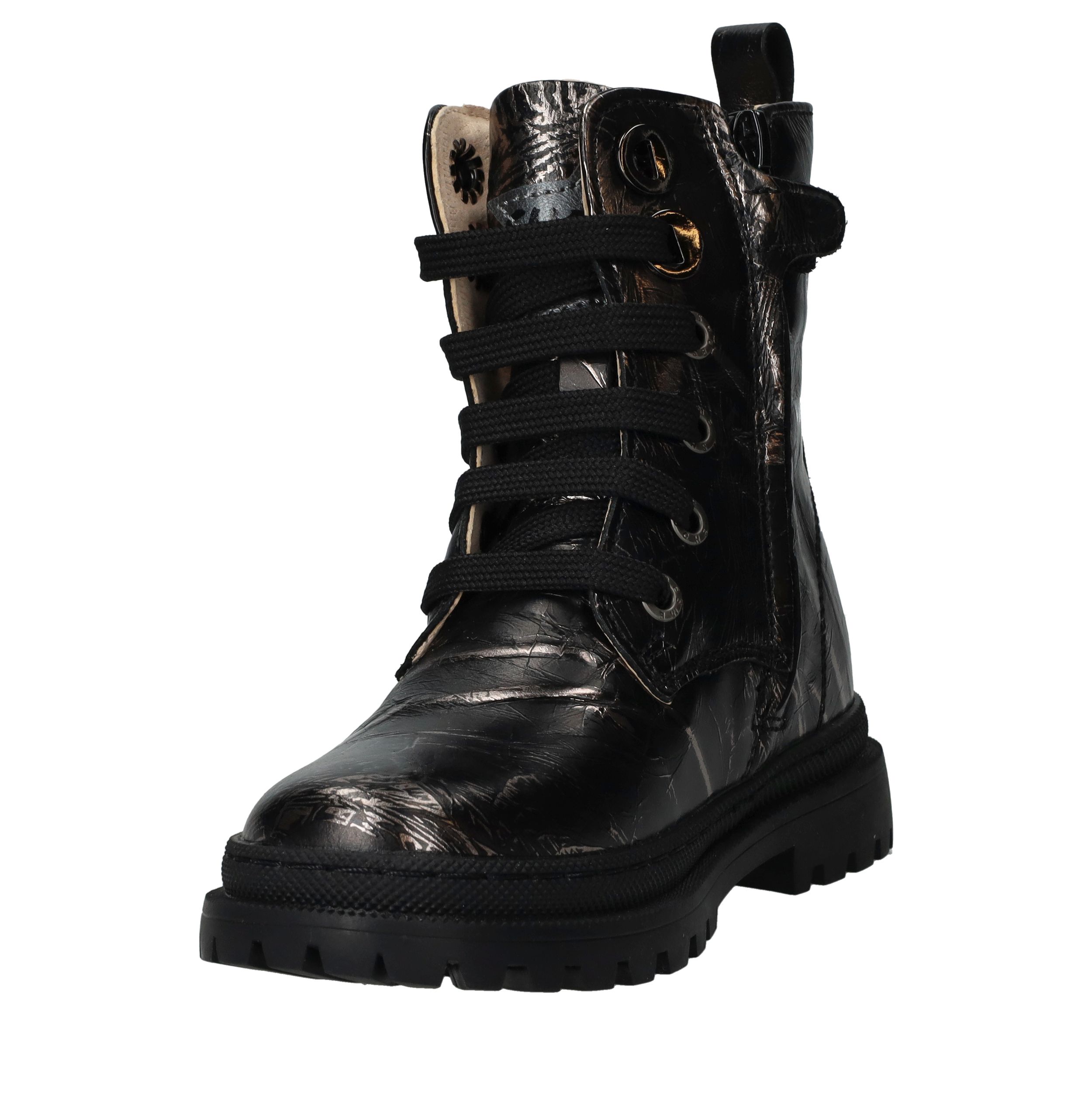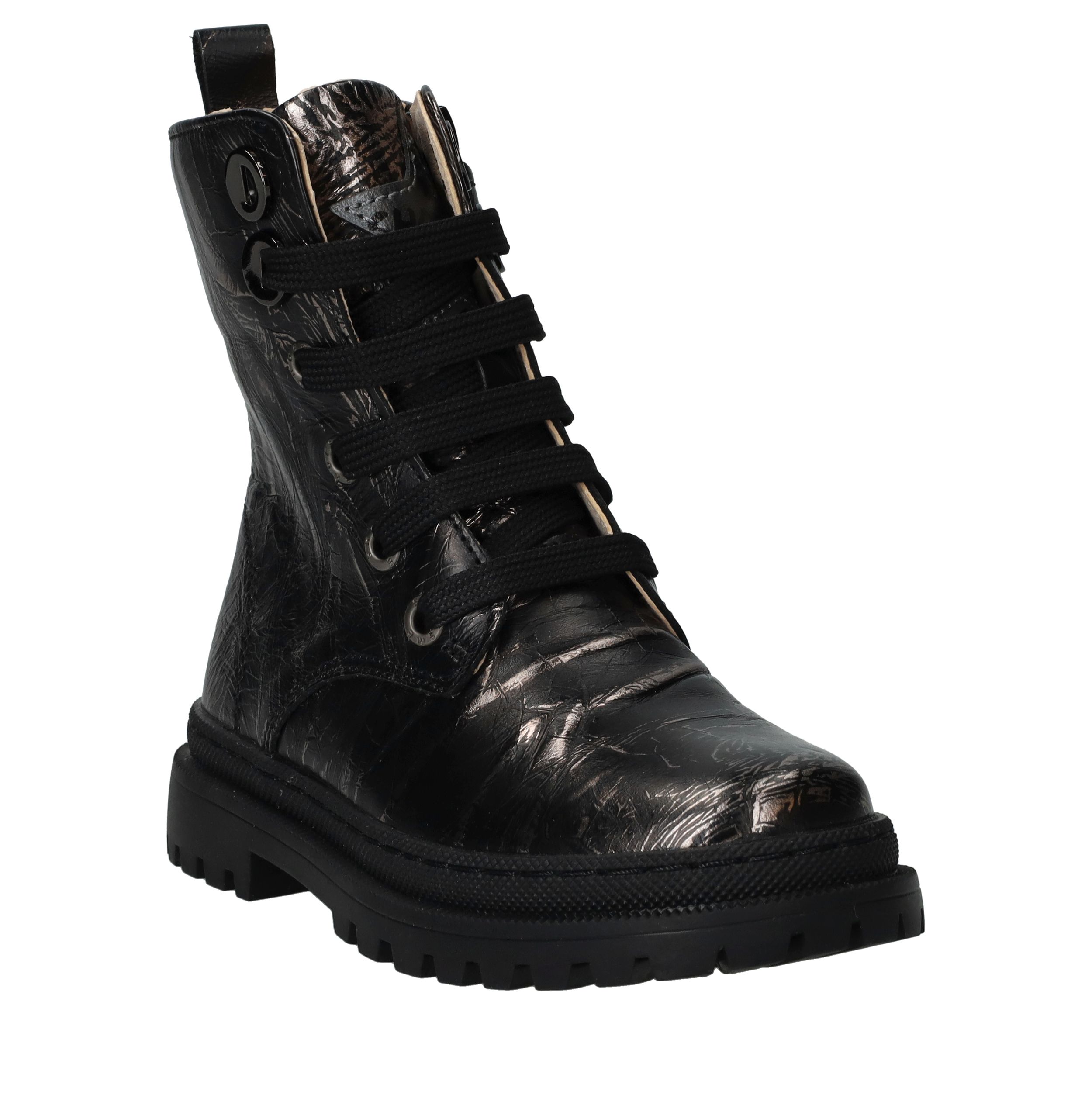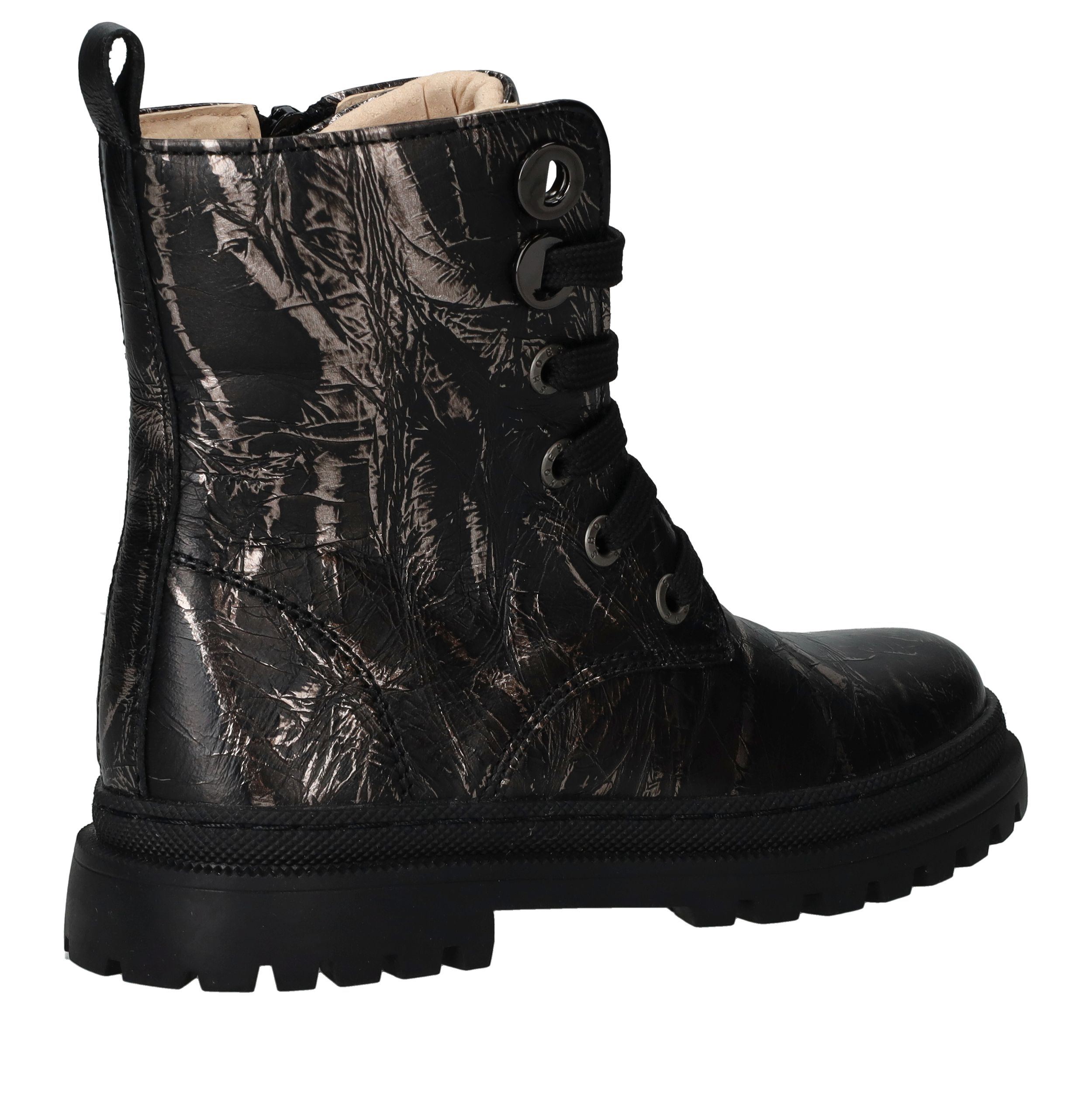 Ben je een stoere meid? Dan is deze Shoesme New Tank veterboot echt iets voor jou! De zwarte leren veterboot heeft een gave metallic print.