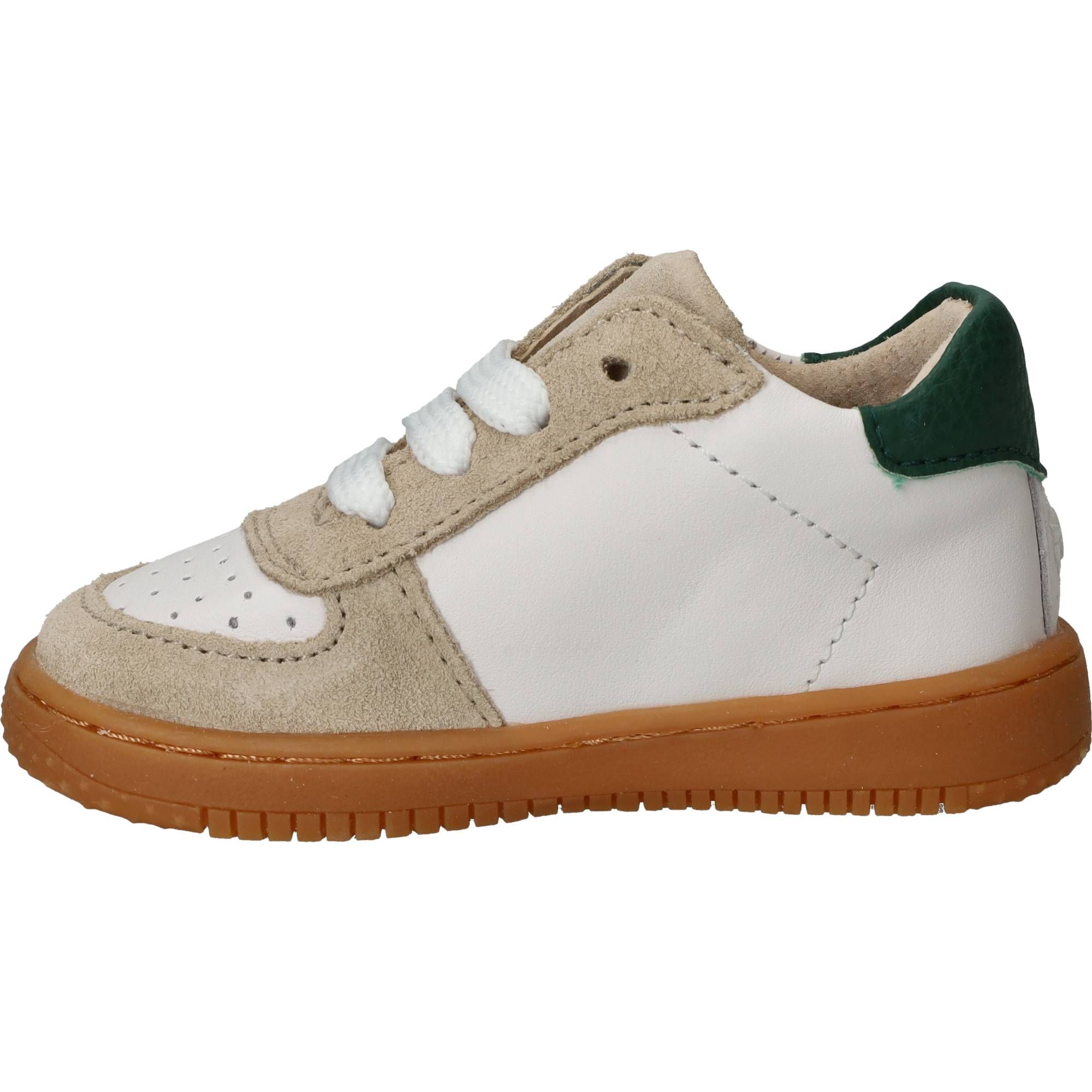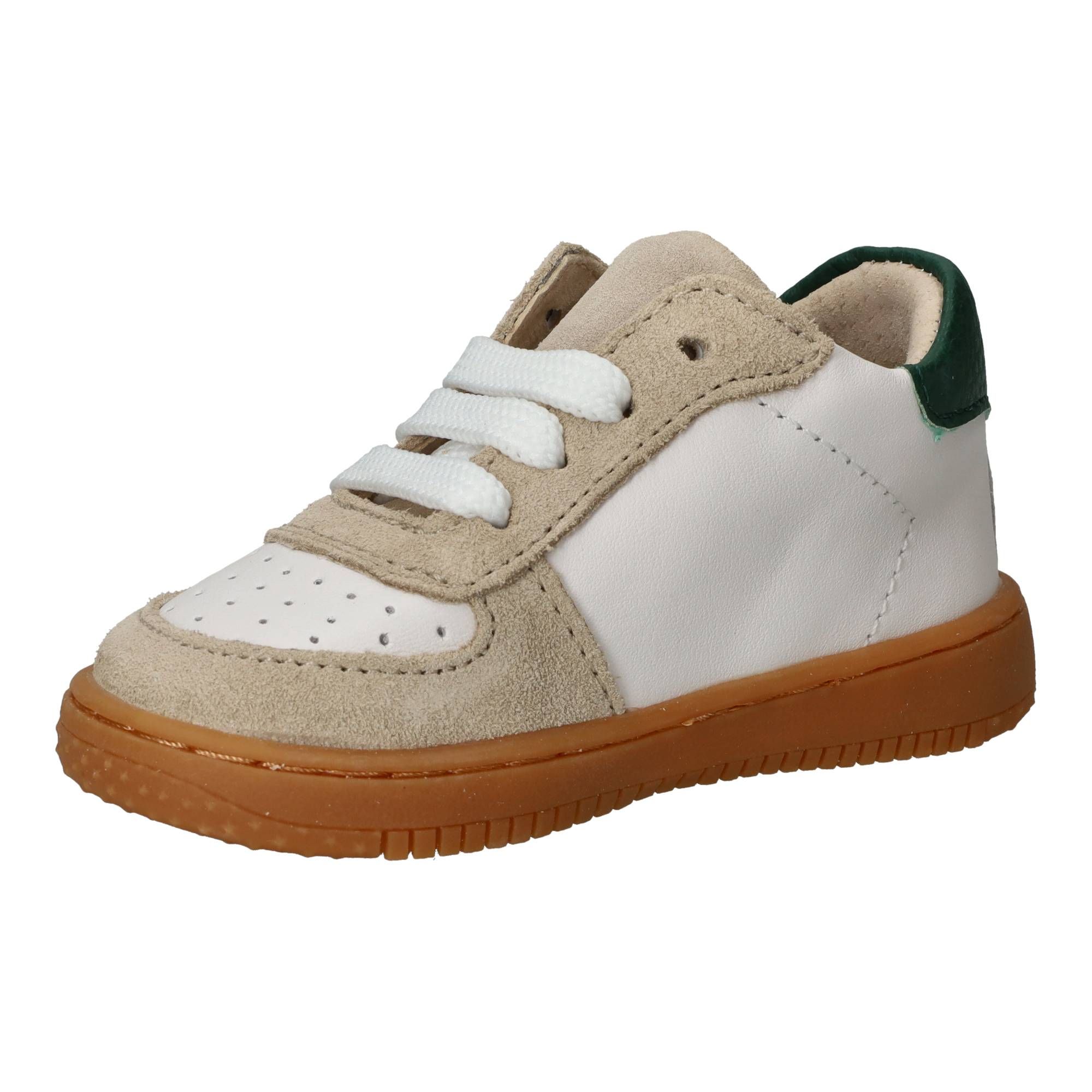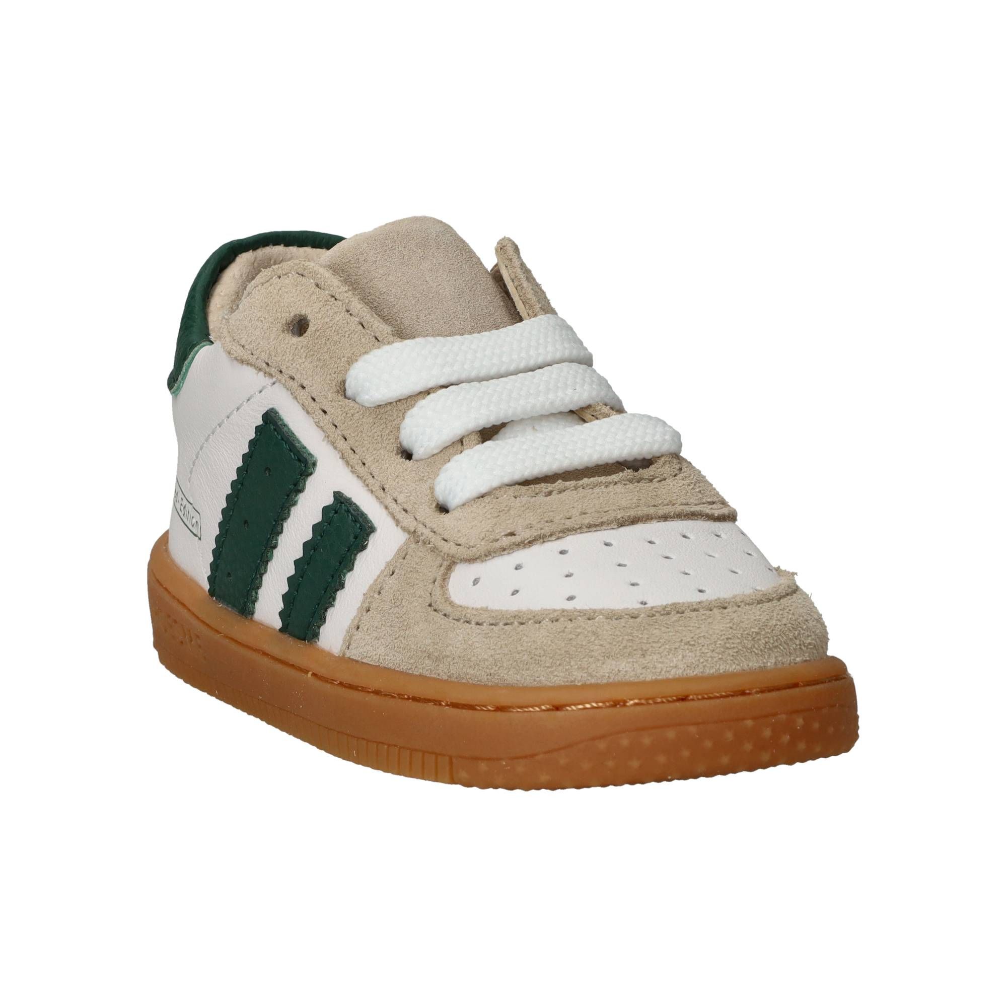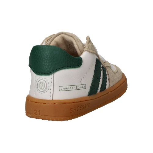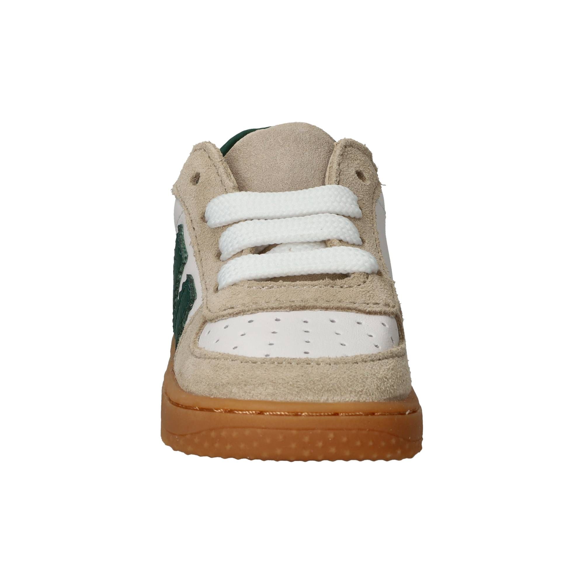 De jongens sneakers van Shoesme in een mooie beige kleur met subtiele groene accenten, zijn perfect voor avontuurlijke voeten. Deze stoere schoenen zijn gemaakt van een combinatie van leer en suède en geven een fijne, actieve uitstraling. Ze bieden een rustige afwikkeling van de voet, wat zorgt voor een prettig loopgevoel en minder vermoeide voeten, zelfs na een hele dag spelen. De stevige zool draagt bij aan een goede stabiliteit, zodat je kind zich vrij en zelfverzekerd kan bewegen.- De veters zorgen ervoor dat de schoen stevig om de voet zit, wat bijdraagt aan een stabiel en vertrouwd loopgevoel.