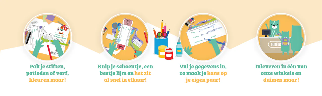 - Lever je geknutselde schoentje in in de winkel, of stuur een foto (inclusief onderkant) naar winacties@durlinger.com;