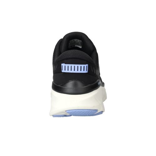 Sportieve Skechers D'Lux Walker 2.0 Active Pace sneaker in het zwart. De damessneaker heeft lila accenten en een opvallende zool.