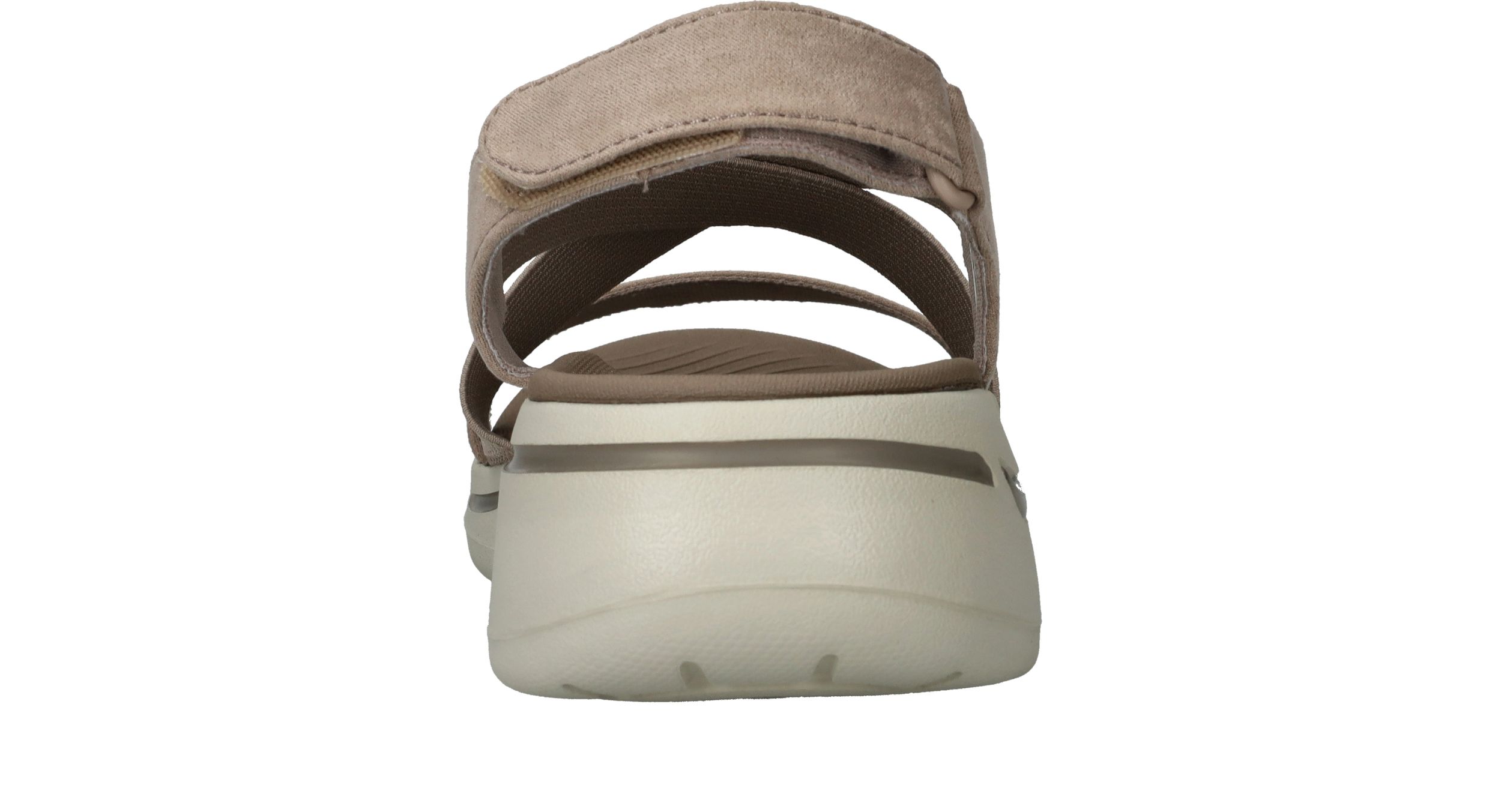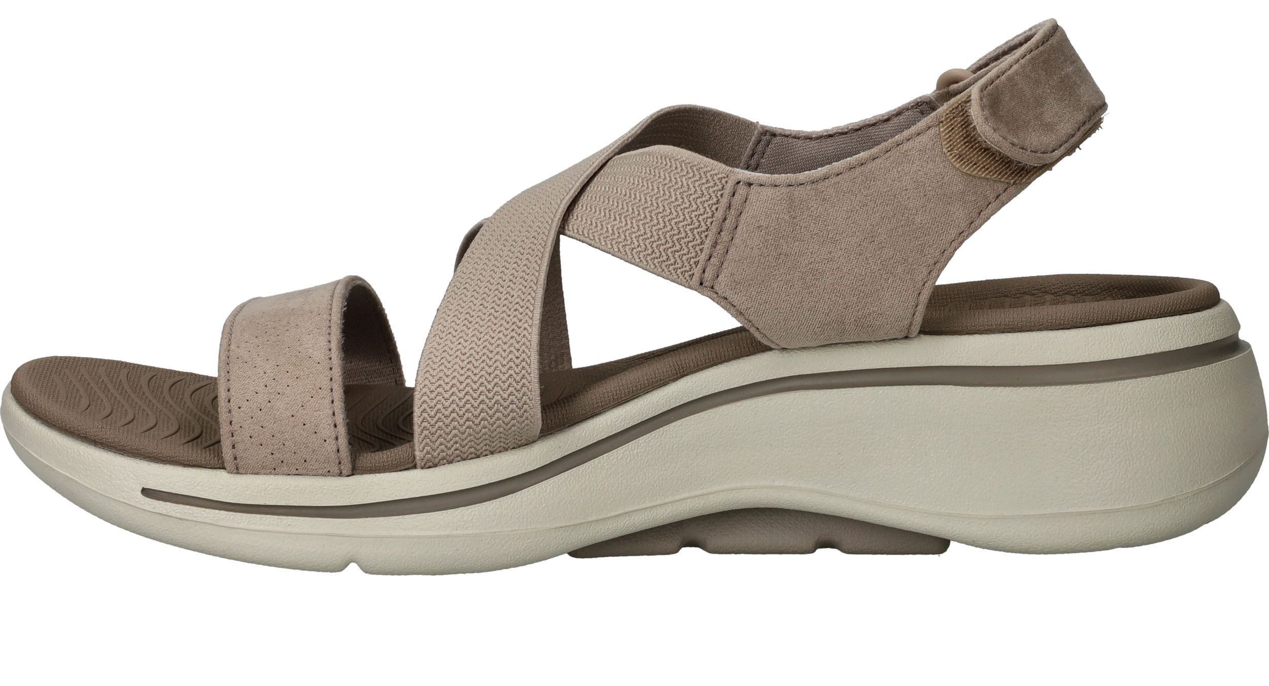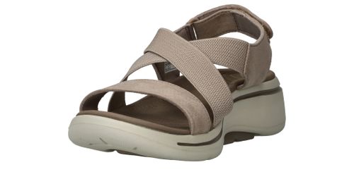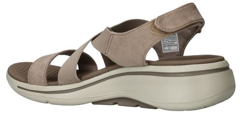 Comfortabele Skechers Go Walk Arch Fit sandaal voor dames. De taupe kleur sandaal heeft bandjes van elastiek die zich vormen naar je voet.