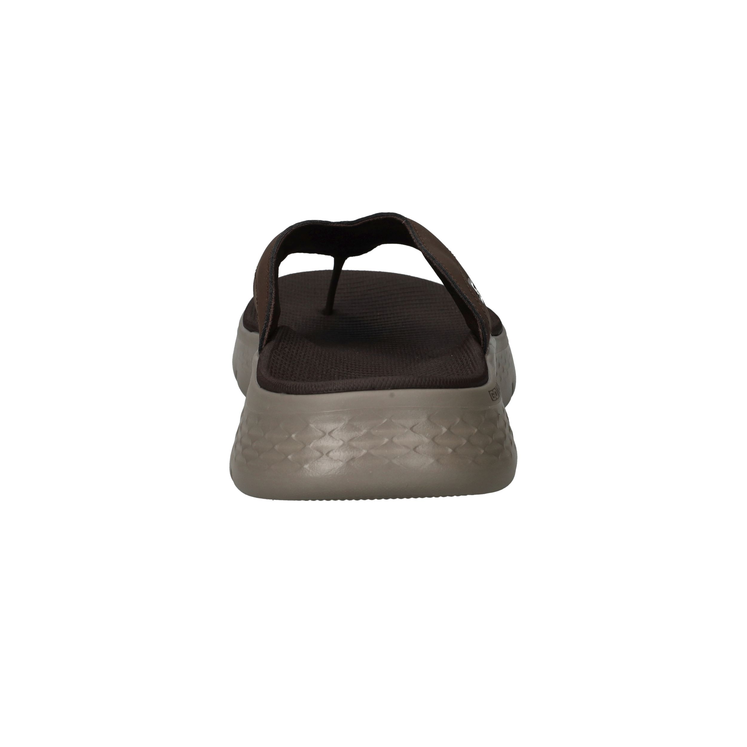 Of je nu op vakantie bent of thuis van de zon geniet, met deze slippers van Skechers ervaar je ultiem comfort. De brede band en het teenstuk zijn gemaakt van soepel synthetisch materiaal dat zich makkelijk vormt naar je voet. De bruine kleur is tijdloos en makkelijk te combineren. Dankzij het lichtgewicht ontwerp en de Goga Mat-binnenzool lopen deze heren slippers heerlijk de hele dag door.