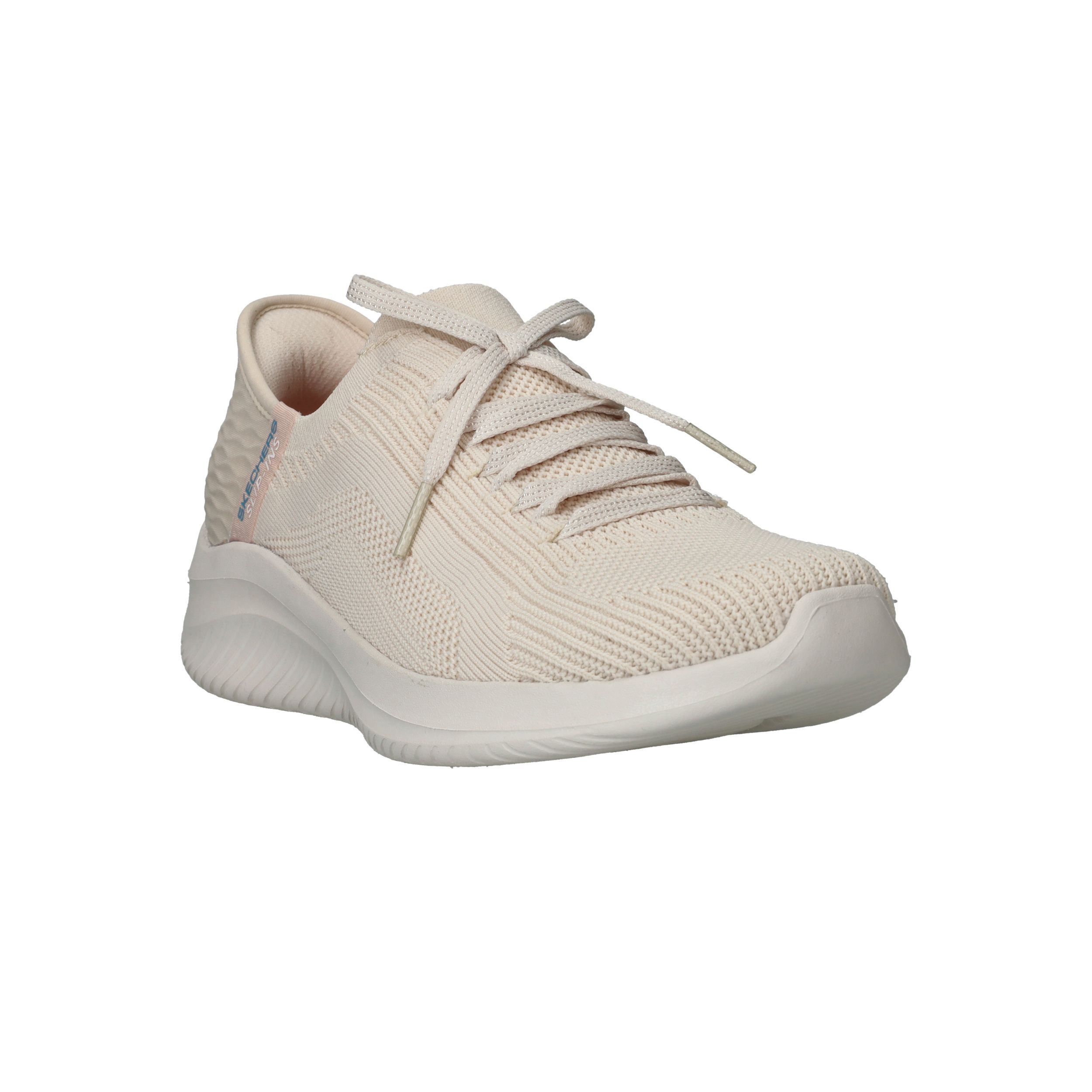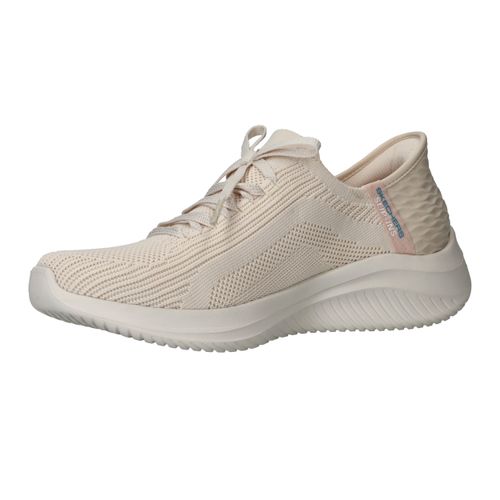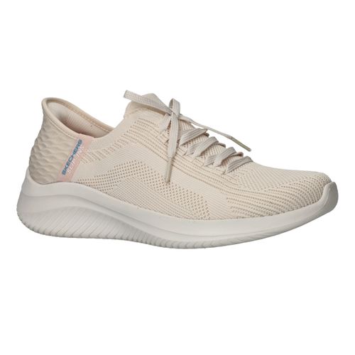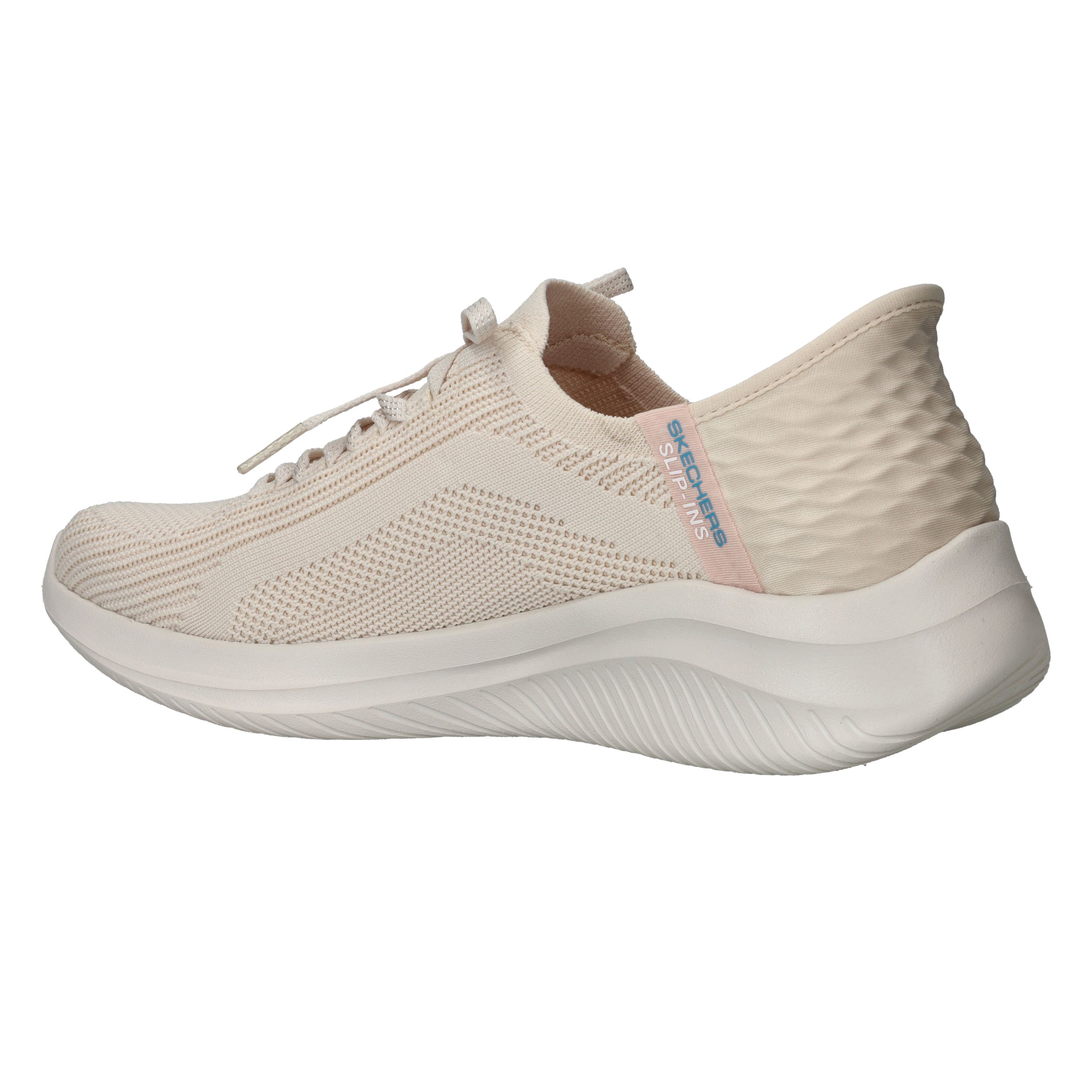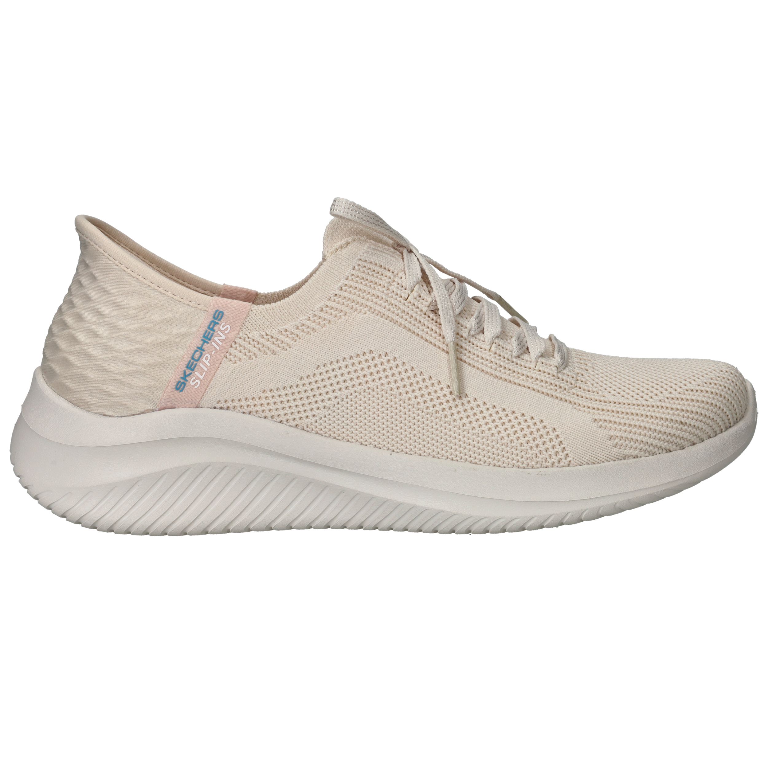 Sportieve Skechers Slip-ins Ultra Flex 3.0 Brilliant Path instapper voor dames. De roomwitte instapper heeft sierveters.