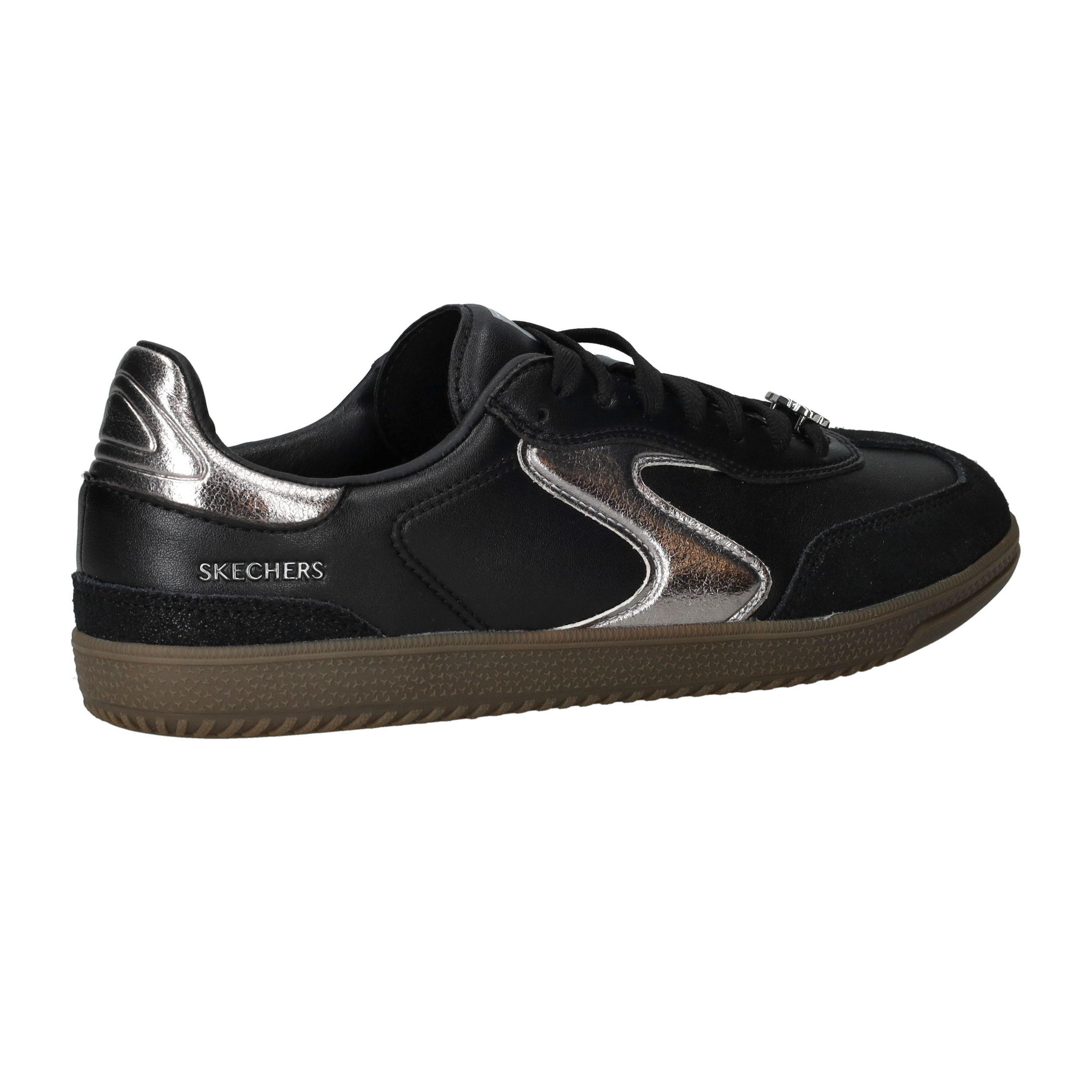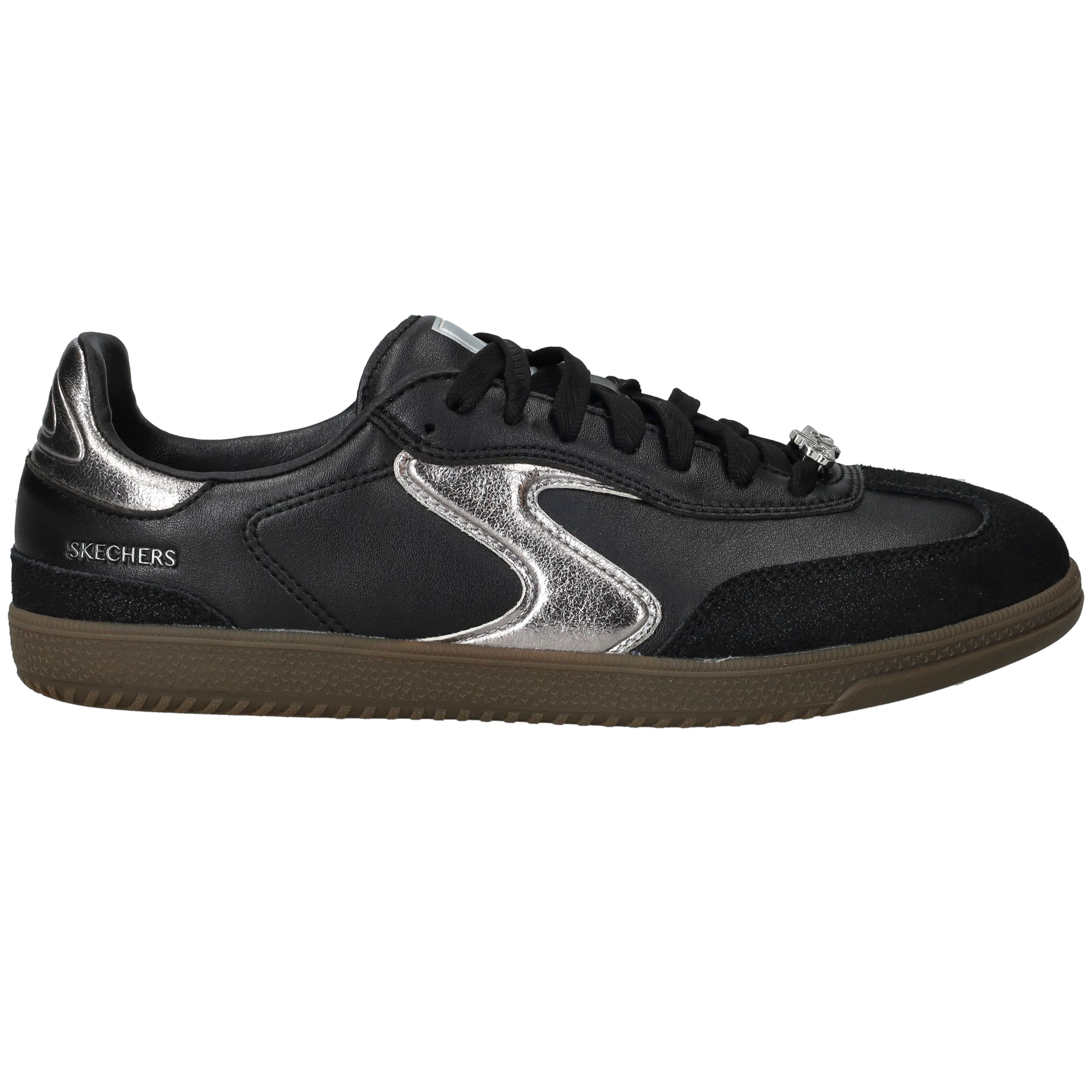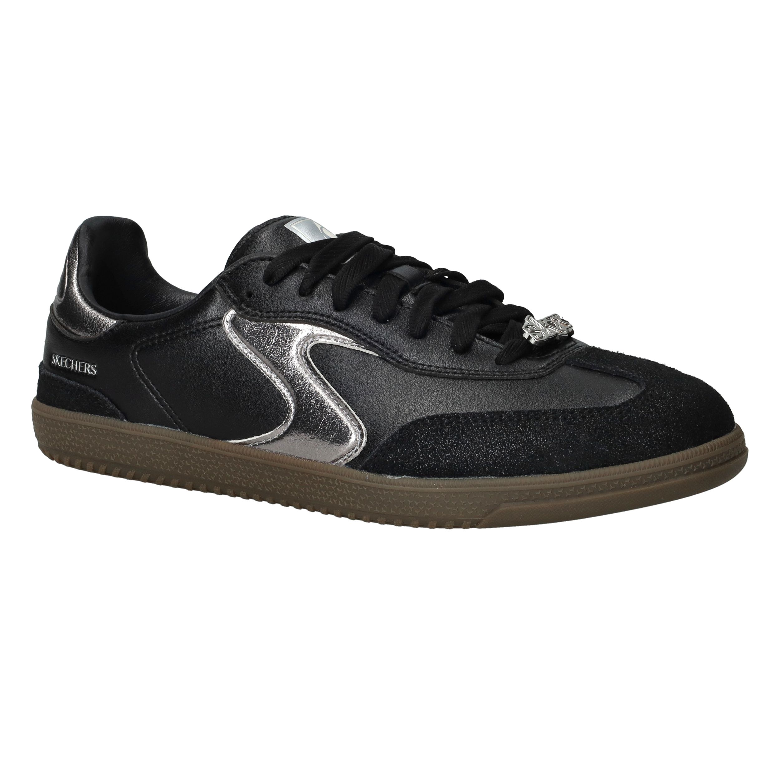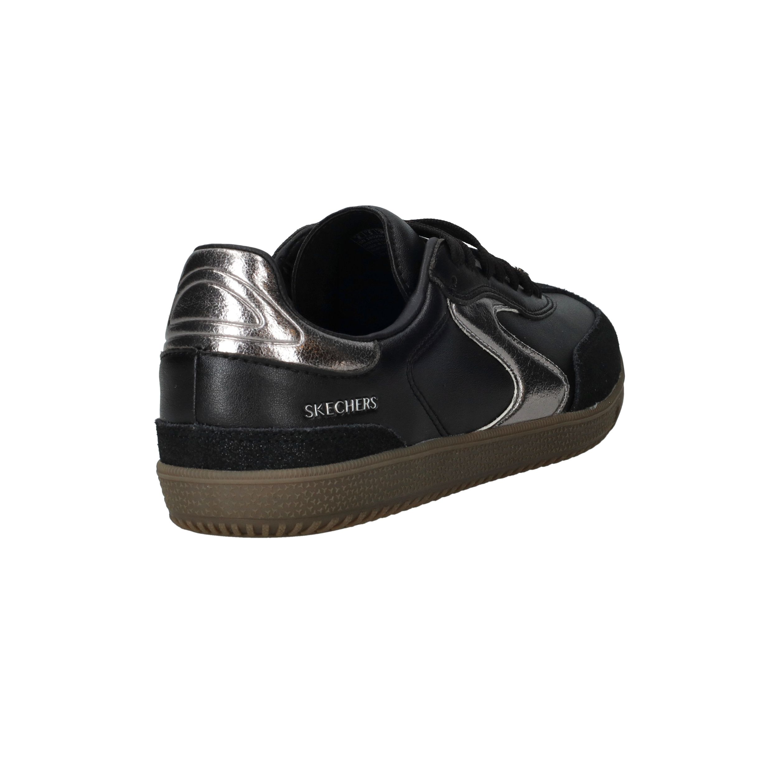 Met de Skechers Hotshot Cool Glow sneakers kies je als dame voor een sportieve look met een subtiele glans. Deze zwarte sneakers combineren soepel kunstleer met echte leerdetails en hebben een zachte binnenvoering van textiel en synthetisch materiaal. De zool biedt fijne grip, terwijl de pasvorm met voetbreedte G ervoor zorgt dat je er moeiteloos de hele dag op loopt – stijlvol én comfortabel dus.