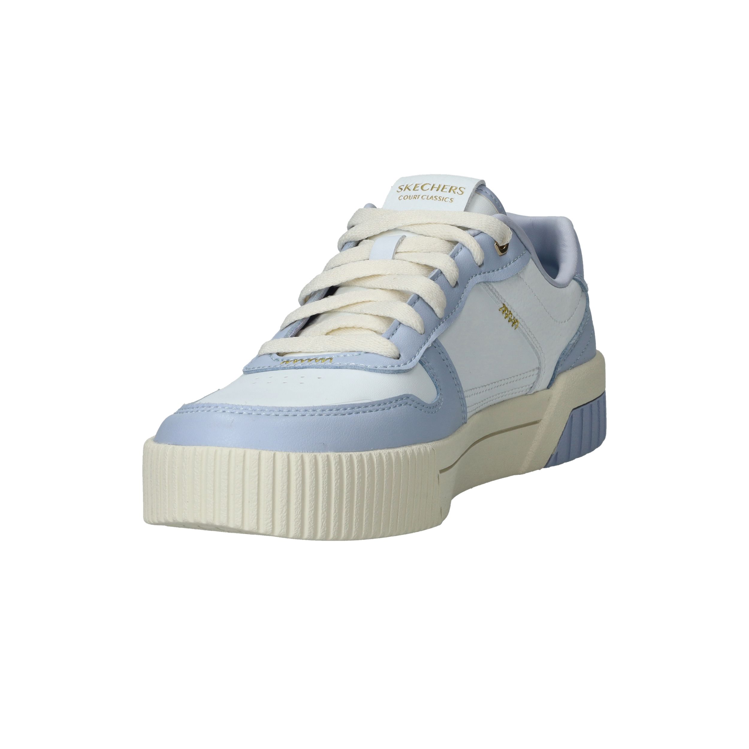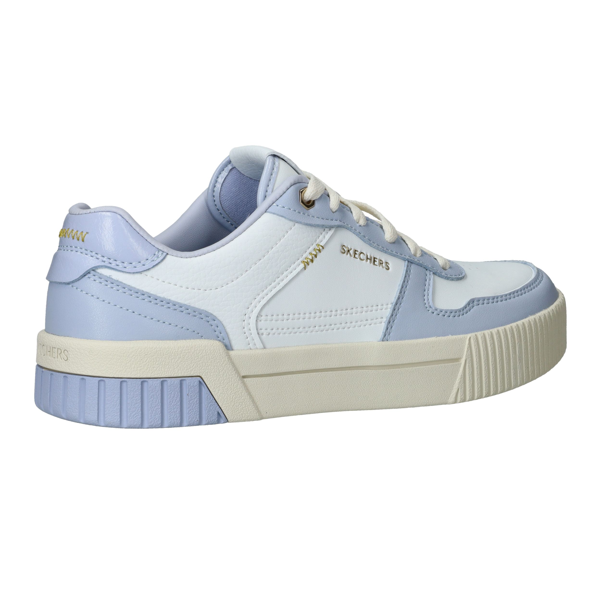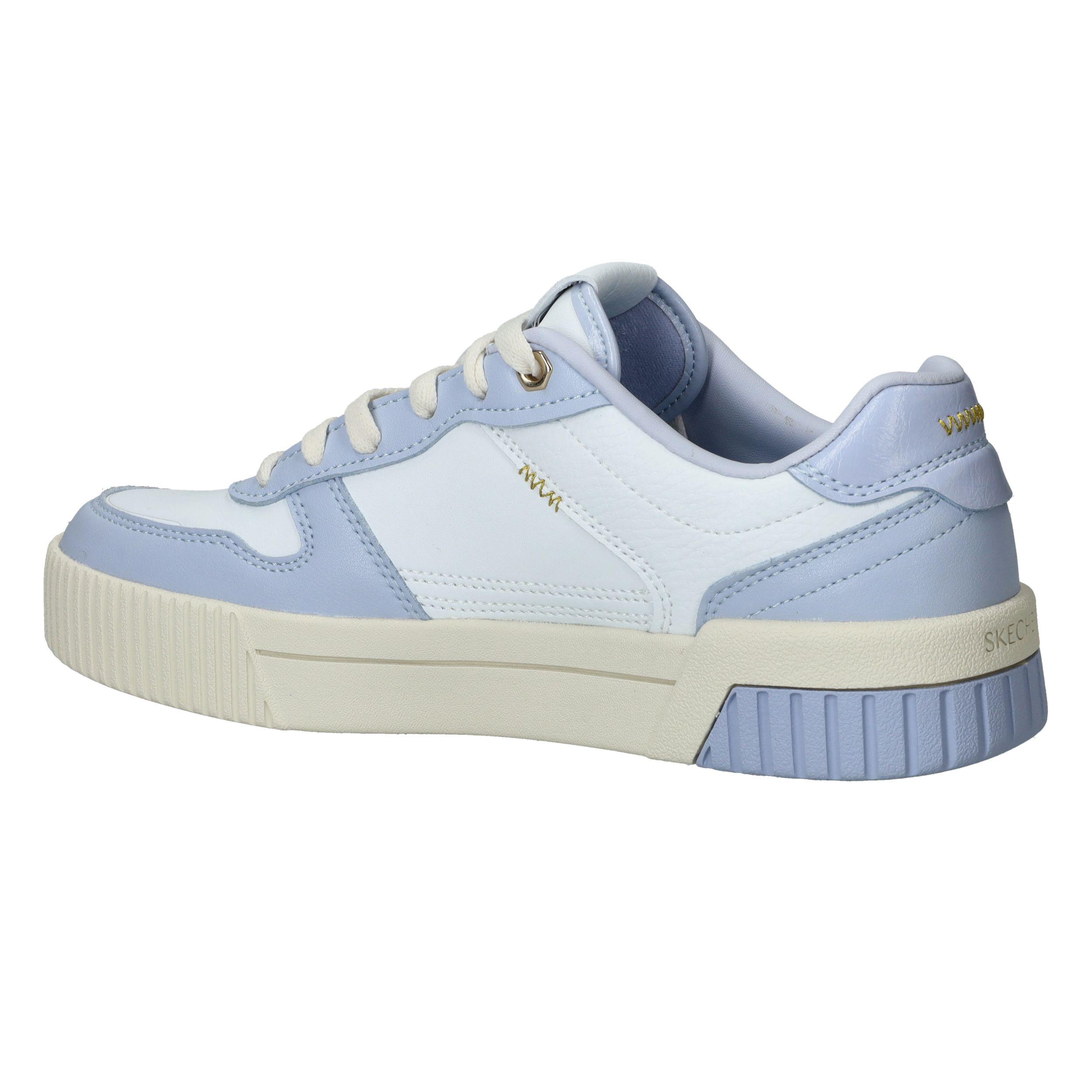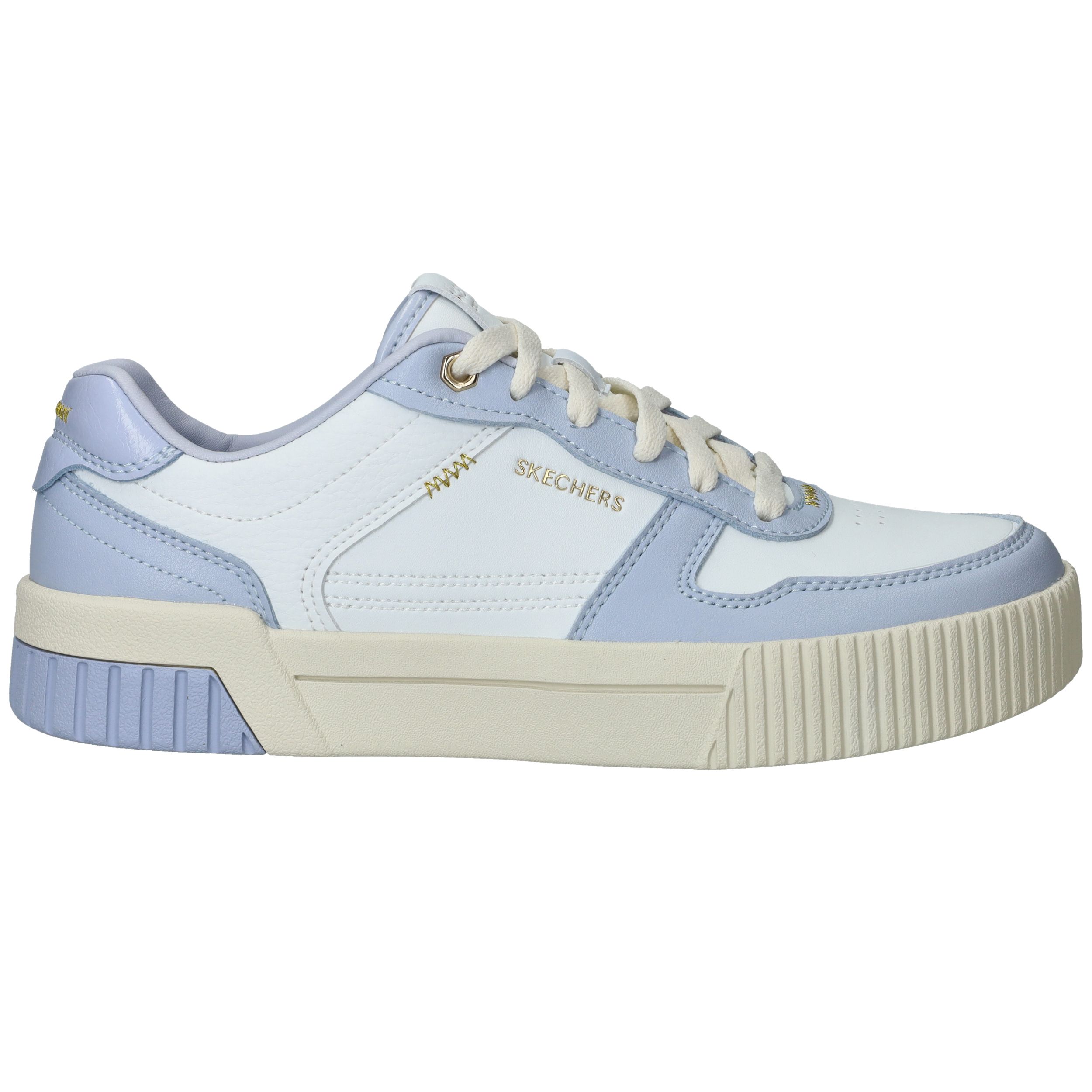 Toffe Skechers Jade Best In Class sneaker voor dames in het wit en lila. De gouden accenten maken de sneaker helemaal af.
