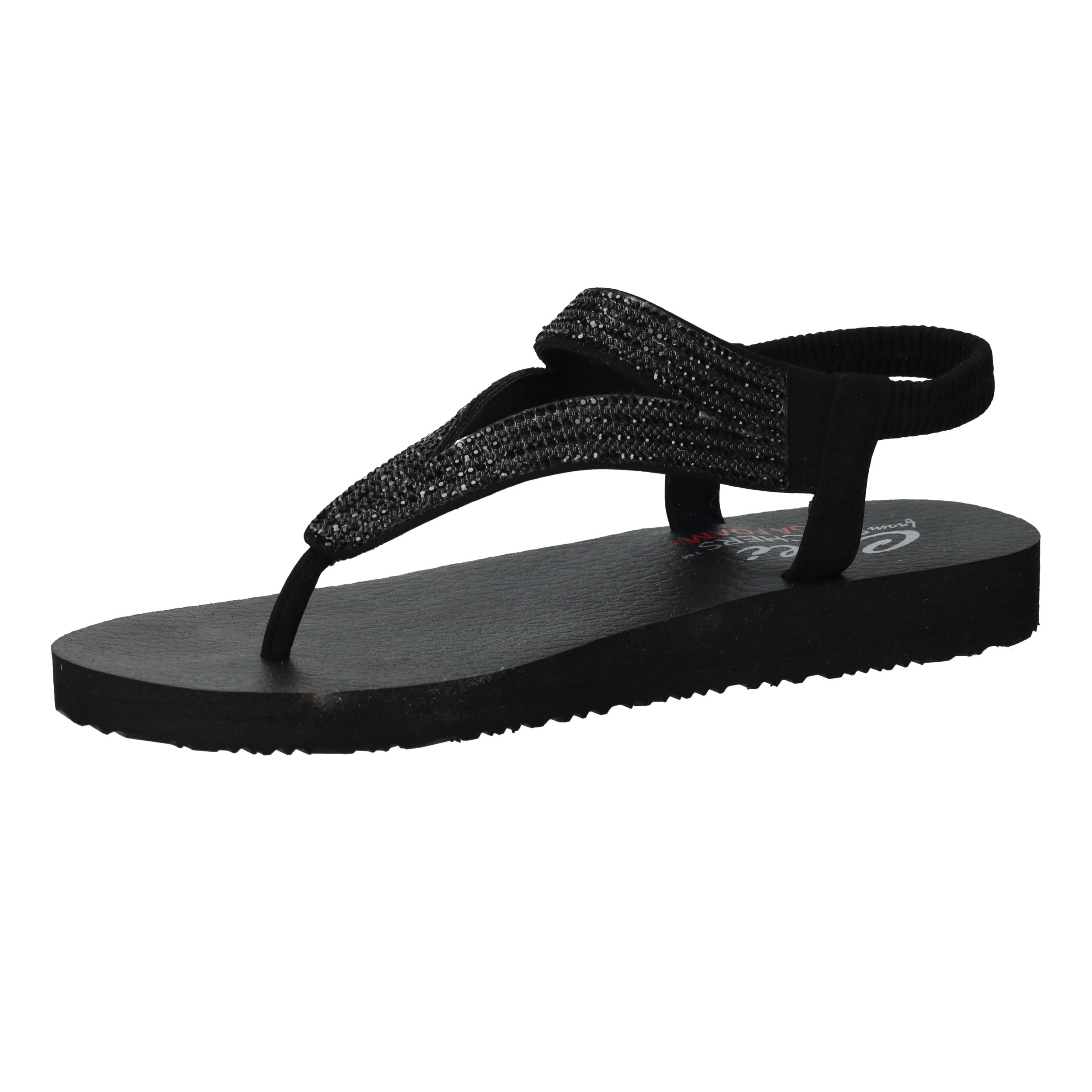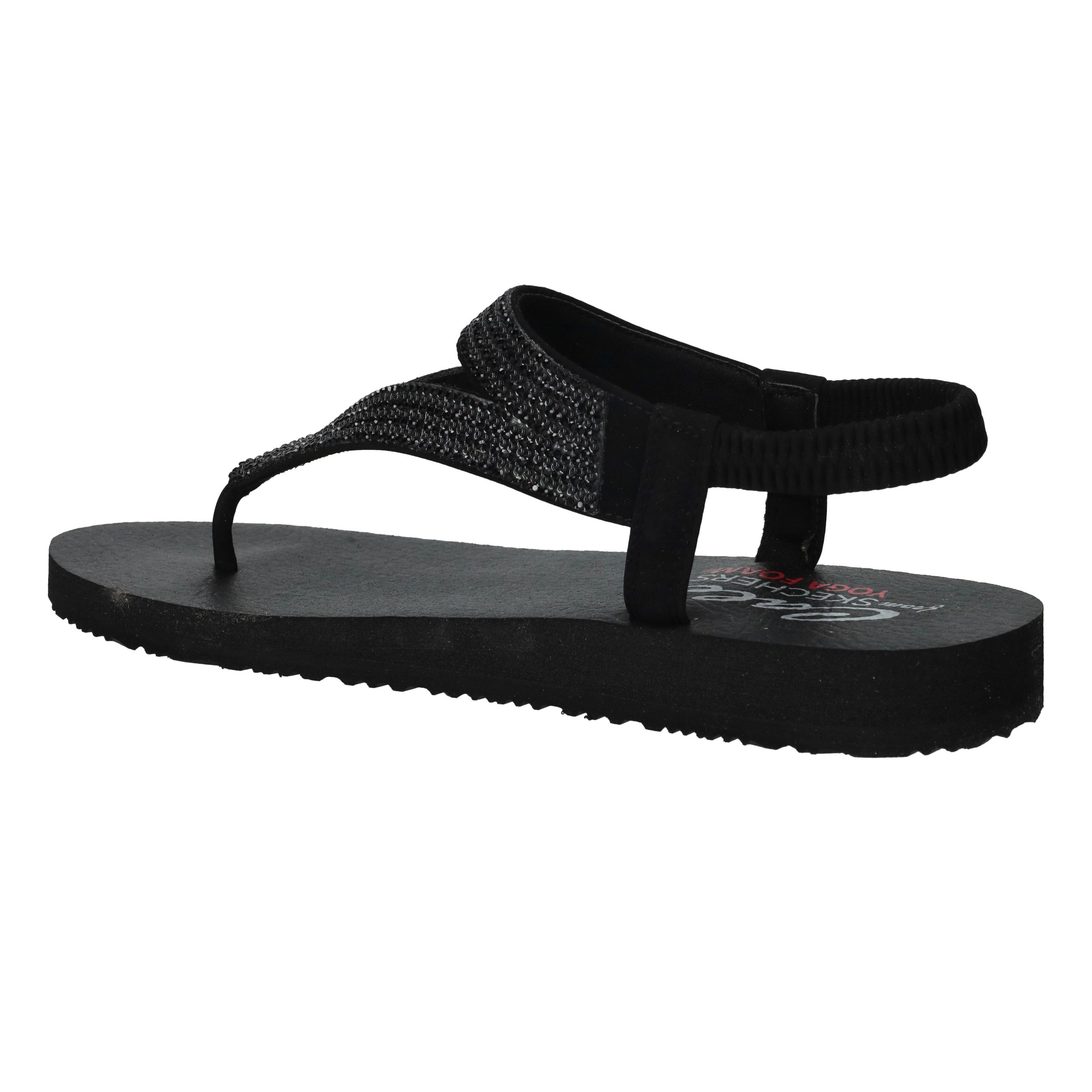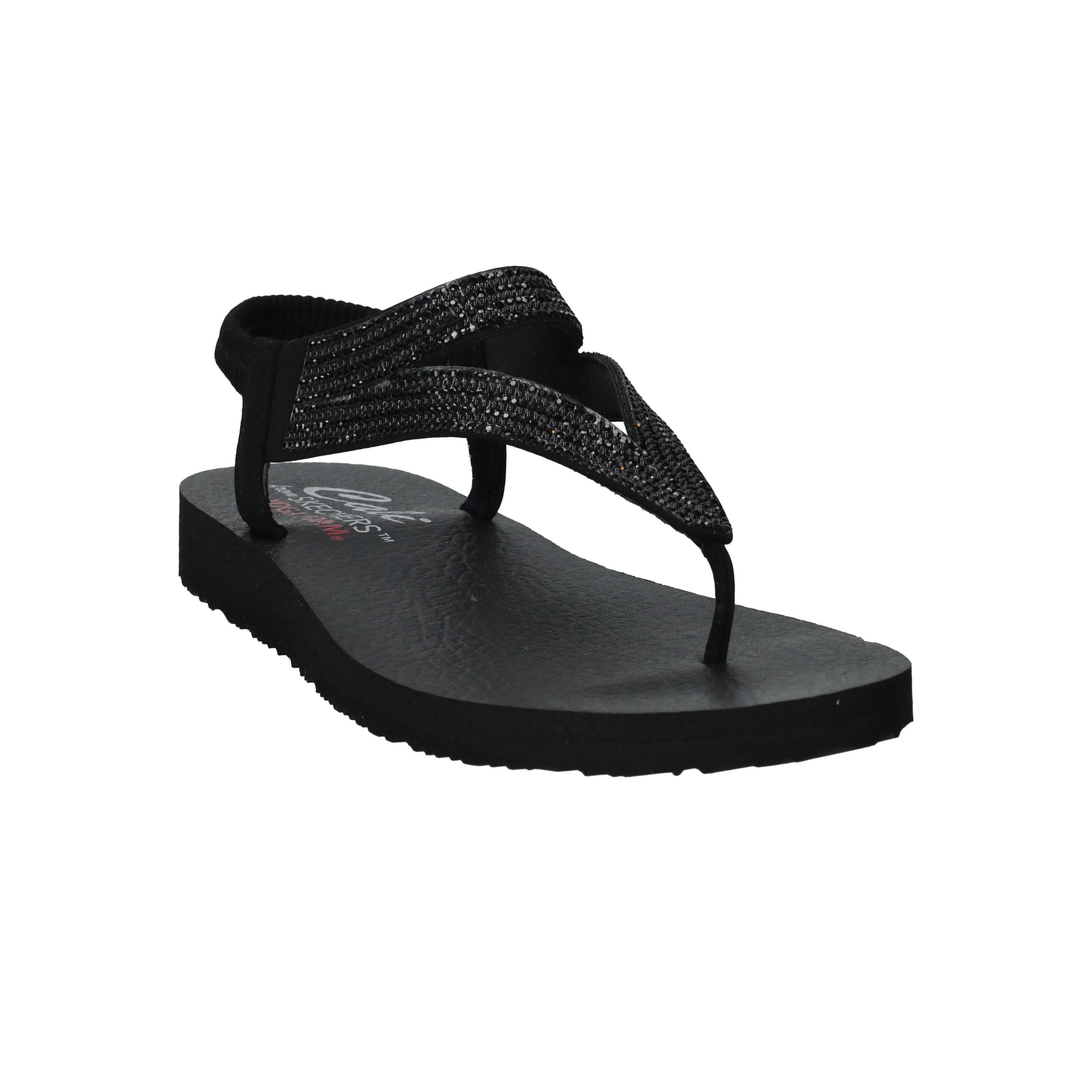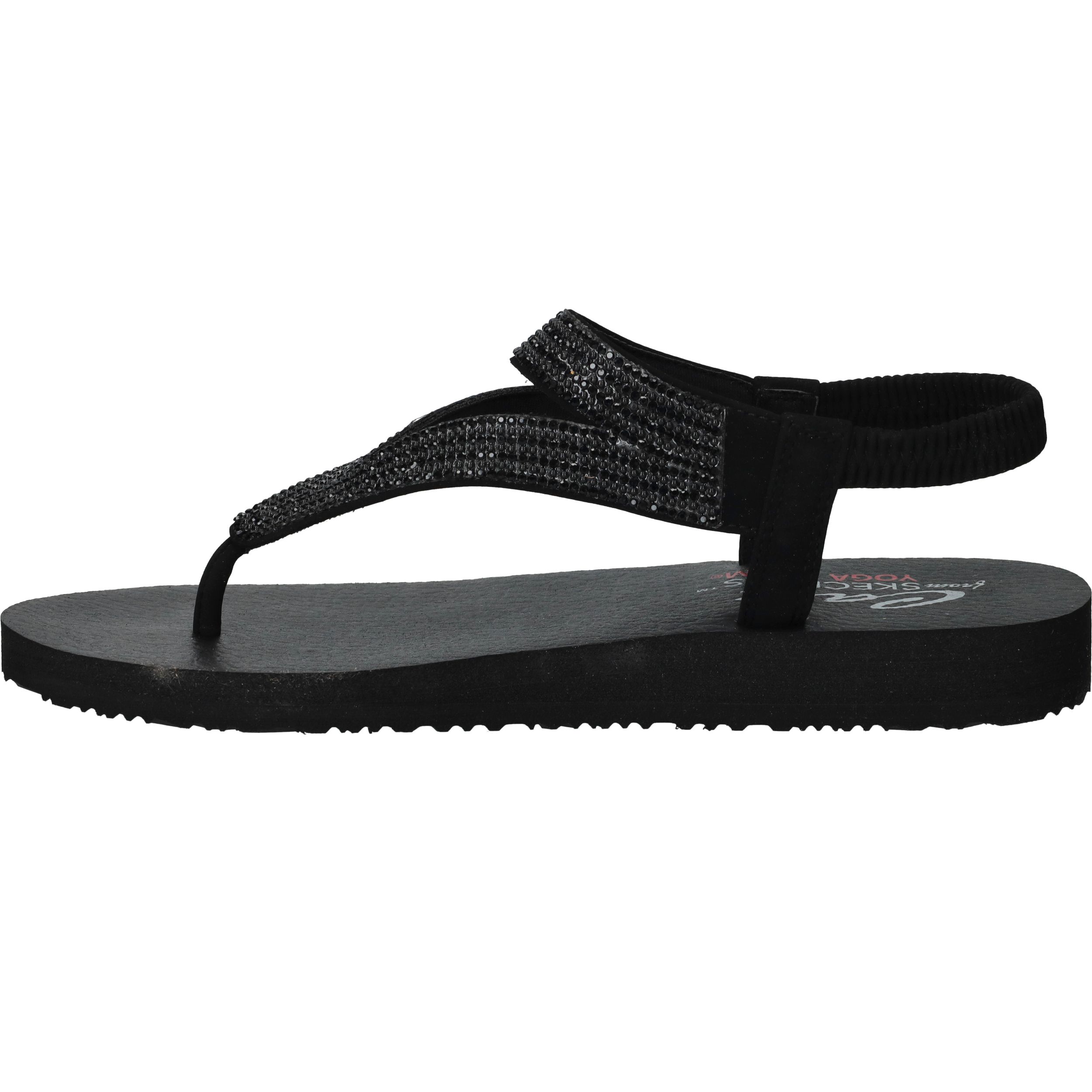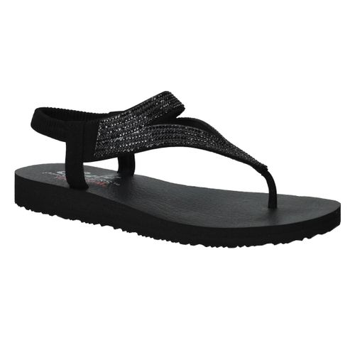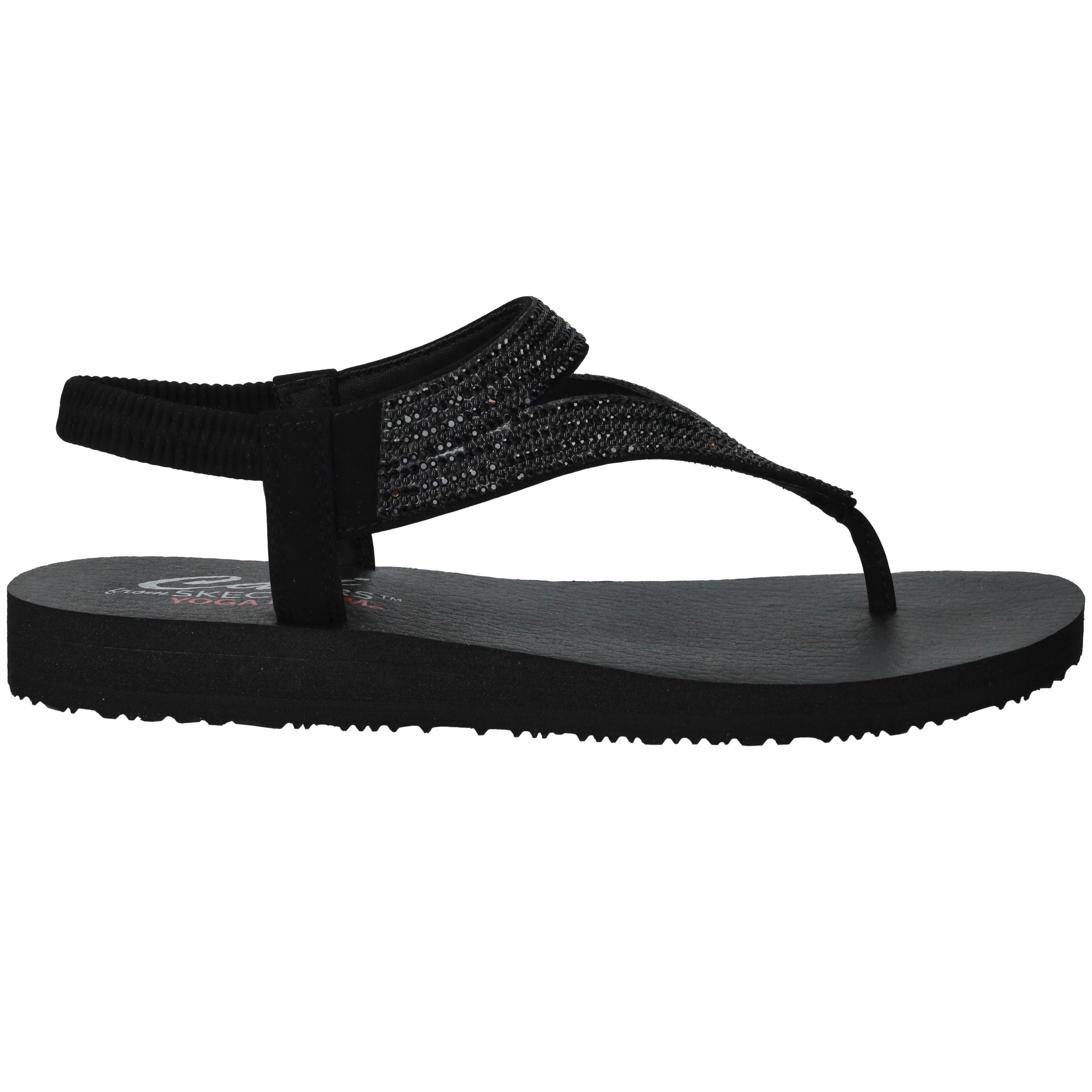 Geniet van elke stap in deze stijlvolle sandalen van Skechers. De Skechers dames Meditation is uitgevoerd in zwart met subtiele glitters voor een vrouwelijke touch. Dankzij de Yoga Foam binnenzool loop je op wolkjes, terwijl de elastische band zorgt voor extra comfort. Deze zomerse must-have is ideaal voor dames met voetbreedte G die houden van gemak én glamour.