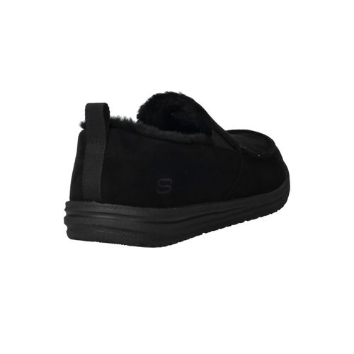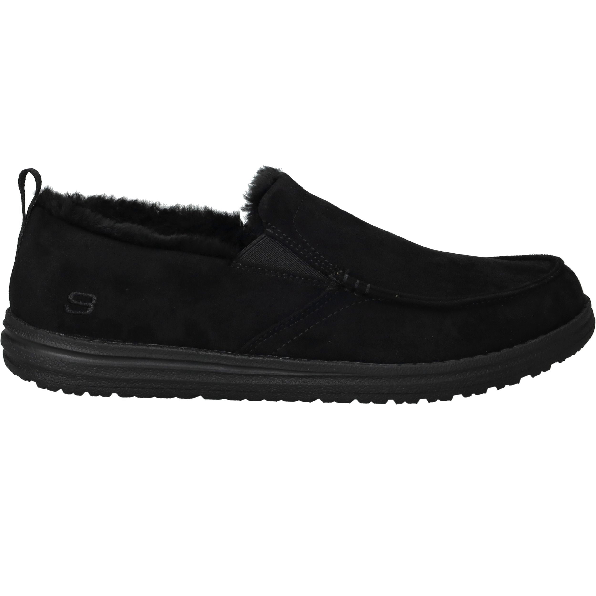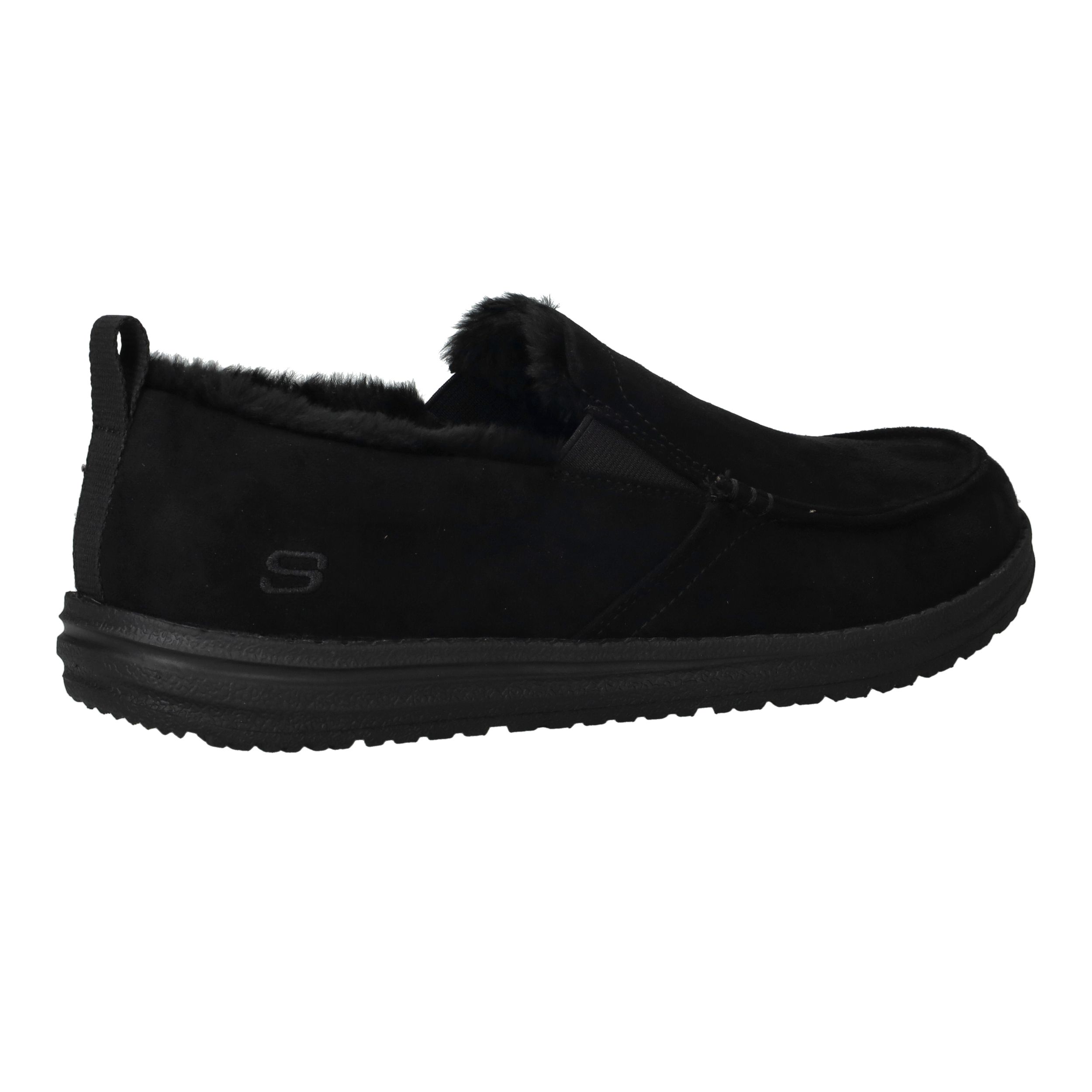 De Skechers Relaxed Fit Melson Willmore is de ideale keuze voor ultiem comfort binnenshuis en casual gebruik buitenshuis. Deze zwarte heren instappers zijn gemaakt van zacht textiel en hebben een warme voering. Dankzij de Relaxed Fit pasvorm met G-voetbreedte geniet je van extra ruimte en draaggemak. Perfect voor heren die houden van comfort en gemak in één.