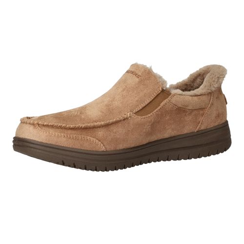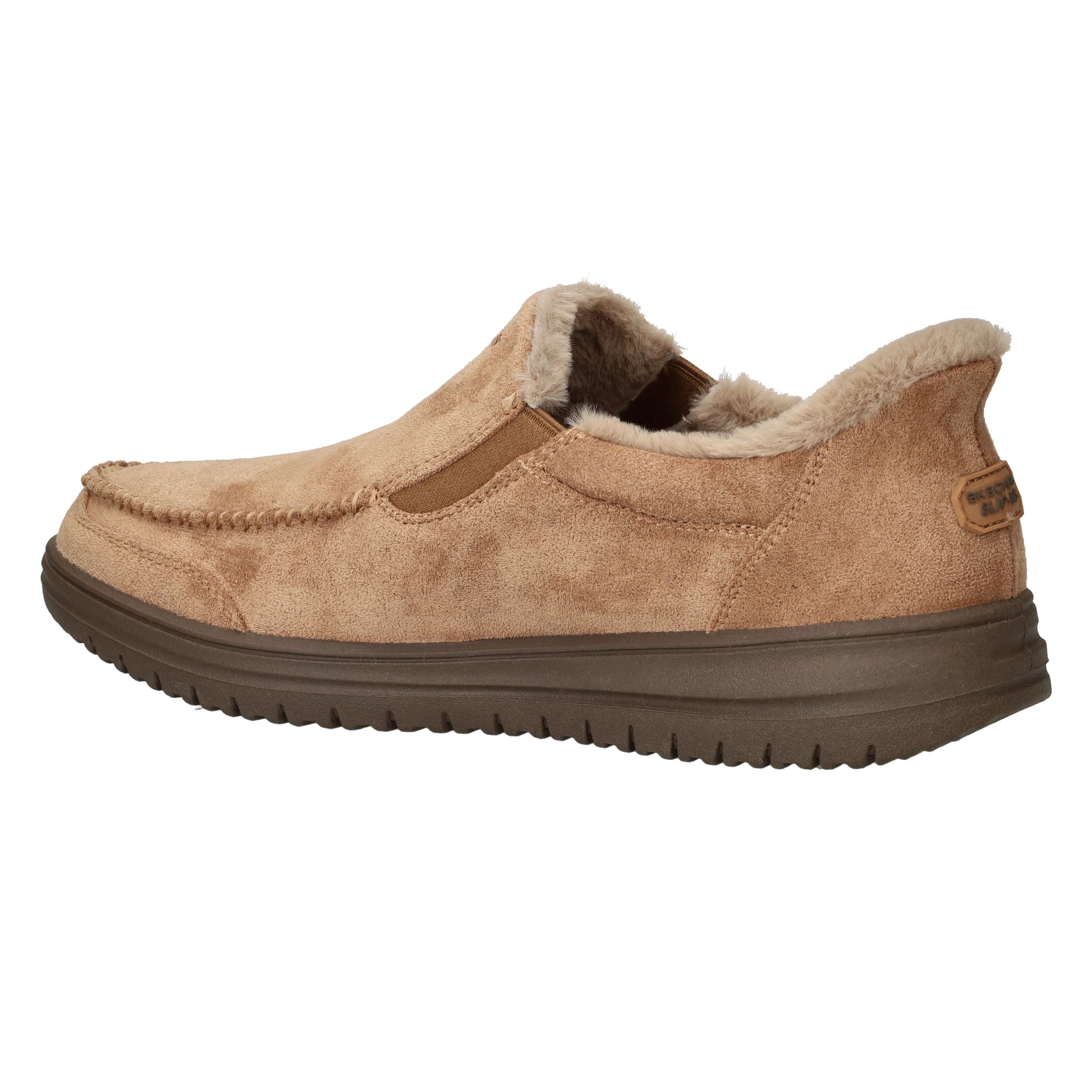 De Skechers Relaxed Fit Slip-Ins Murette Scofield biedt ultiem gemak en comfort in één schoen. Deze bruine heren instappers zijn uitgevoerd in zacht textiel met een warme voering, ideaal voor koude dagen. Dankzij de Slip-Ins technologie stap je eenvoudig in zonder handen te gebruiken, terwijl de Relaxed Fit pasvorm met G-voetbreedte extra ruimte en comfort biedt. Perfect als casual schoen voor binnen en buiten.
