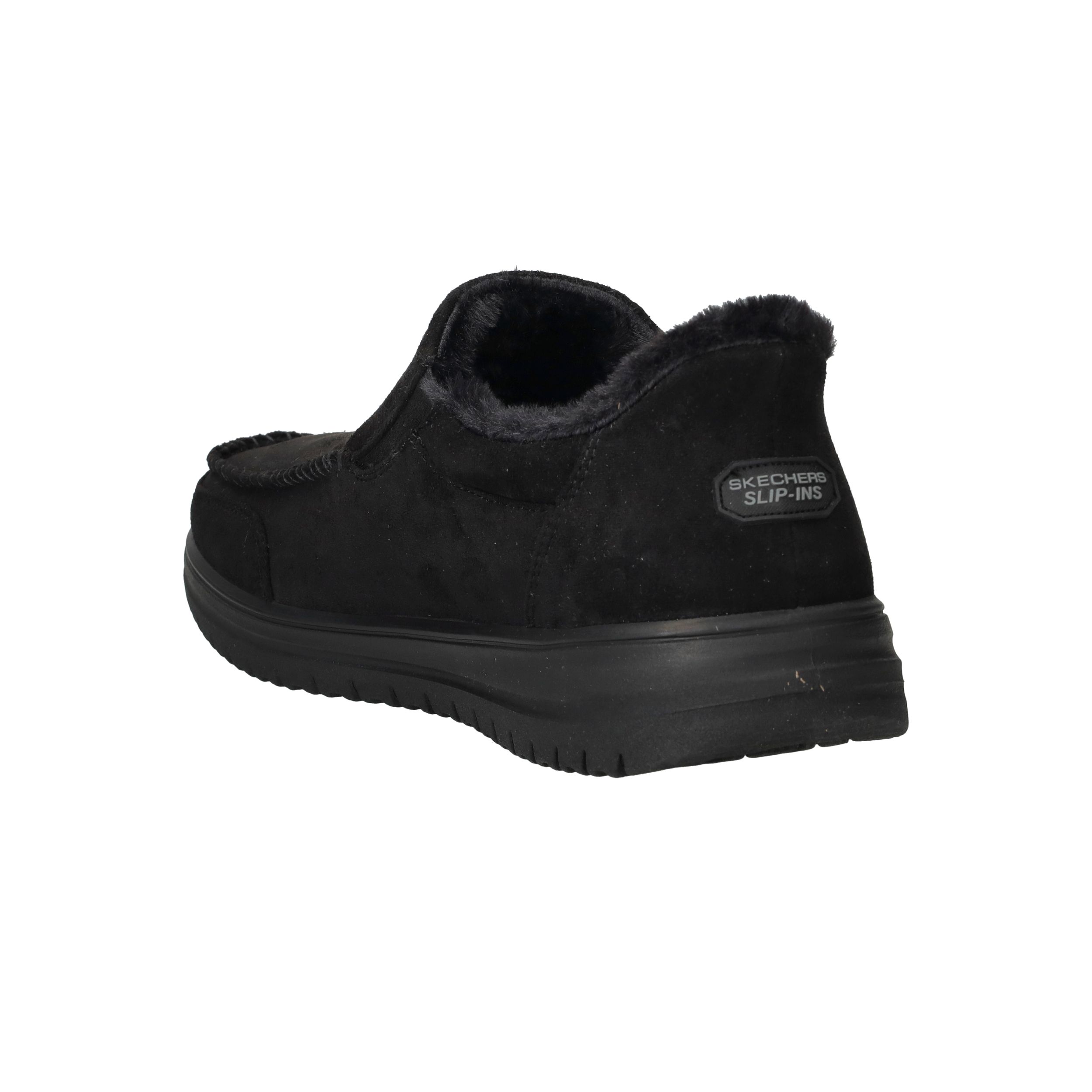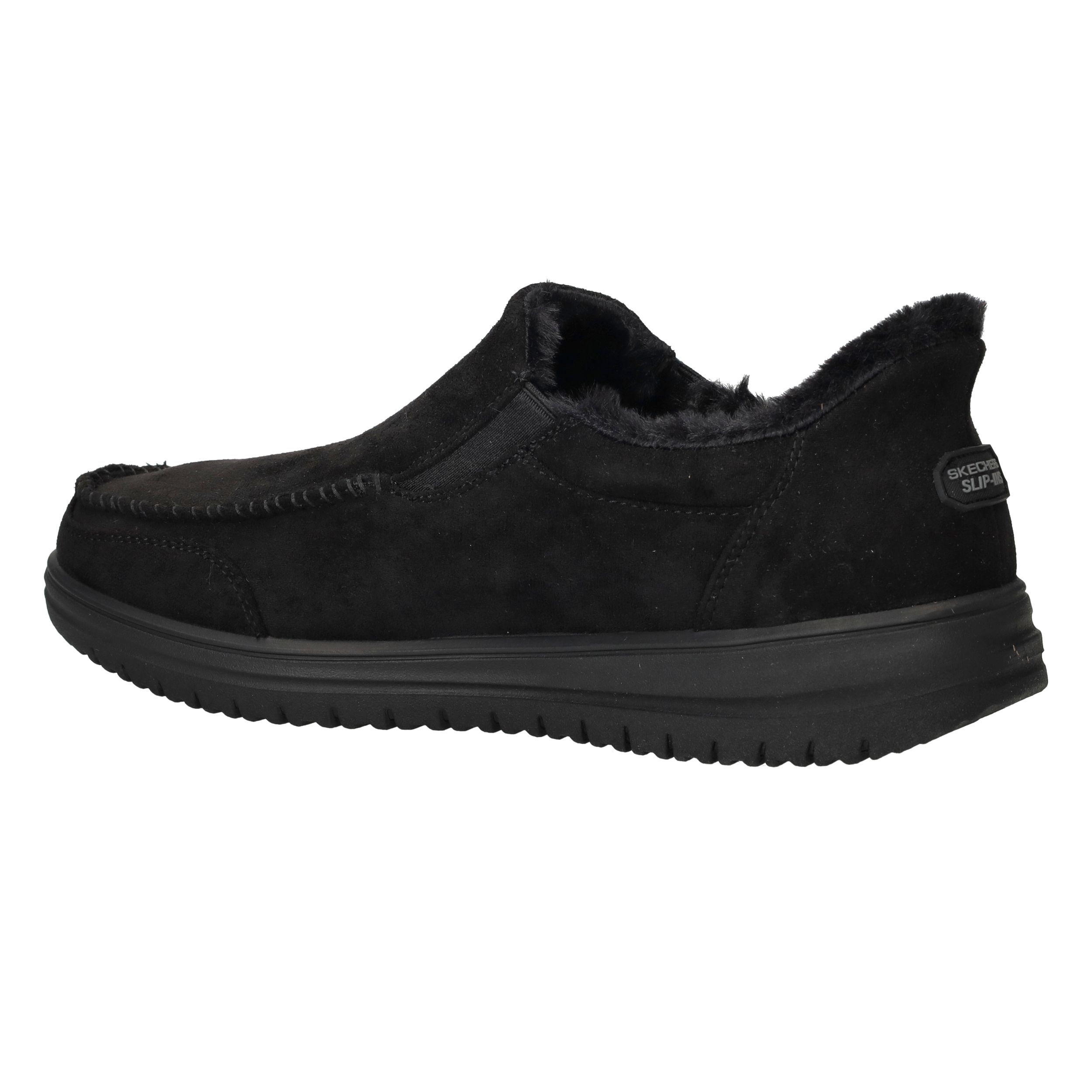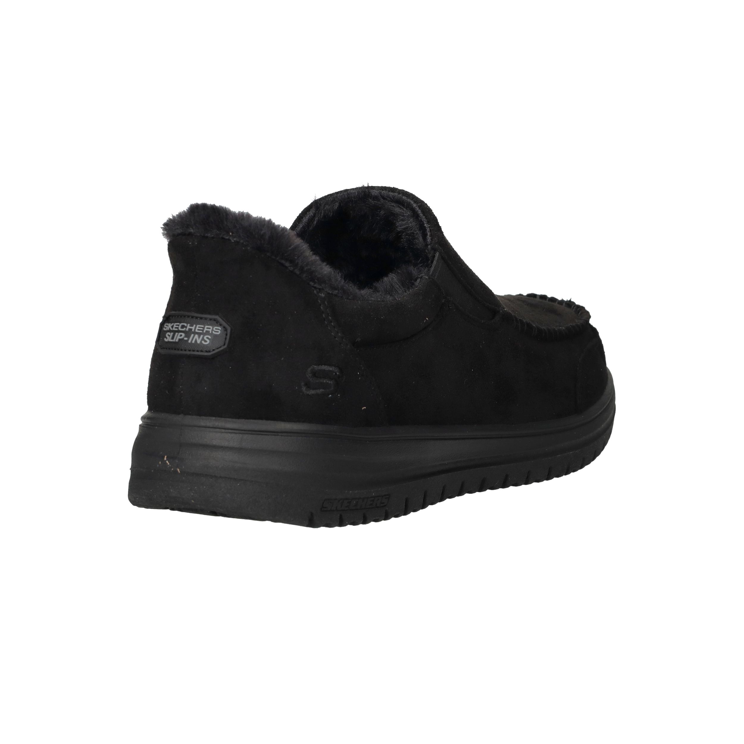 De Skechers Relaxed Fit Slip-Ins Murette Scofield combineert gemak en comfort in een stijlvolle schoen. Deze zwarte heren instappers zijn gemaakt van textiel en voorzien van een warme voering. Dankzij de Slip-Ins technologie stap je moeiteloos in zonder je handen te gebruiken, terwijl de Relaxed Fit pasvorm met G-voetbreedte zorgt voor extra ruimte en comfort. Ideaal voor dagelijks gebruik of als casual schoen binnenshuis en buitenshuis.