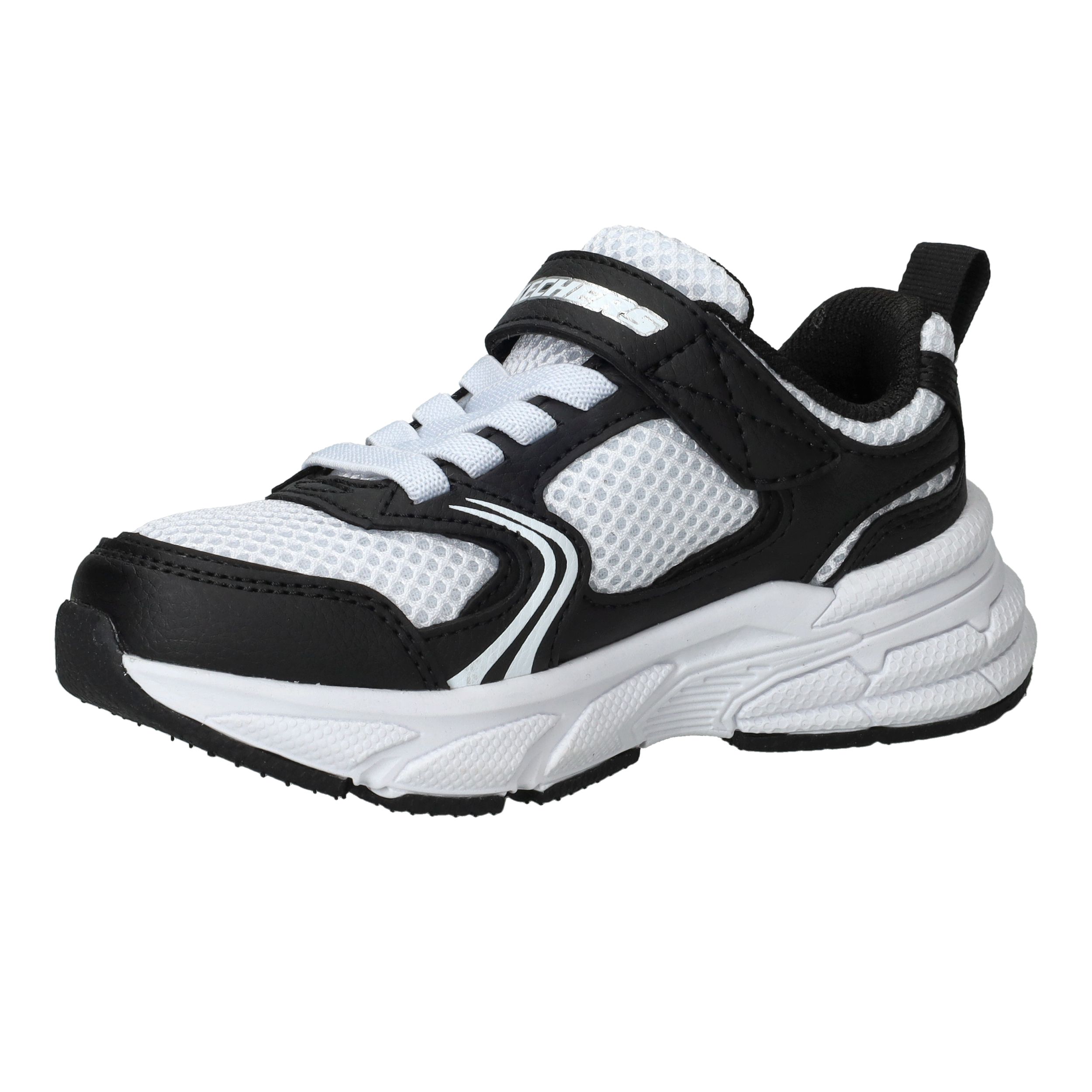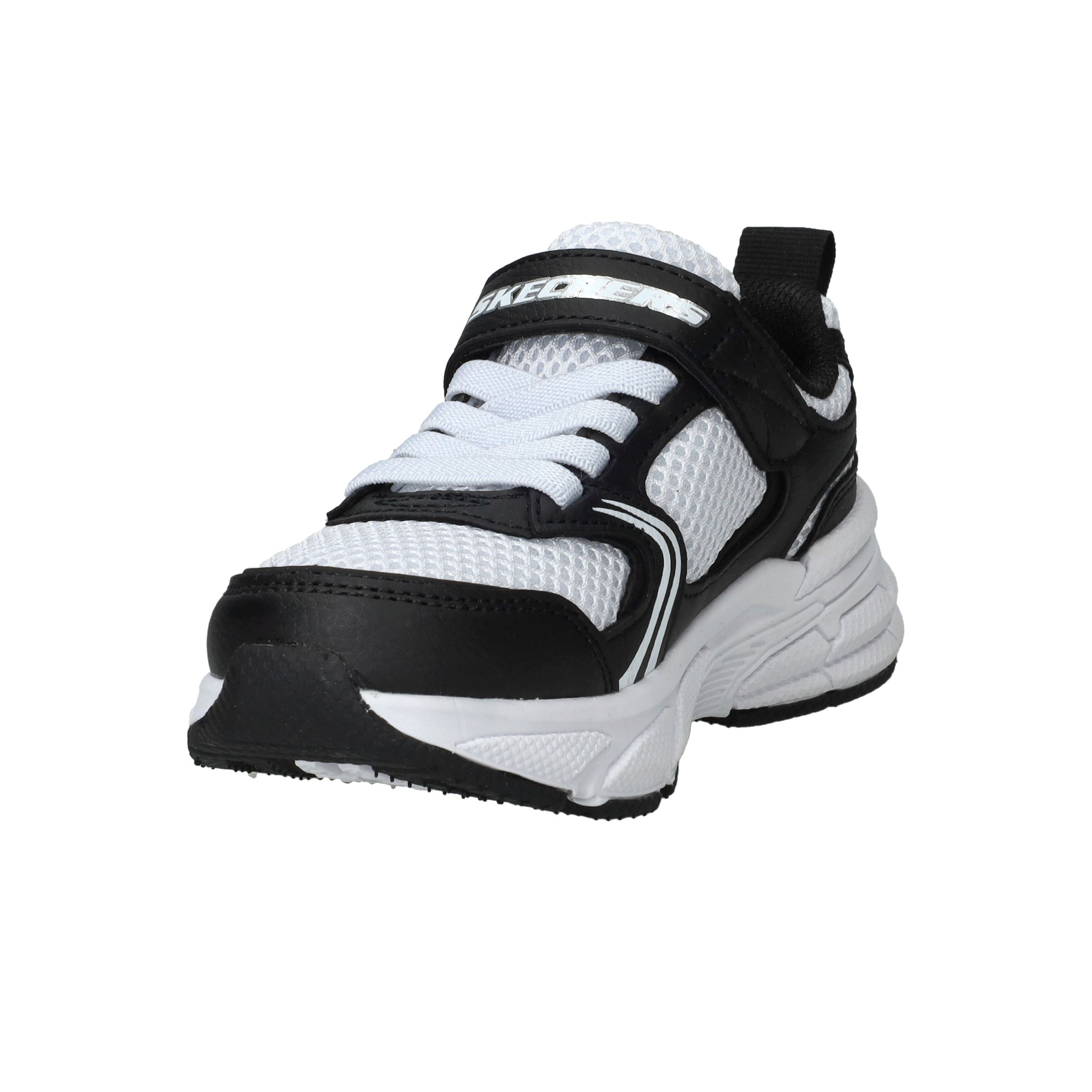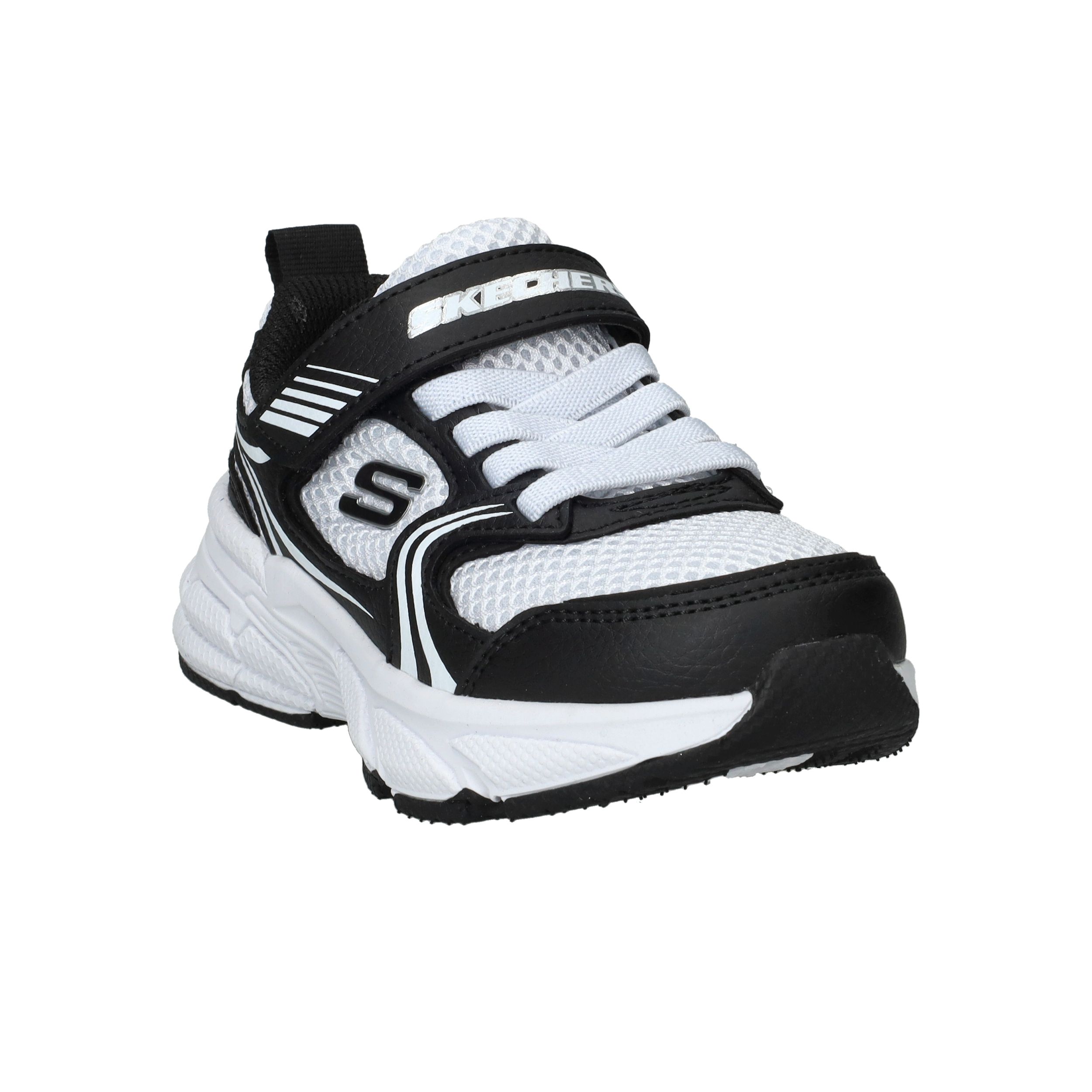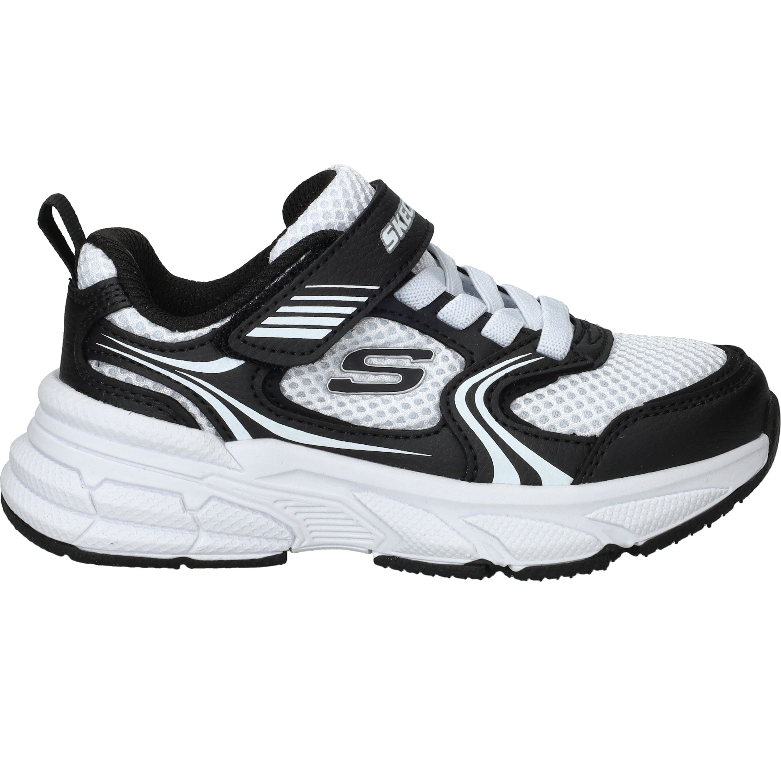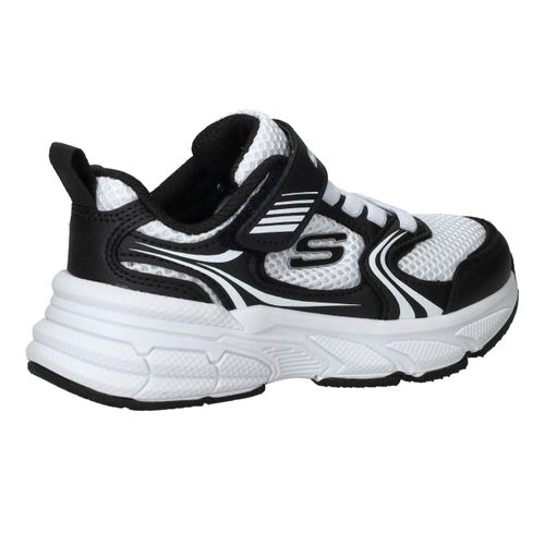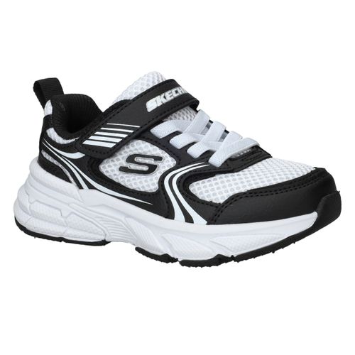 De Skechers Retro-Graph sneaker voor jongens combineert sportieve stijl met optimaal draagcomfort. De sneaker is uitgevoerd in een combinatie van kunstleer en ademend textiel, wat zorgt voor een stoere uitstraling en extra ventilatie. De textielen voering maakt de schoen licht en prettig om dagelijks te dragen, ideaal voor school of vrije tijd.