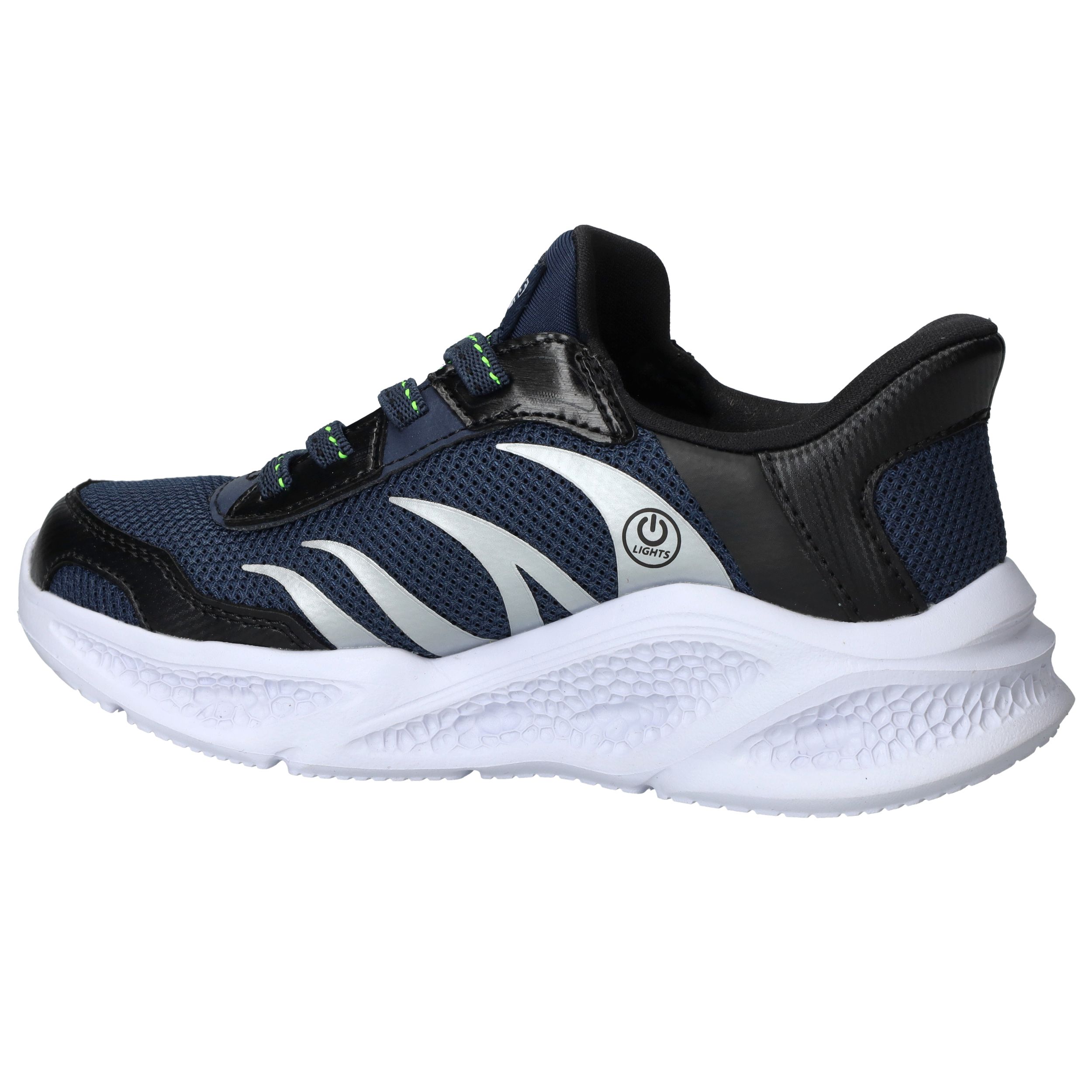 Hoe tof is deze Skechers S-Lights Meteor Lights Slip-Ins sneaker met lichtjes! Door de knop kun je de lampjes makkelijk aan en uit zetten. Door de elastische veter stap je zo in de schoen.