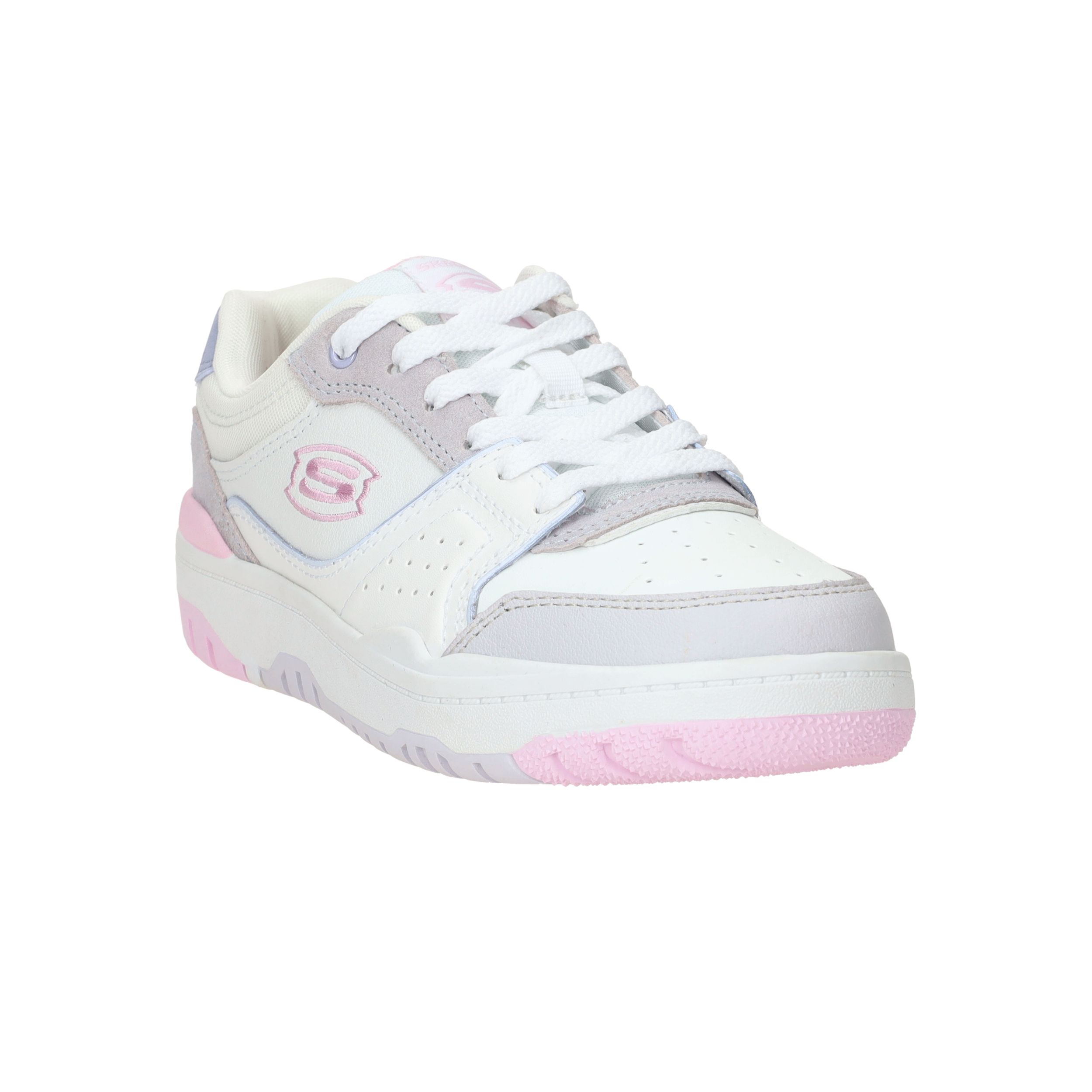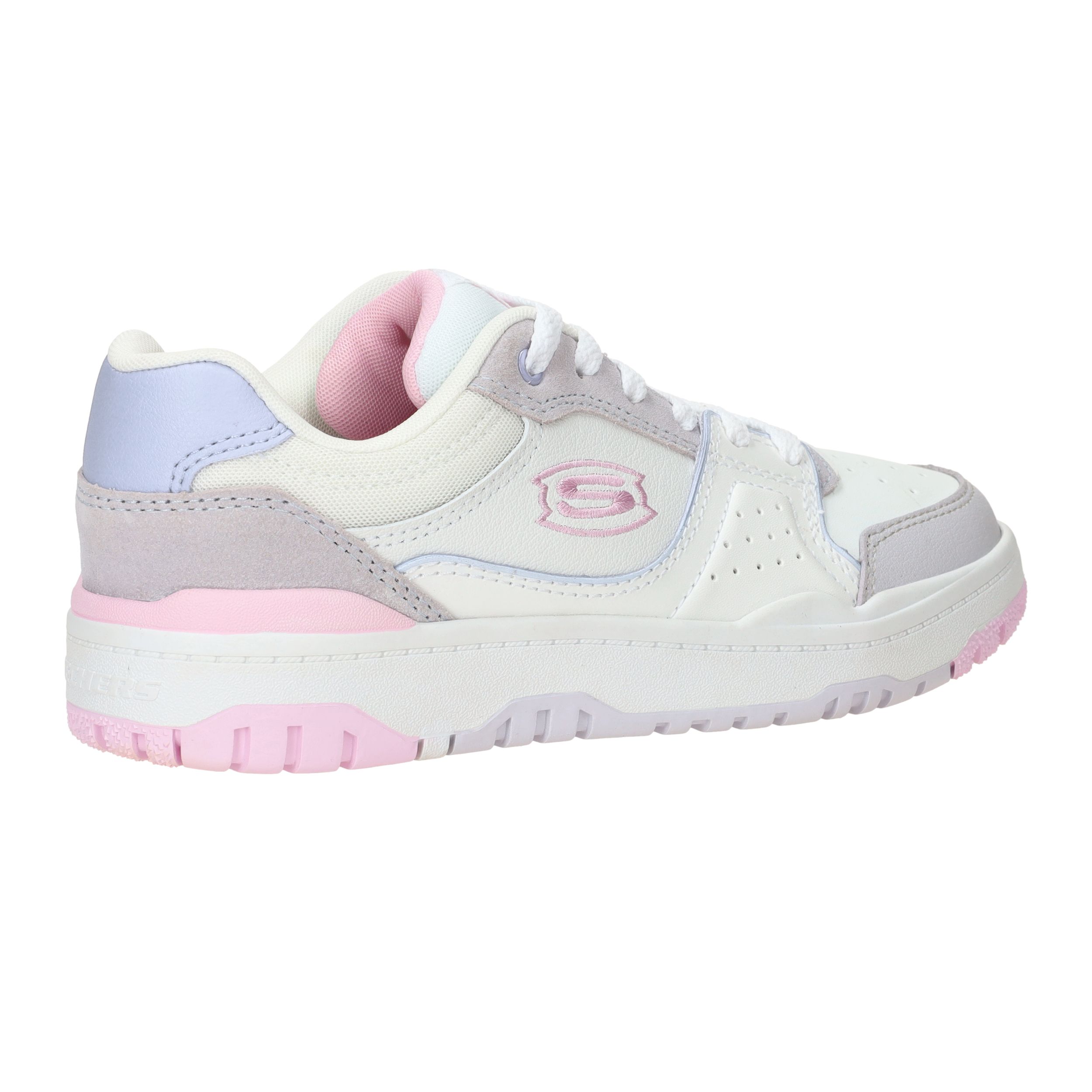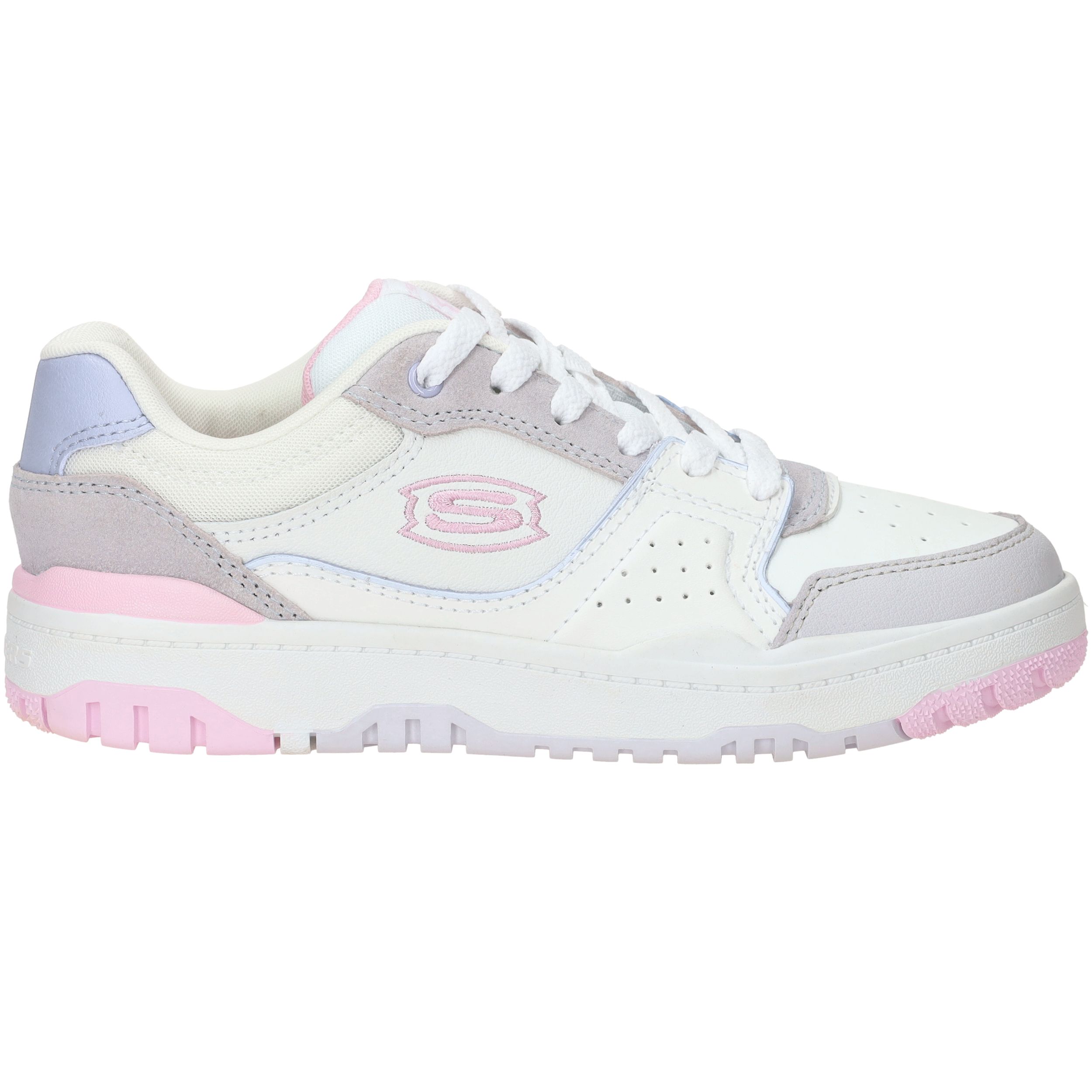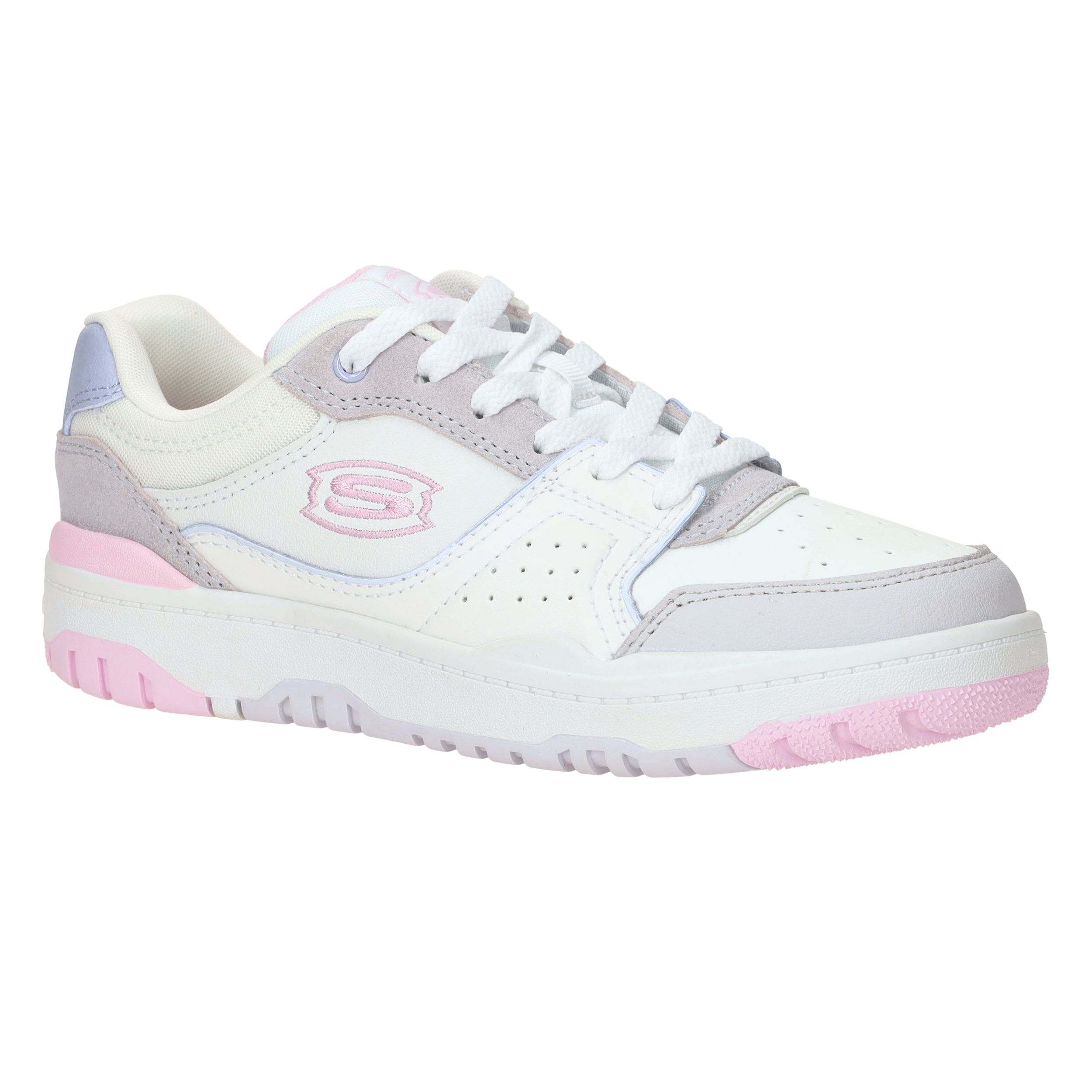 Ga voor deze sportieve Skechers SKX 228 sneaker voor meiden! De witte sneaker heeft paarse en roze accenten, dit maakt de sneaker vrolijk!