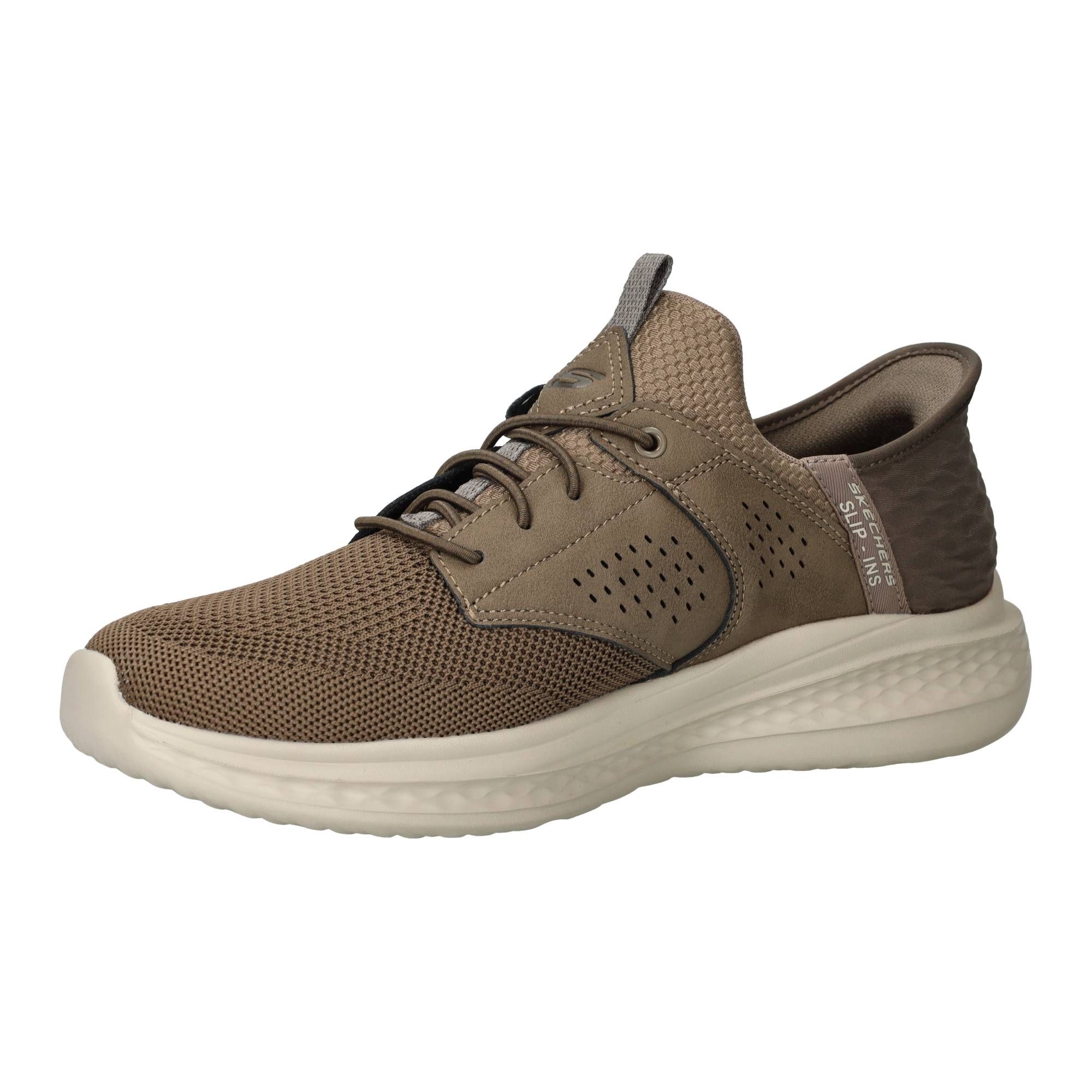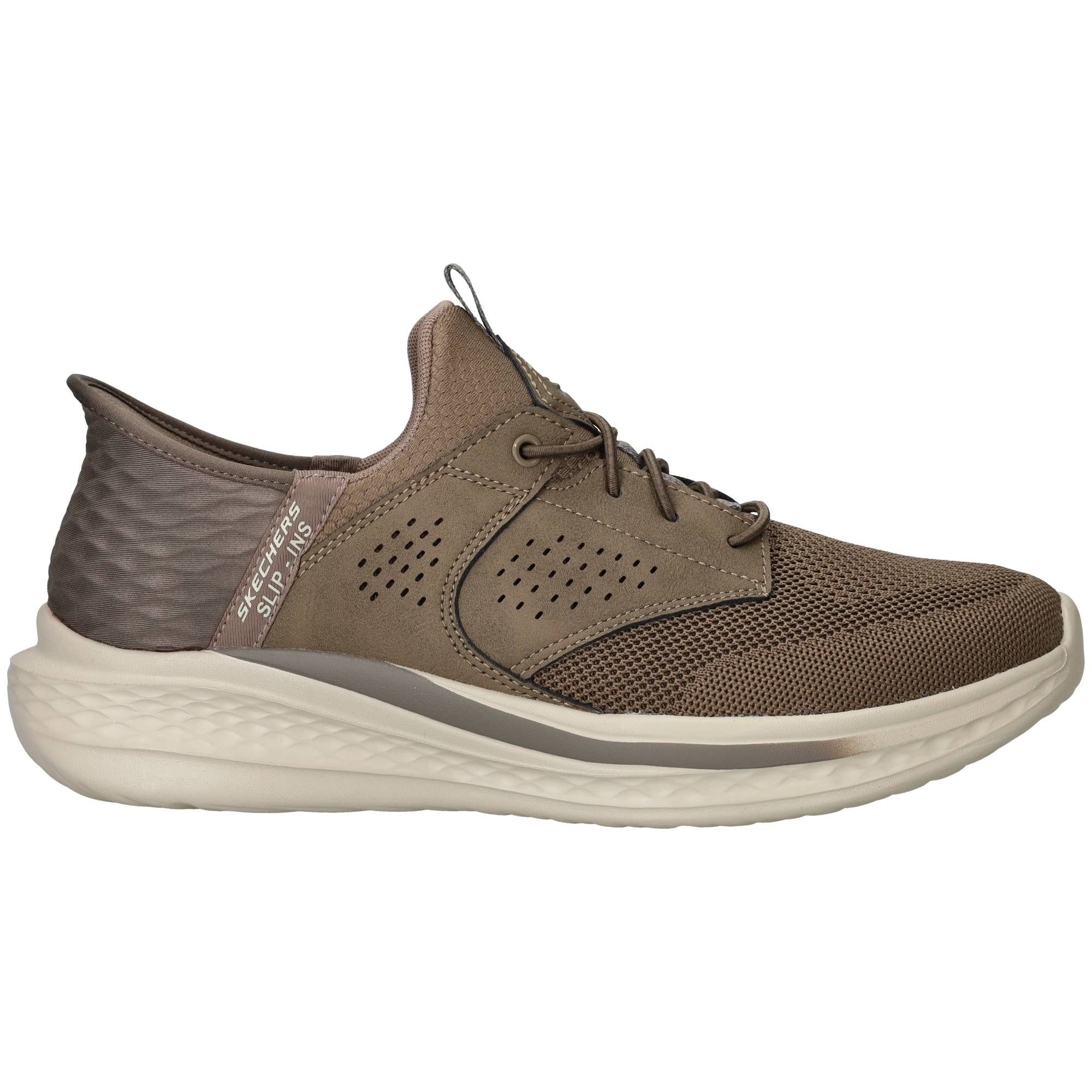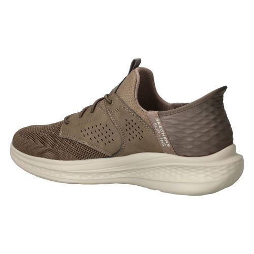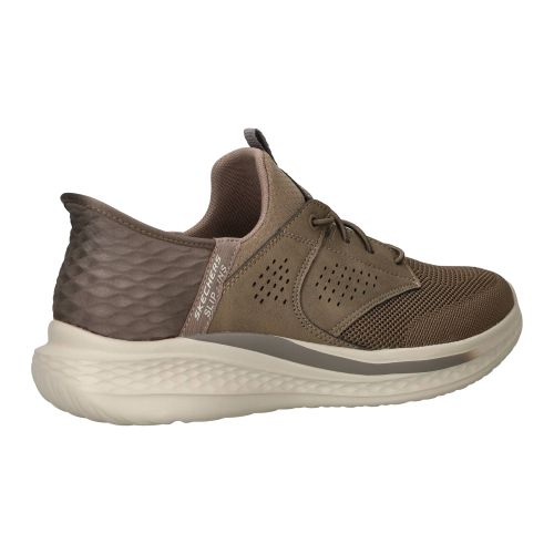 De 5heren sneakers6 Skechers Slade Caster Slip-Ins Relaxed Fit in het groen geven een casual, maar toch verzorgde uitstraling. Deze 5Skechers6 instapschoenen zijn niet alleen makkelijk aan te trekken, maar bieden ook een heerlijk gevoel aan de voeten, alsof je op wolken loopt. Het zachte bovenwerk van textiel vormt zich comfortabel om de voet en door de fijne demping voelt elke stap zacht aan, wat bijdraagt aan een prettige drukverdeling. Je voelt de hele dag door een fijne ondersteuning, ideaal voor momenten waarop je veel staat of loopt.- De elastische sluiting zorgt voor een naadloze pasvorm die de voet prettig omsluit zonder te knellen.