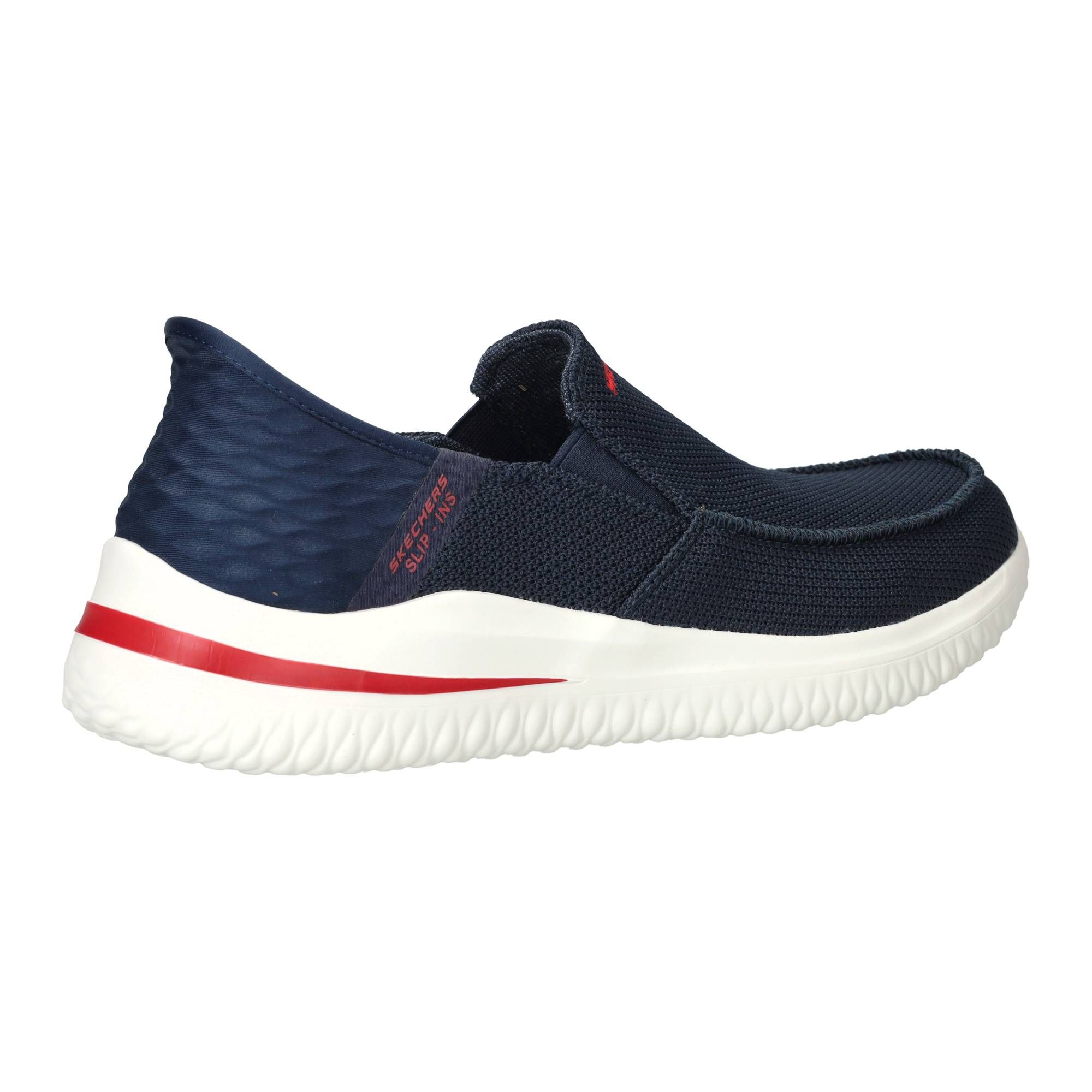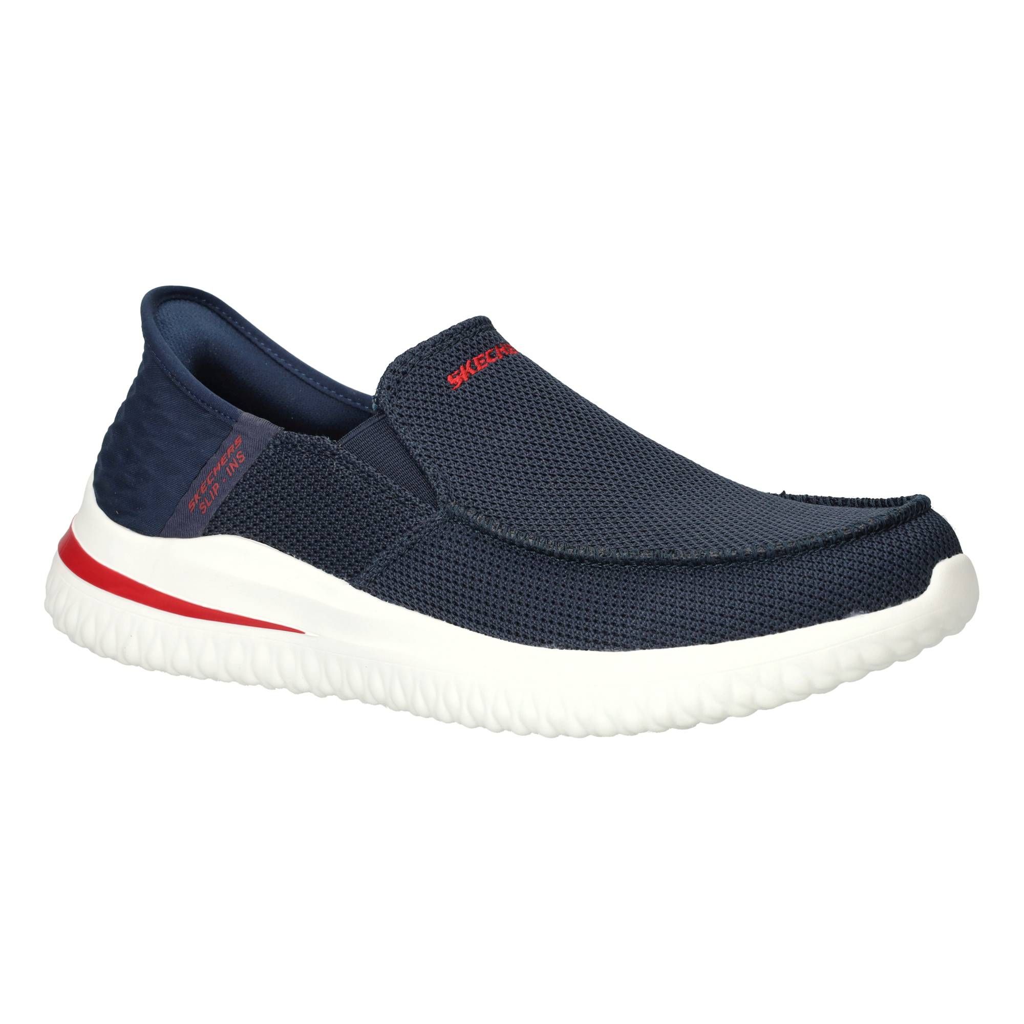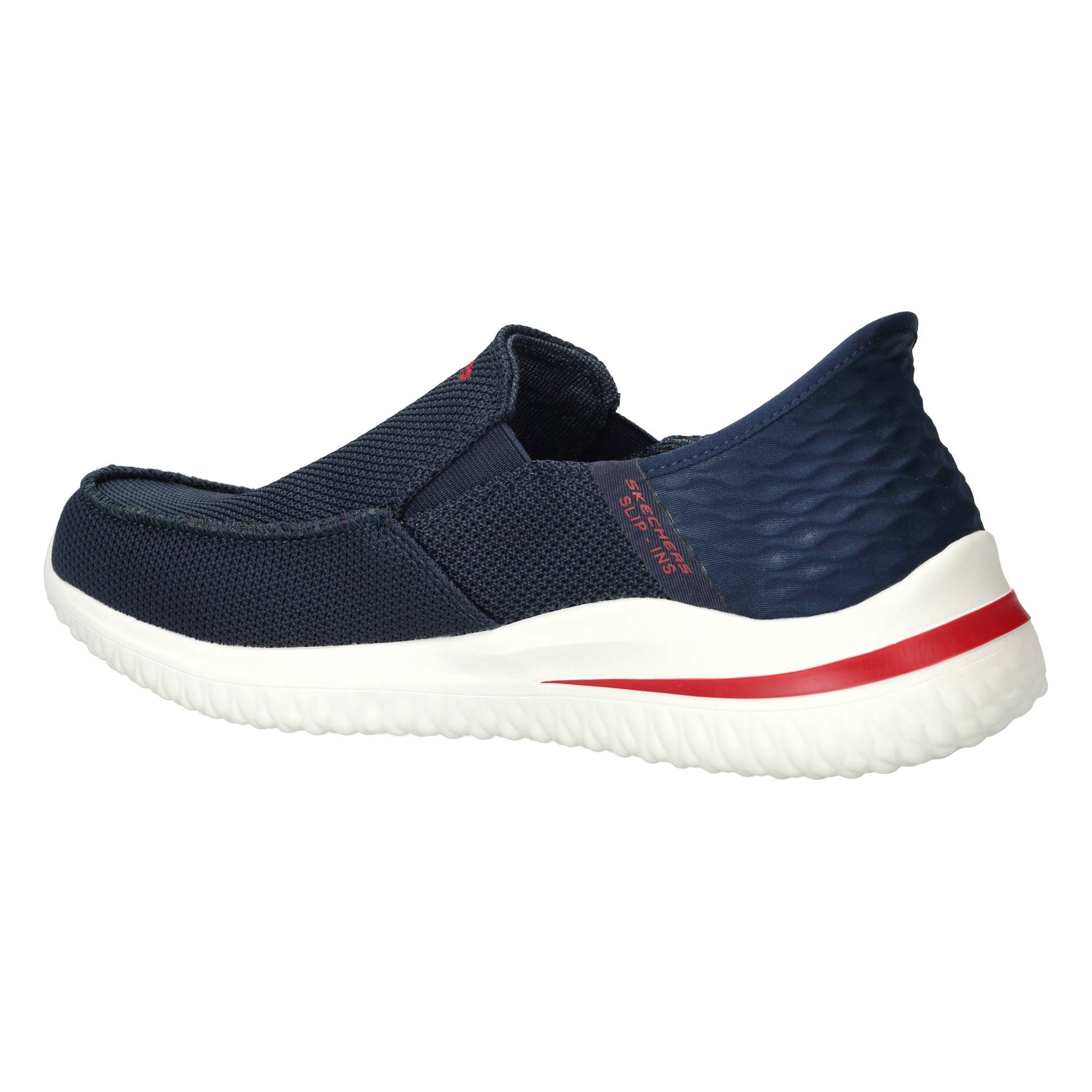 De blauwe heren instappers van Skechers zijn ontworpen met het oog op gemak en comfort. De Delson 3.0 Cabrino, uitgevoerd in een diepe blauwe kleur, zijn de ideale schoenen voor elke dag. Je stapt er gemakkelijk in en uit, zonder gedoe met veters, en ze voelen direct prettig aan je voeten. De zachte textiel voering en het flexibele bovenwerk zorgen voor een fijne pasvorm die zich aanpast aan de voet, wat bijdraagt aan een rustige drukverdeling tijdens het lopen en staan.- Deze instappers sluiten goed aan en bieden een lichtgewicht gevoel, ideaal voor dagelijks gebruik.