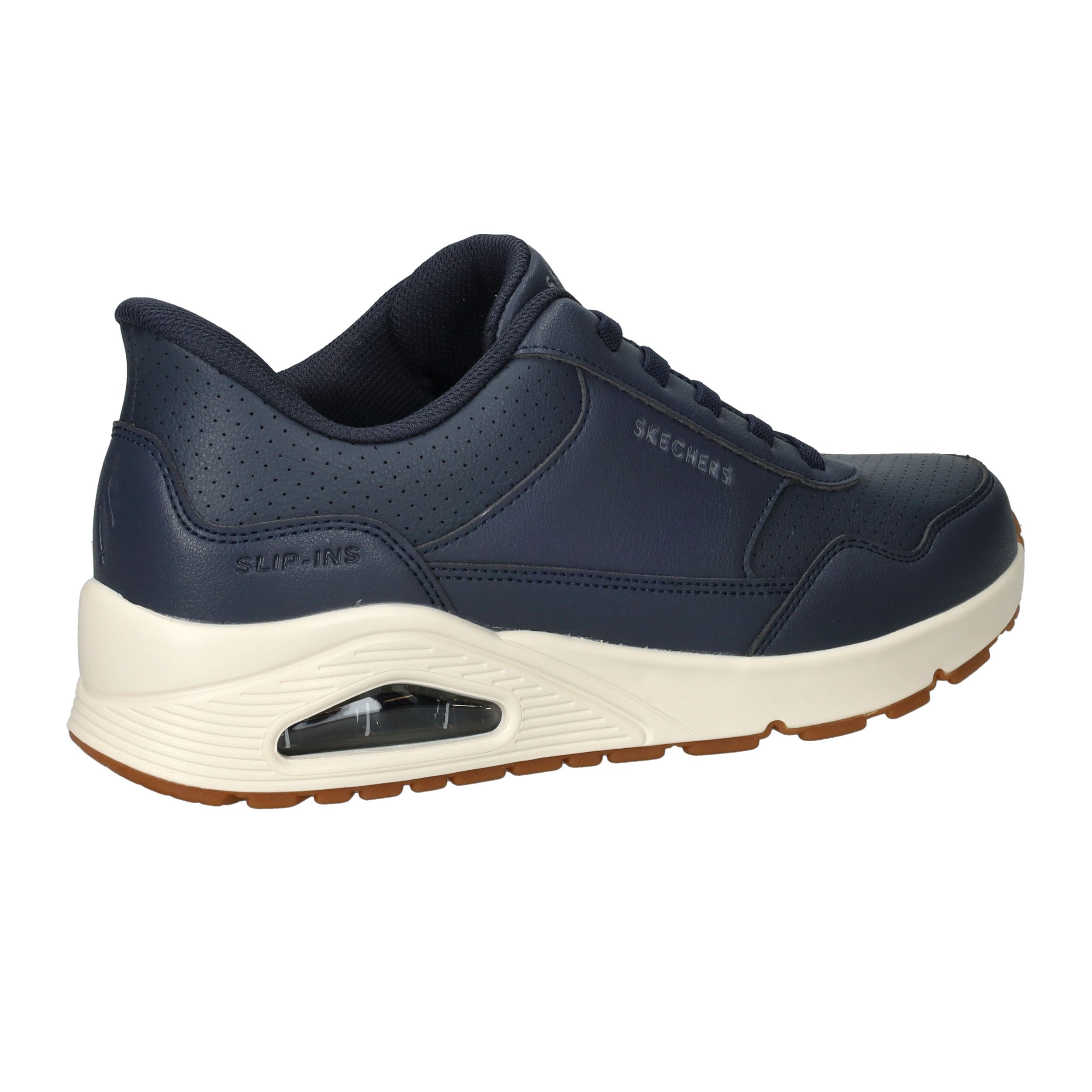 De blauwe Skechers Slip-Ins Uno Banksia heren sneakers combineren moeiteloos stijl met functionaliteit. Deze sneakers zijn ontworpen voor optimaal comfort en gebruiksgemak, perfect voor de moderne man die waarde hecht aan zowel uitstraling als praktisch nut. Met hun sportieve doch veelzijdige design passen ze bij diverse outfits en gelegenheden.