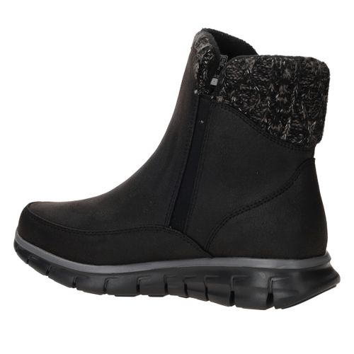 De Skechers Synergy Lovely Collab is de ideale keuze voor dames boots die warmte, comfort en stijl willen combineren. Deze zwarte uitvoering is tijdloos en dankzij het zachte textiel voelt de schoen heerlijk warm aan tijdens koude dagen. De G-voetbreedte zorgt voor een comfortabele pasvorm die ook bij langer dragen fijn blijft aanvoelen. Met deze boots geniet je van een sportieve look en een winterse warmte in één.