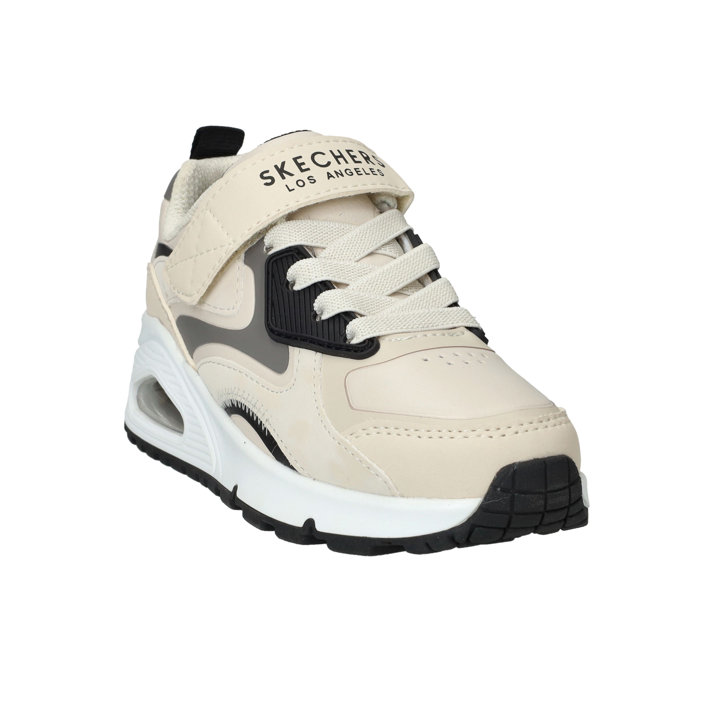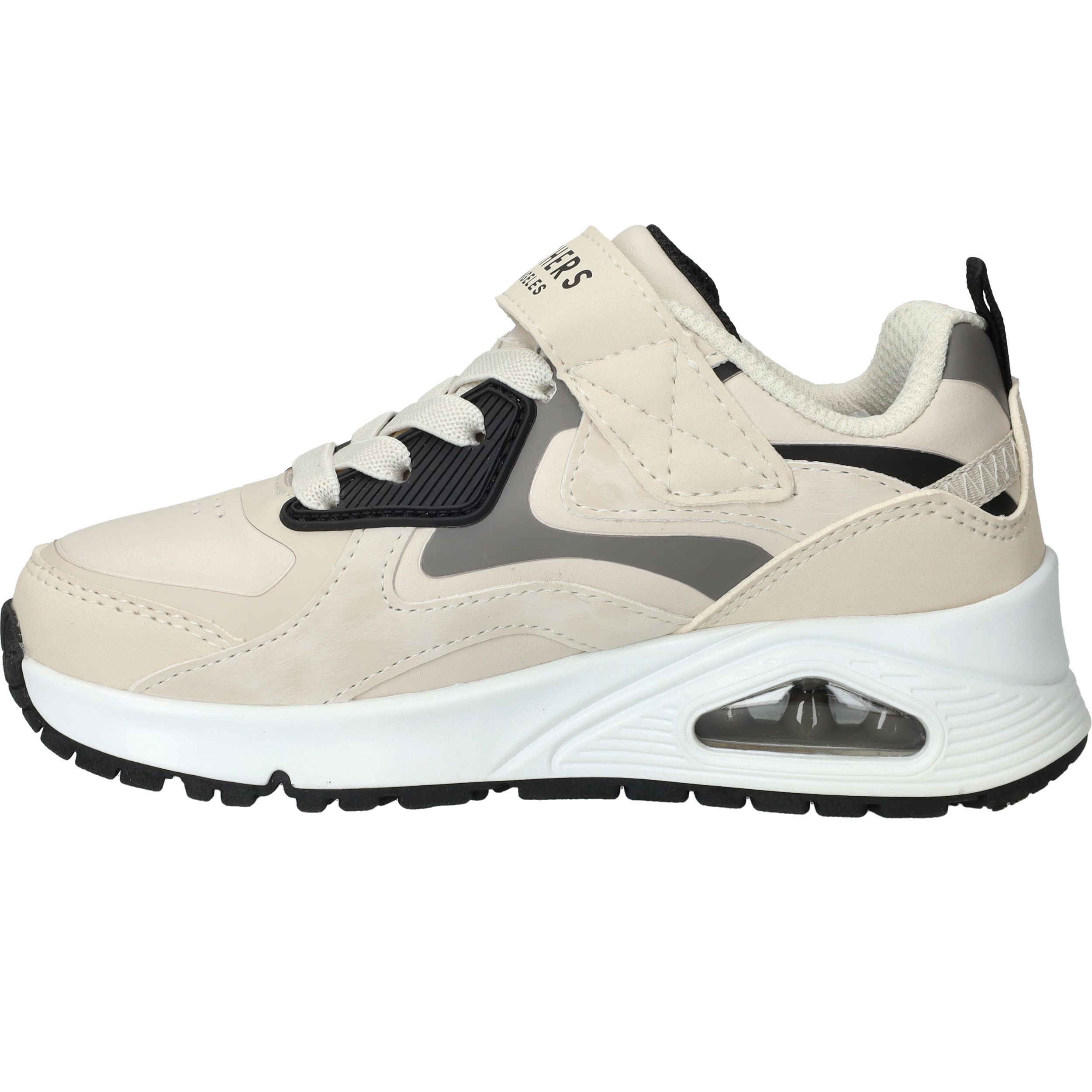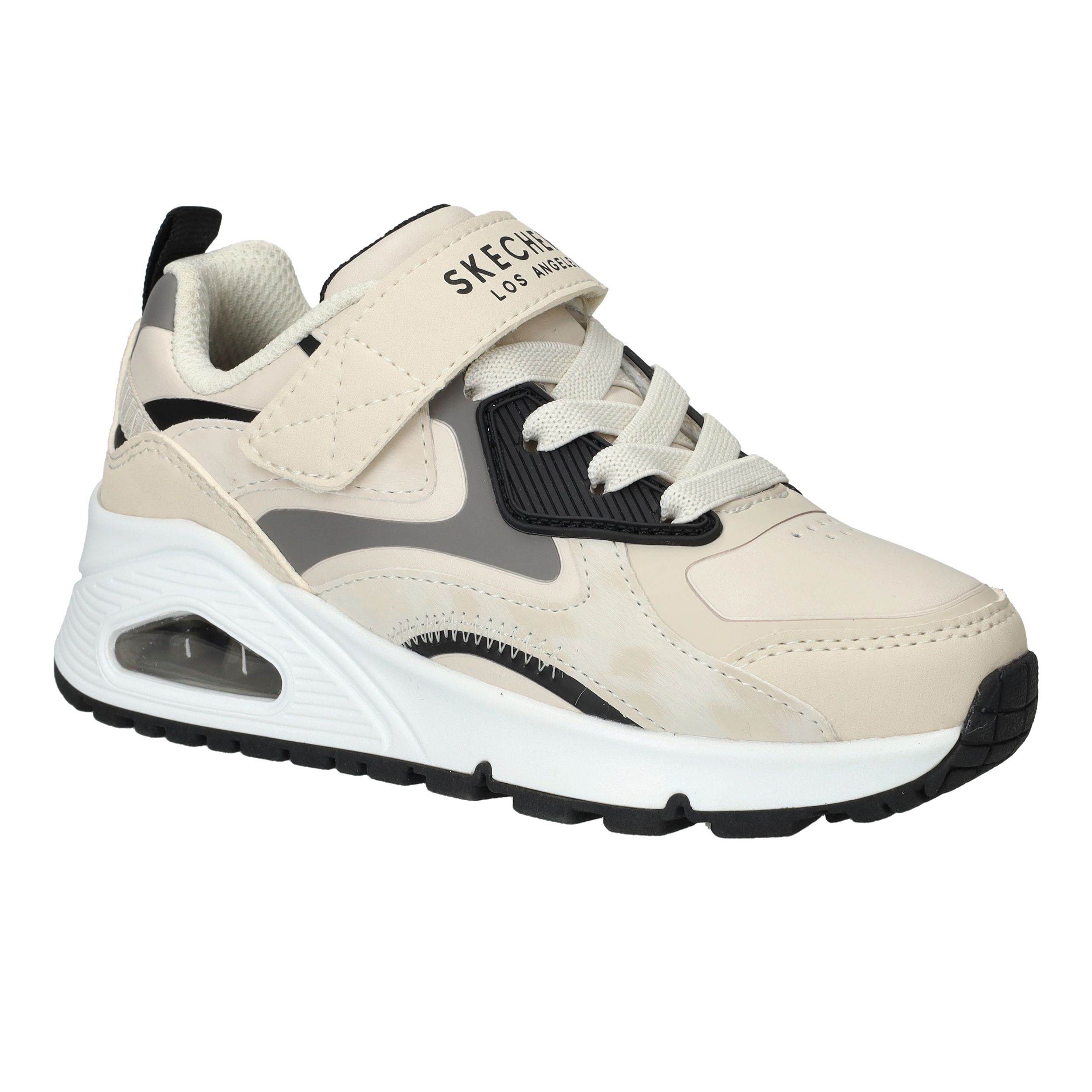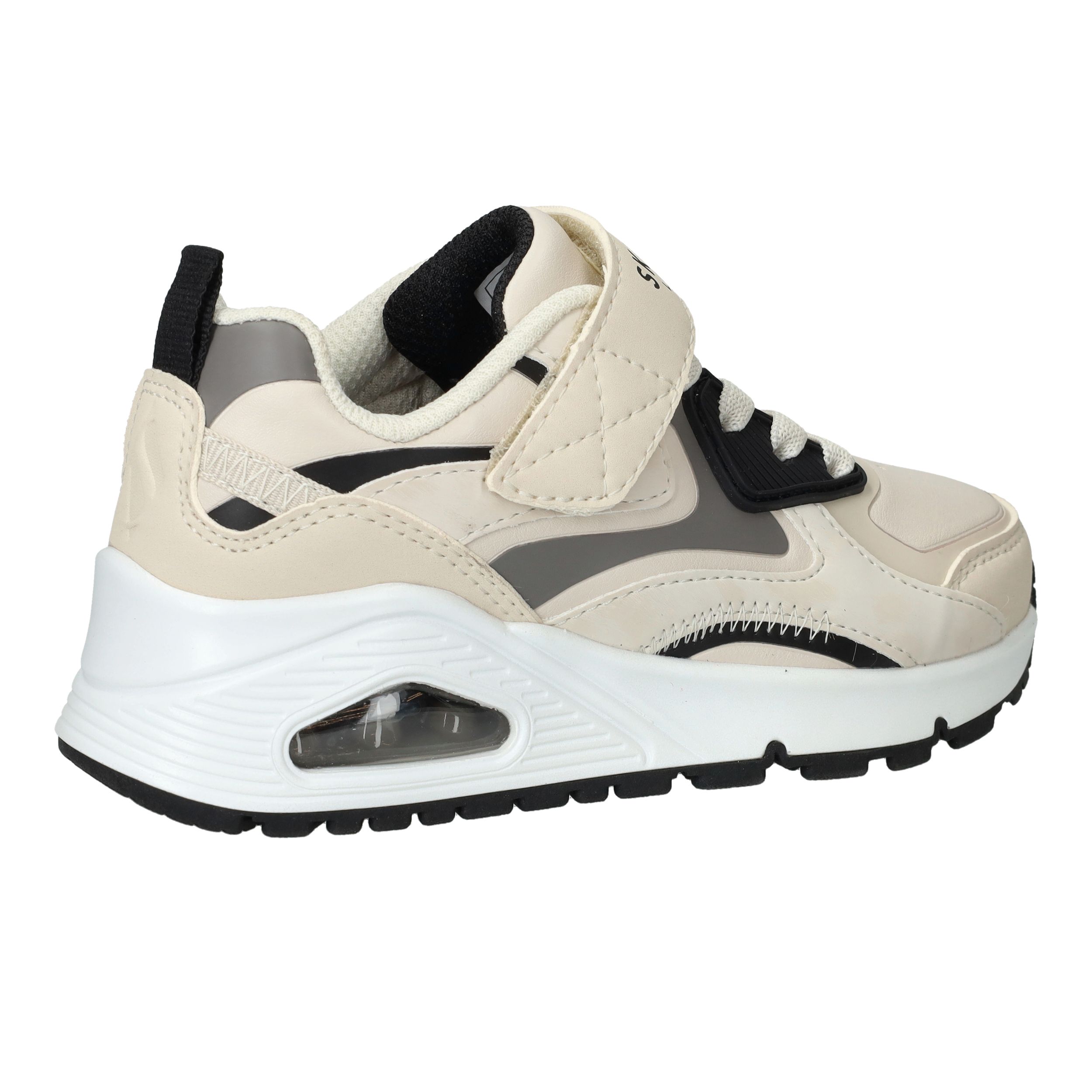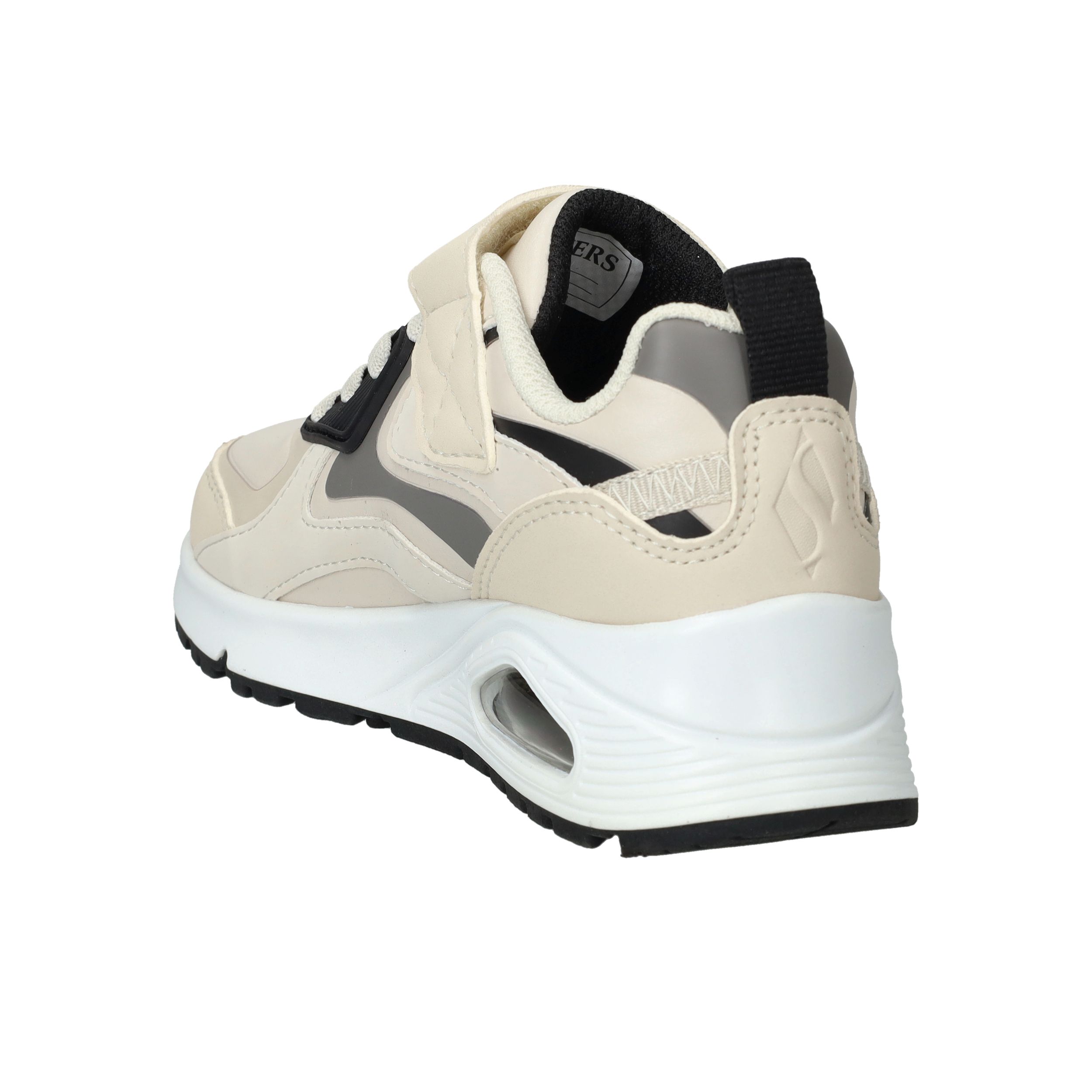 Stoer, sportief en supercomfortabel: deze sneakers van Skechers zijn perfect voor actieve jongens. De Uno Gen1 Color Rays sneakers zijn uitgevoerd in stevig kunstleer met een frisse lichtbeige kleur en opvallende zwarte accenten. Dankzij de combinatie van veters en klittenband zitten ze altijd stevig en comfortabel. Ideaal voor school, buitenspelen of een dagje weg.