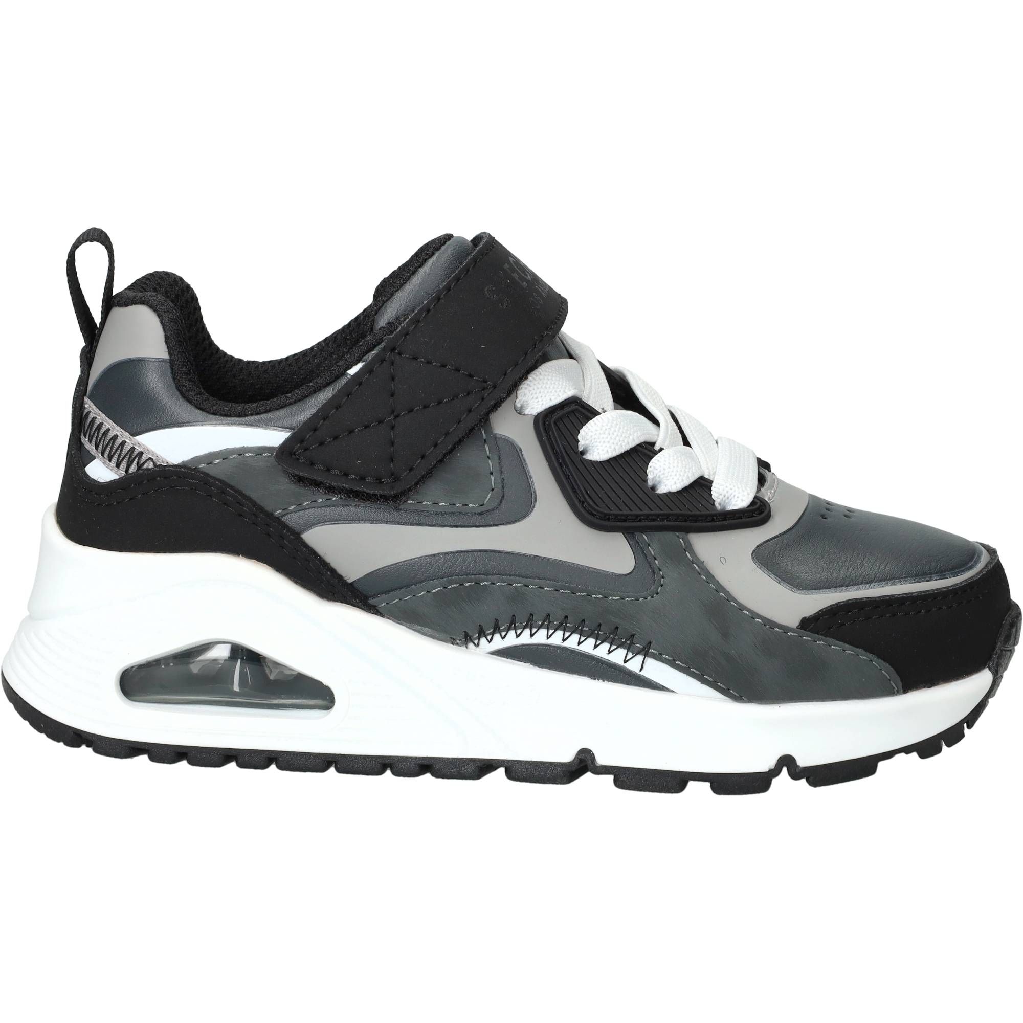 Deze moderne jongens sneakers van Skechers, de Uno Gen1 Color Rays, zijn een stijlvolle toevoeging aan de garderobe. De grijskleurige schoen heeft een sportieve uitstraling met subtiele kleuraccenten die deze sneaker net dat beetje extra geven. Het design is fris en eigentijds, perfect voor jongens die er graag vlot uitzien. De schoen voelt licht aan de voeten en de zool biedt een fijne schokdemping, waardoor elke stap comfortabel en veerkrachtig aanvoelt, ideaal voor een actieve dag.