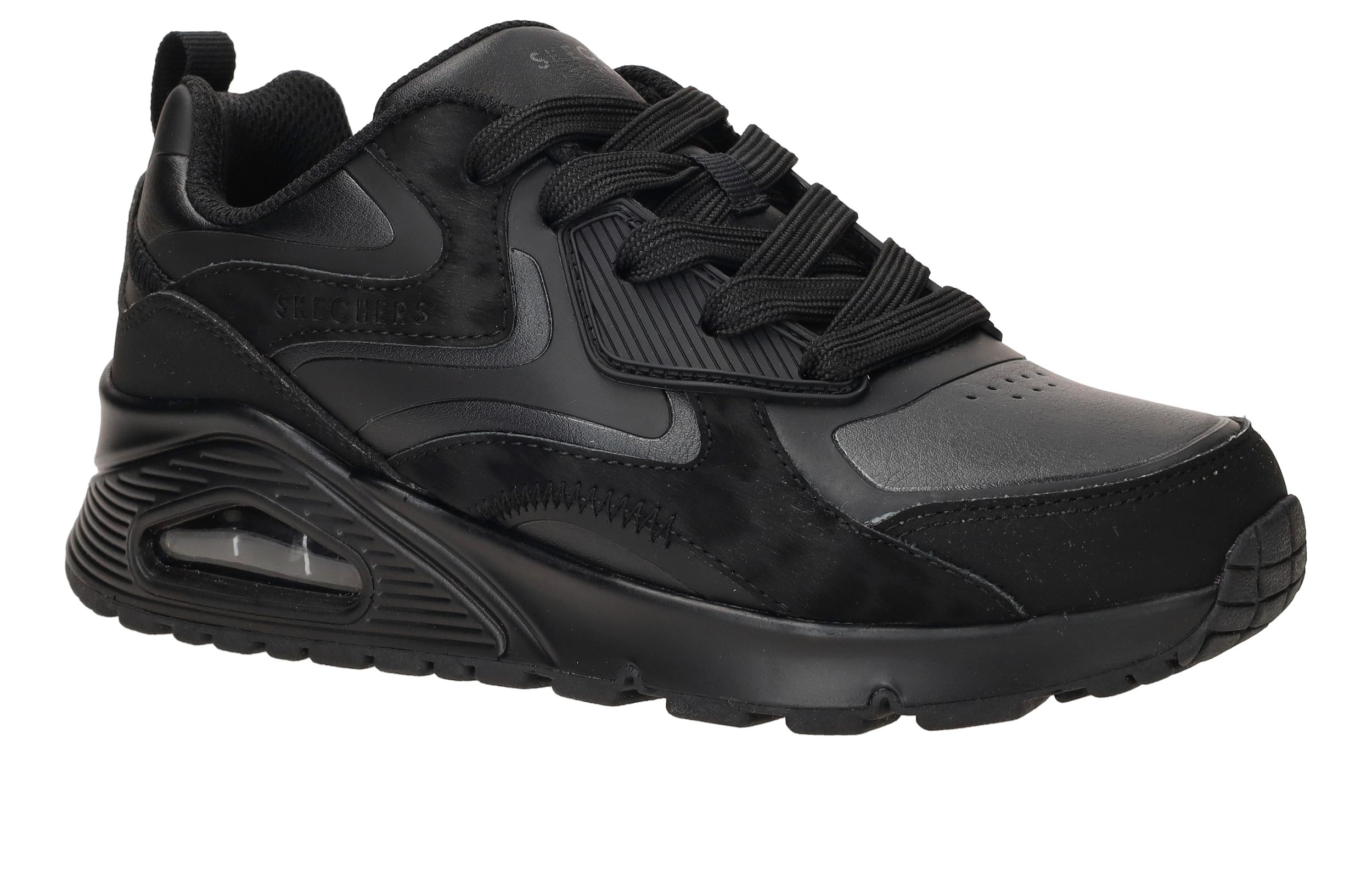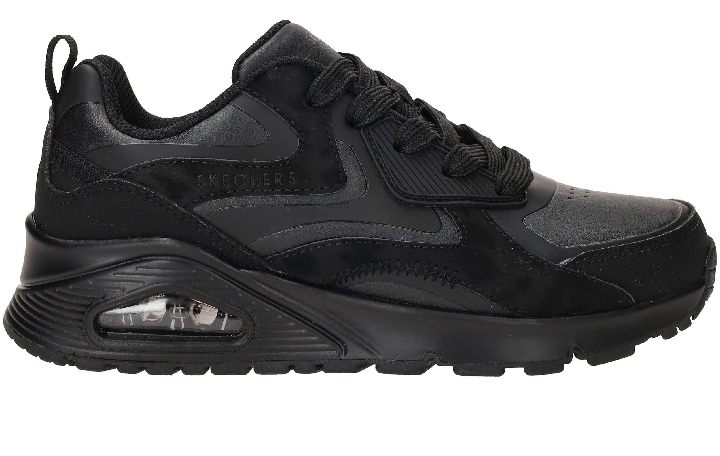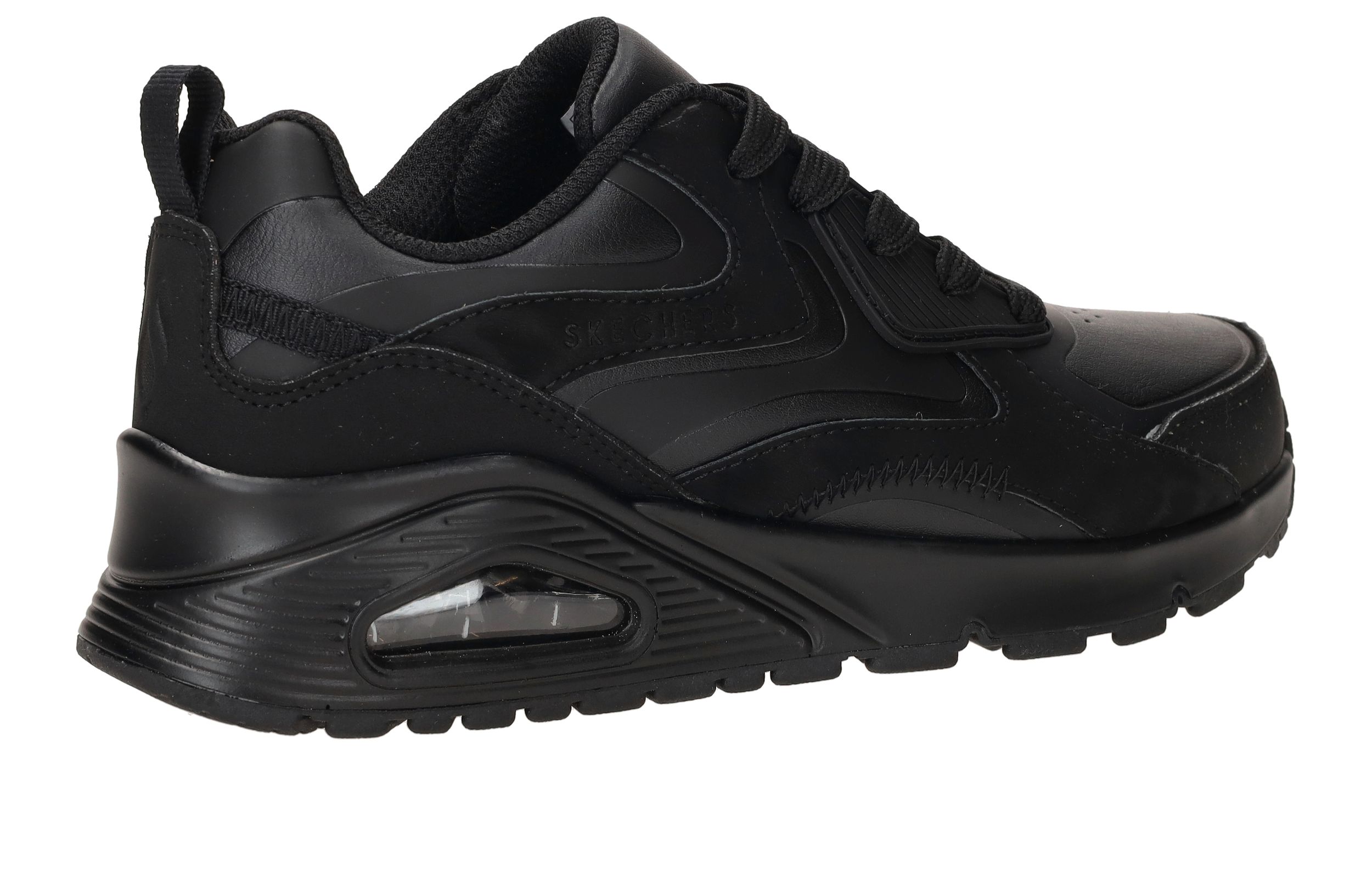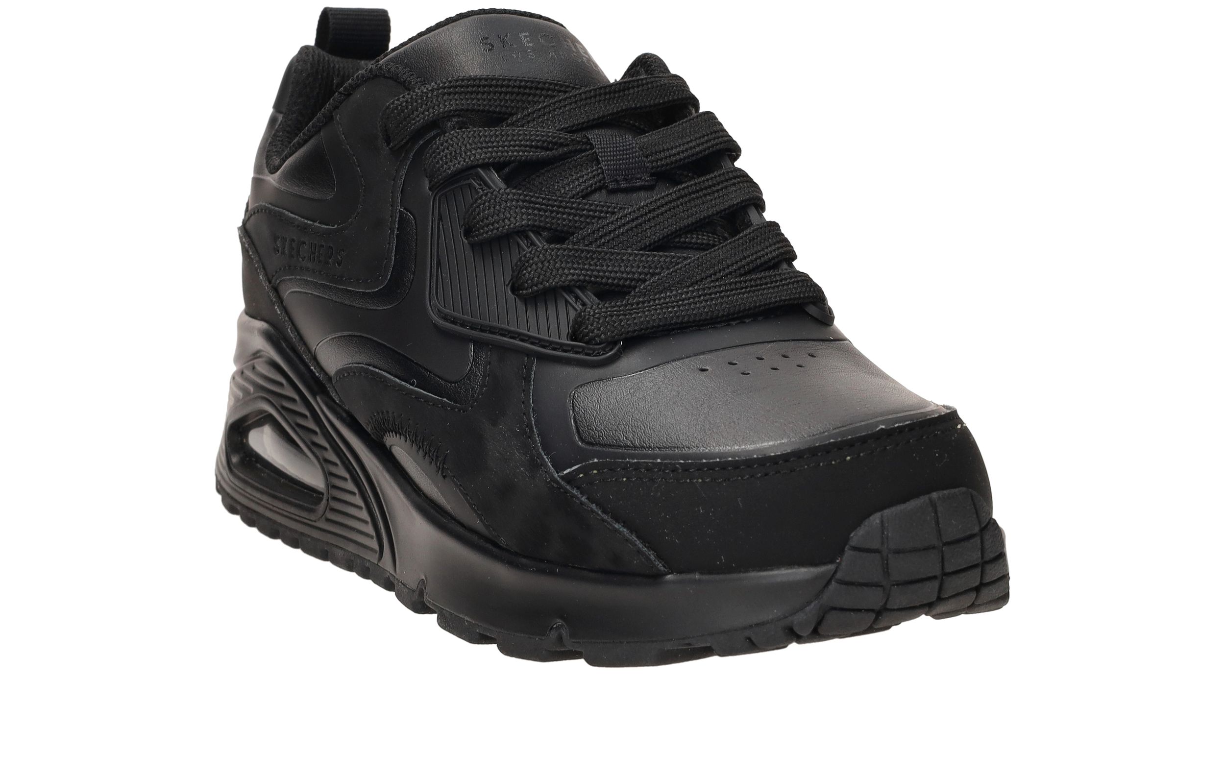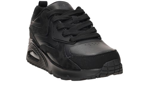 Stoere Skechers Uno Gen1 Color Surge sneaker voor jongens. De sneaker is helemaal zwart en combineer je daarom makkelijk met al je kleding.