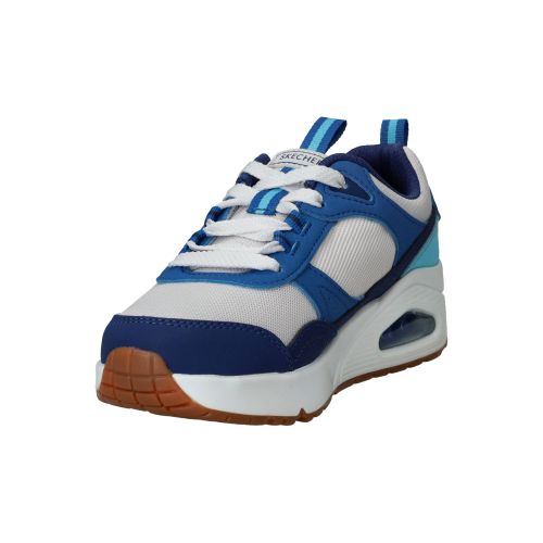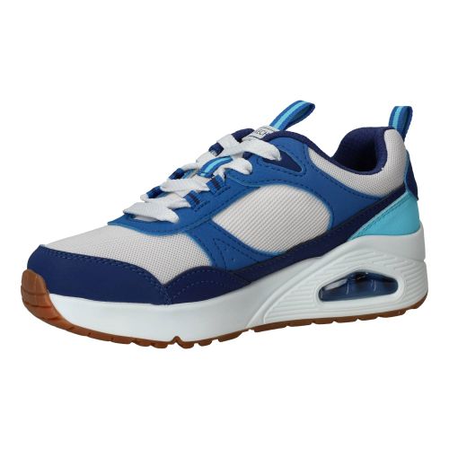 De jongens sneakers Skechers Uno Retro Groove in het blauw zijn een vrolijke en sportieve keuze voor elke dag. Deze schoenen van Skechers hebben een frisse blauwe kleur met leuke details die direct opvallen. Ze zijn niet alleen mooi om te zien, maar bieden ook een fijn loopgevoel. De stevige zool zorgt voor een goede demping bij elke stap, wat prettig is als je veel speelt of onderweg bent. Het design is klassiek met een moderne twist, waardoor ze perfect passen bij diverse outfits, van een stoere spijkerbroek tot een sportieve korte broek.- De veters zorgen voor een persoonlijke pasvorm die goed aansluit rond de voet en geven veel steun.