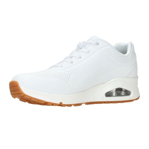 Comfort en stijl komen samen in deze sneakers van Skechers. De Skechers Uno Stand on Air is uitgevoerd in fris wit kunstleer met een zachte textielvoering, perfect voor dames die mode én gemak willen combineren. Dankzij de luchtkussenzool en de ademende perforaties blijf je de hele dag fris én comfortabel lopen.
