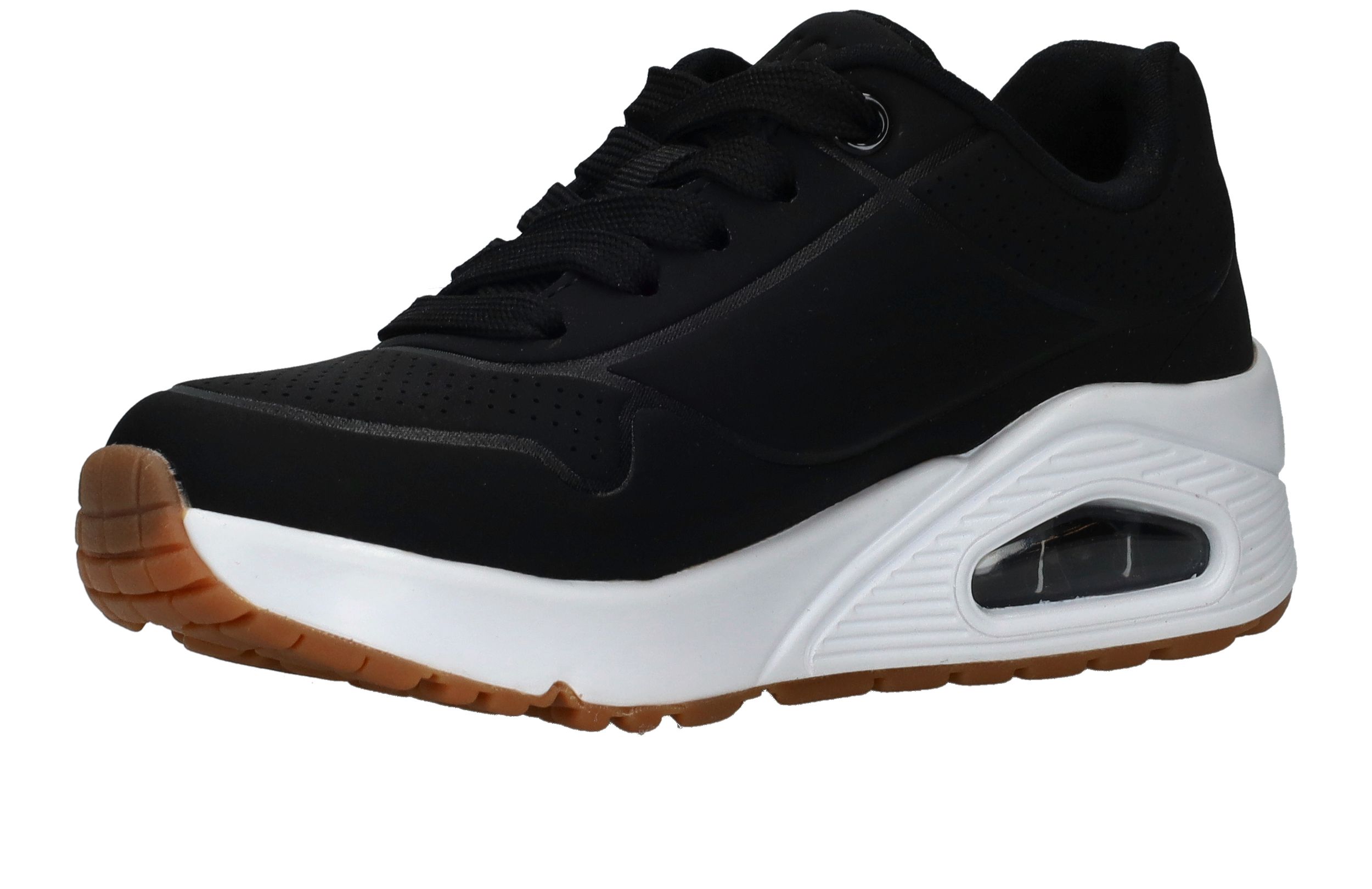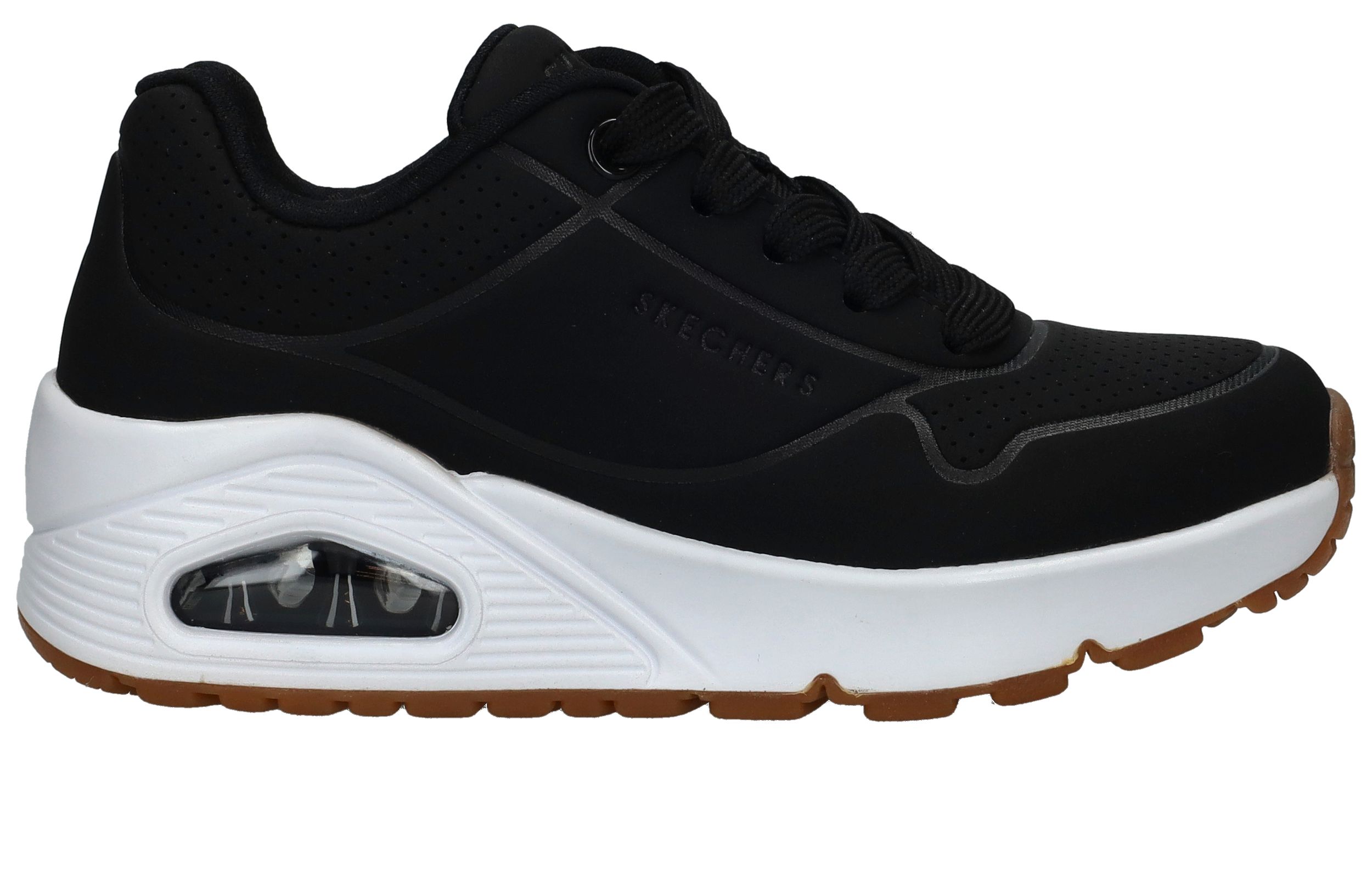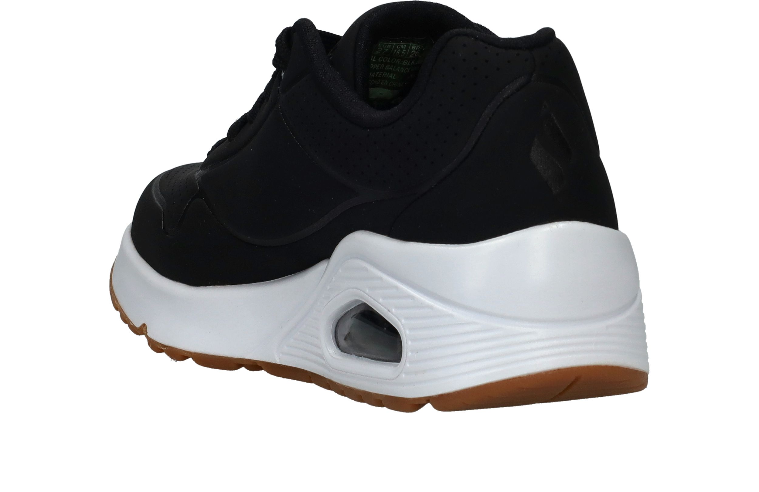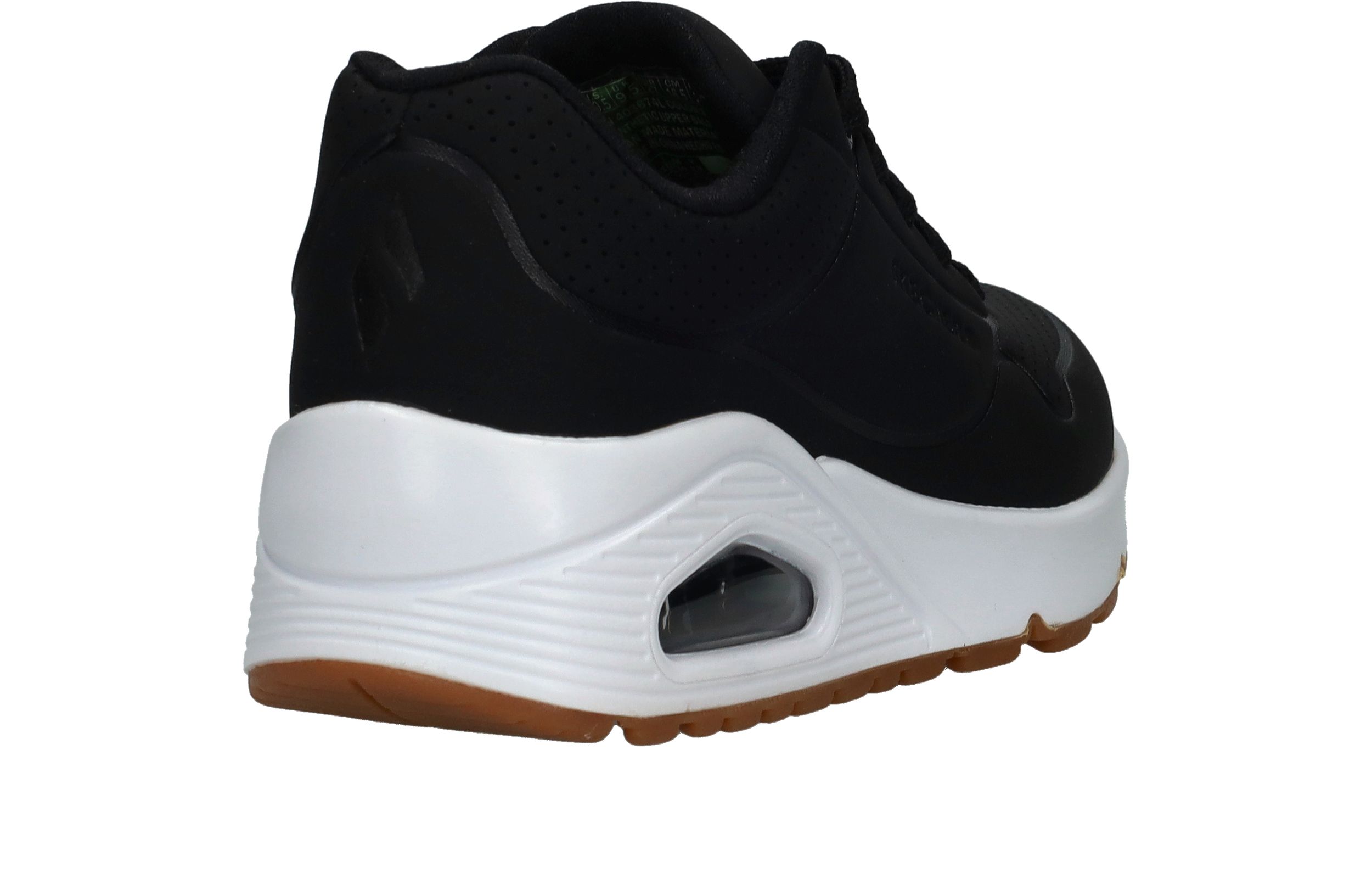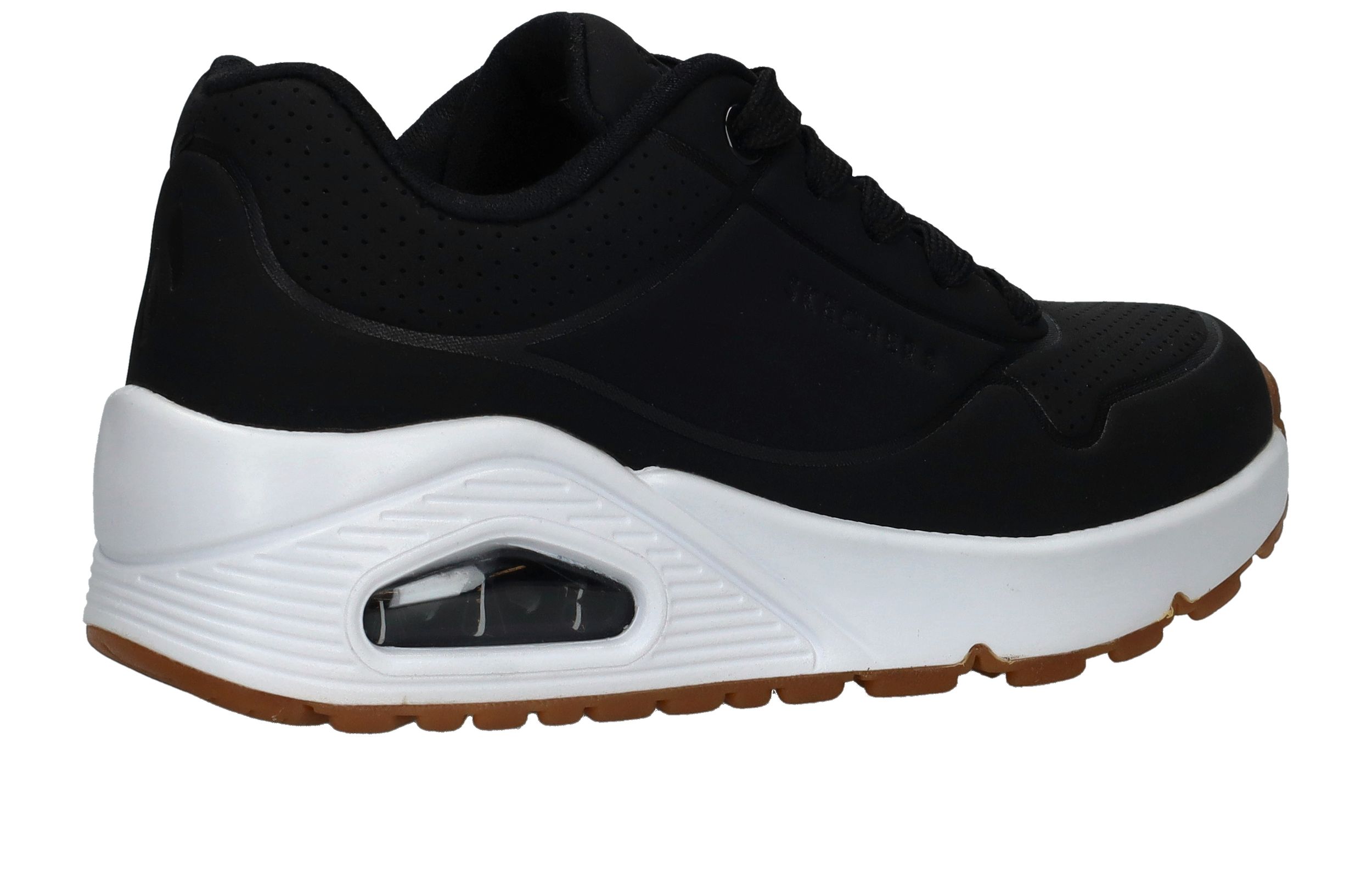 De Skechers Uno Stand On Air sneaker in het zwart is super comfortabel door de binnenzool gemaakt van Air-cooled Memory Foam.